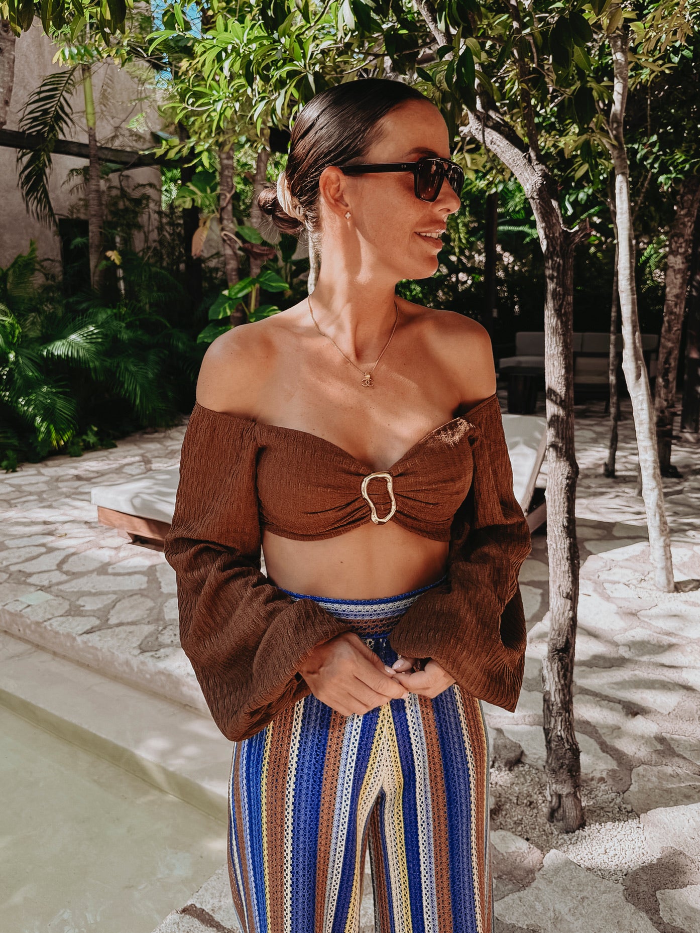 GISELE BROWN CROPPED BLOUSE