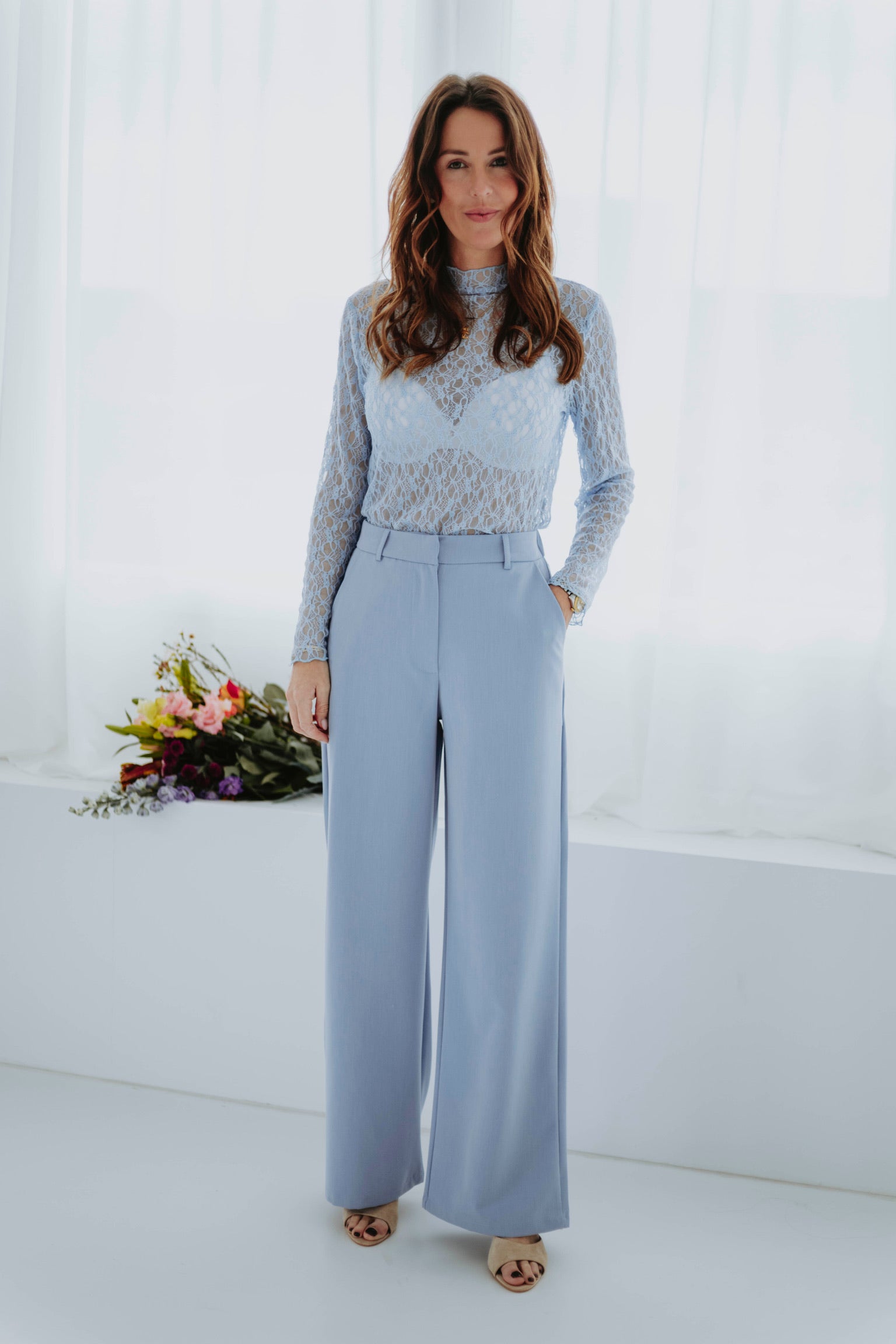 KYENNA LIGHT BLUE LACE LONGSLEEVE TOP