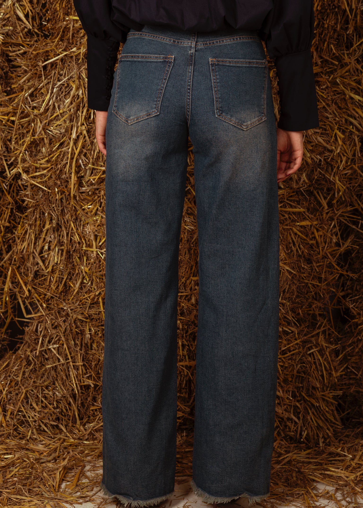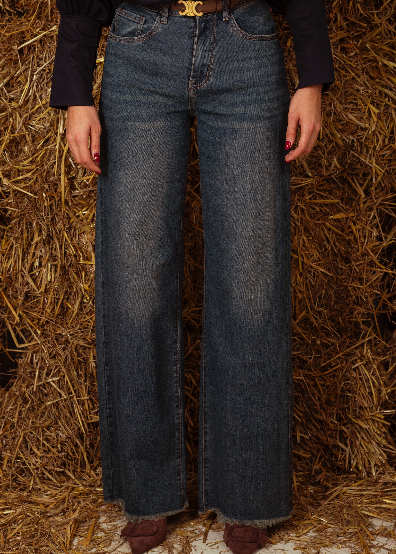 BALLOON DARK BLUE WIDE LEG JEANS 9111-6