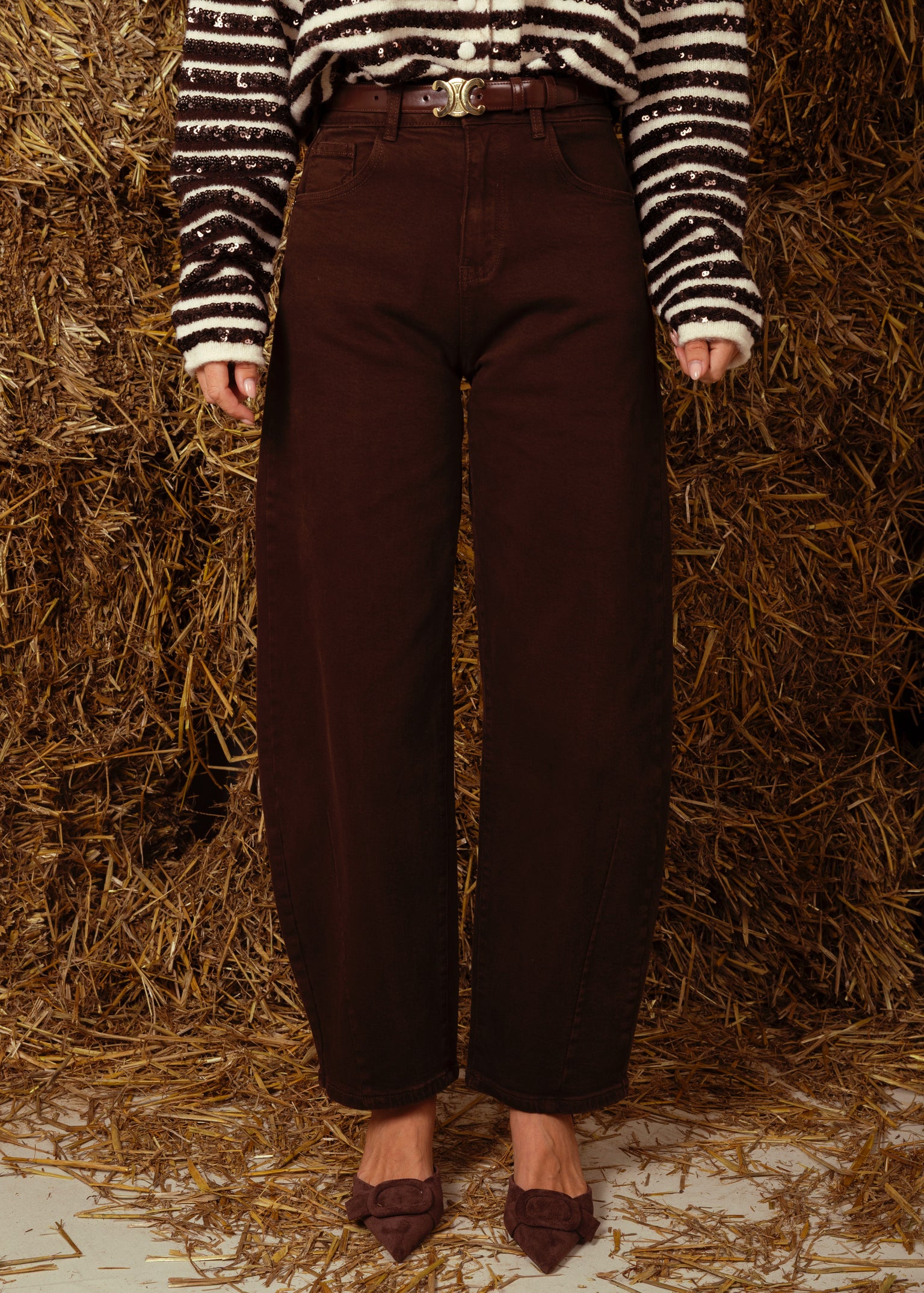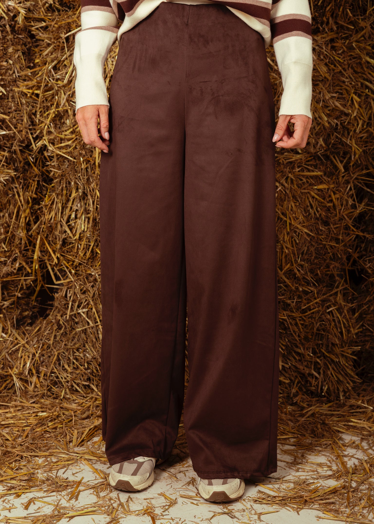 BROWN BALLOON VELOUR WIDE LEG PANTS