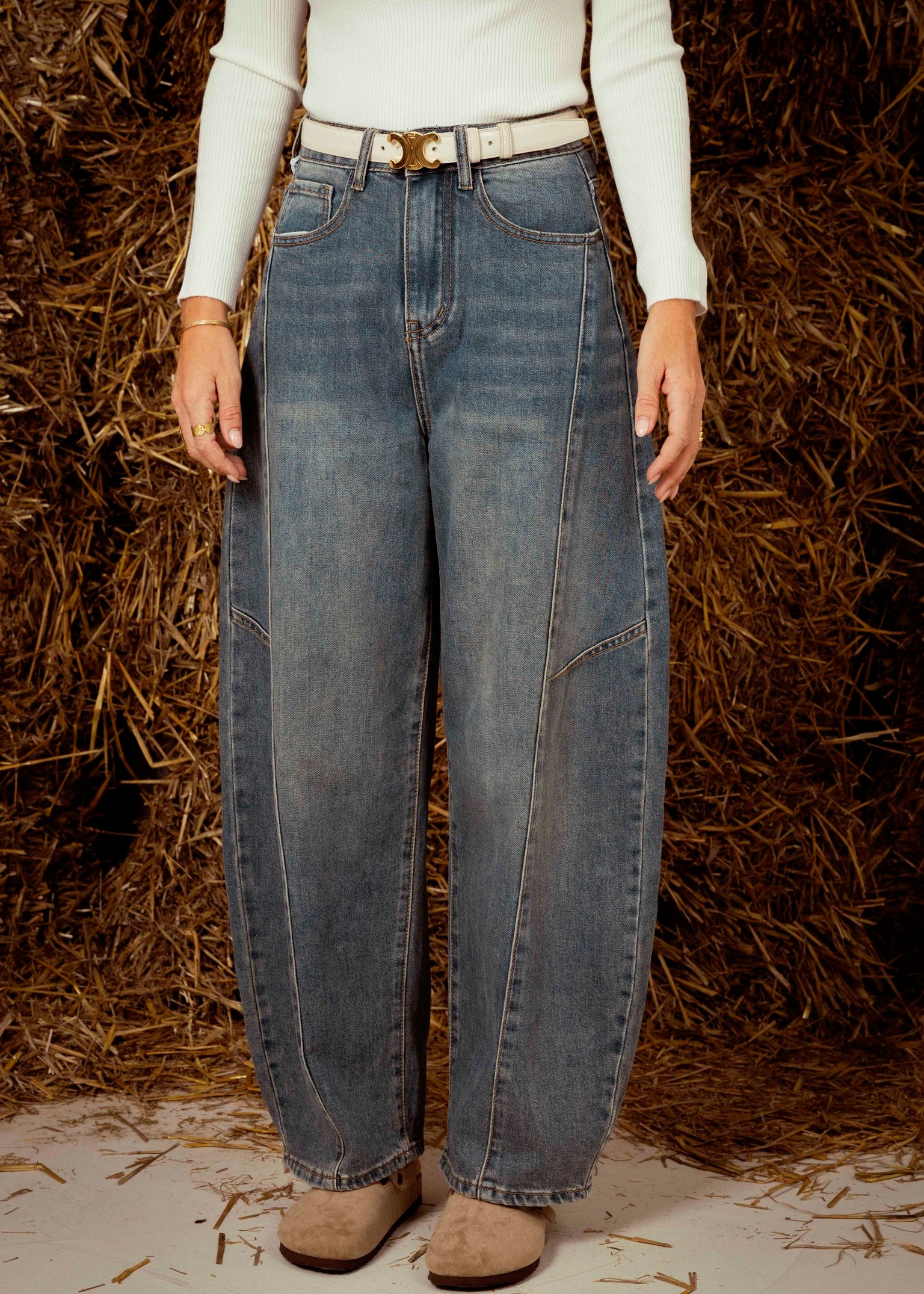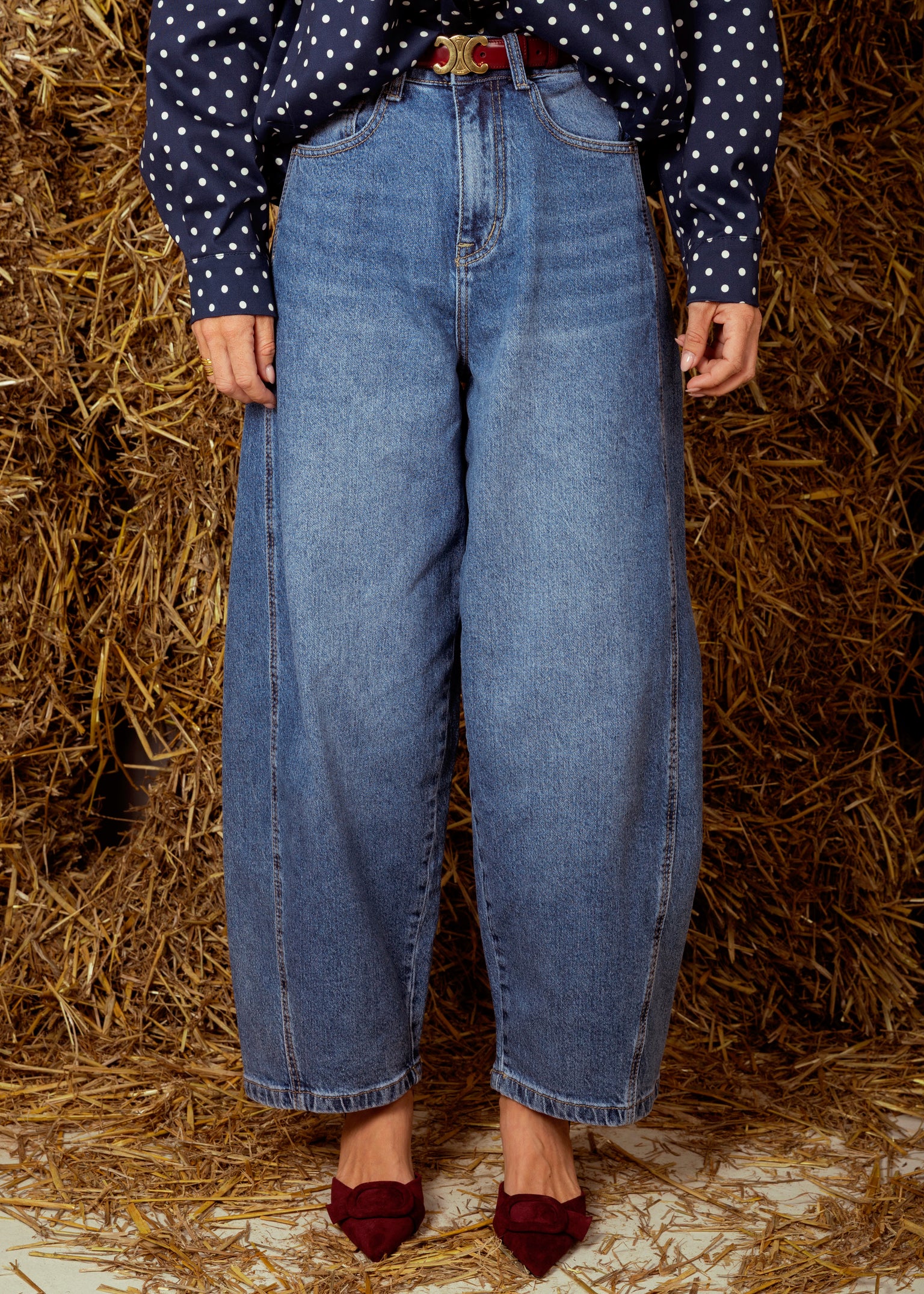 BARREL DARK BLUE MID WAIST JEANS 611-F-3