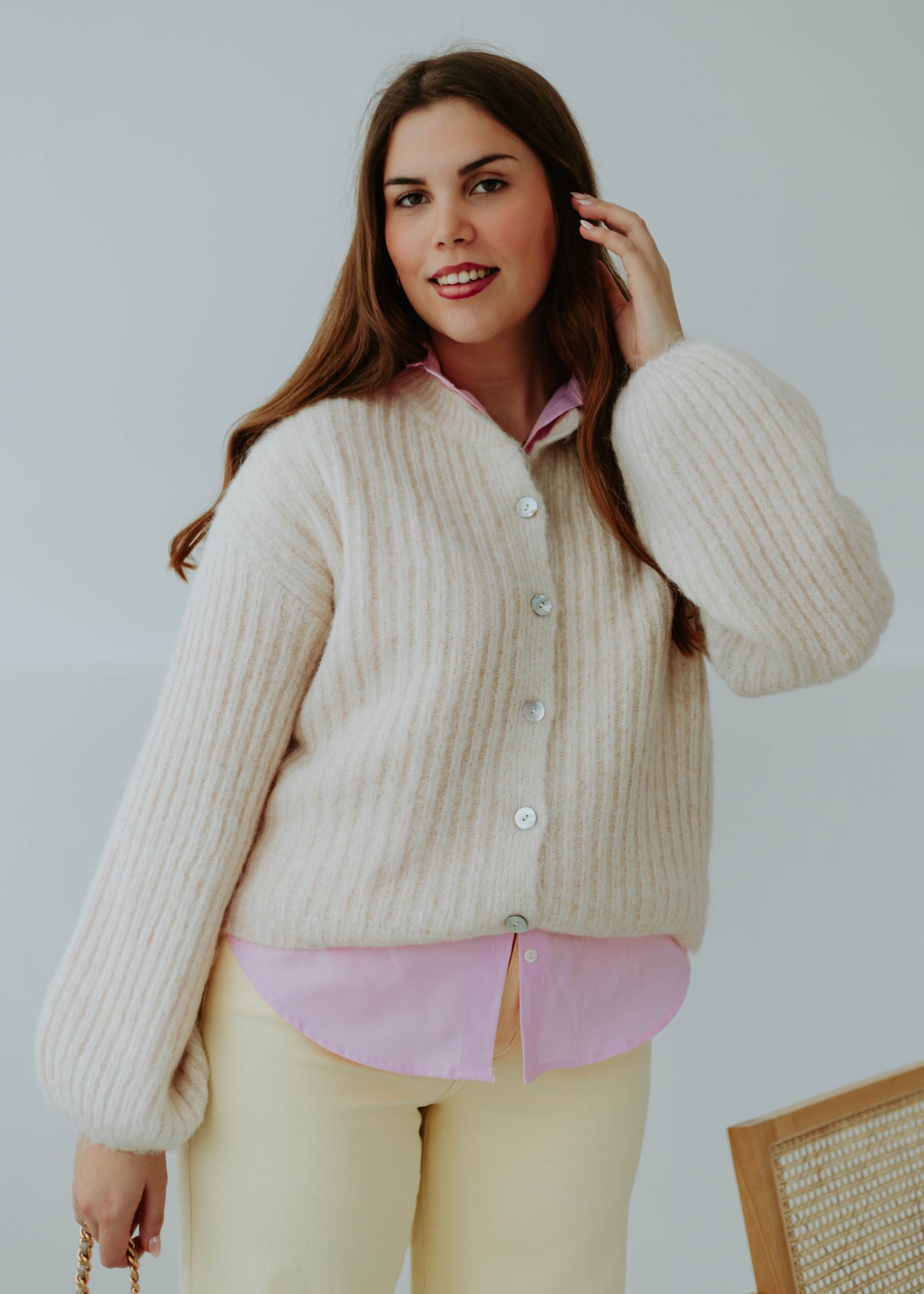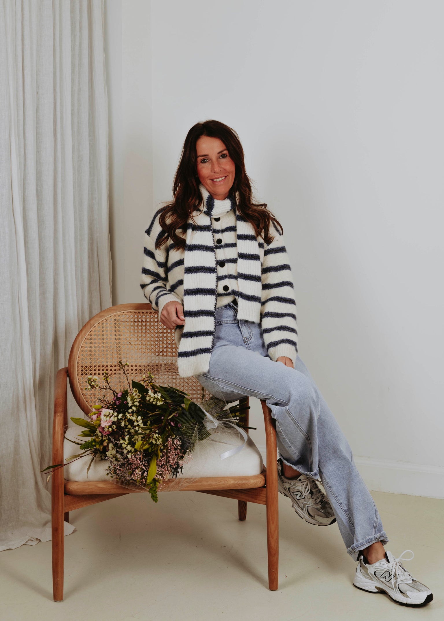 MONA ECRU STRIPED CARDIGAN WITH SCARF