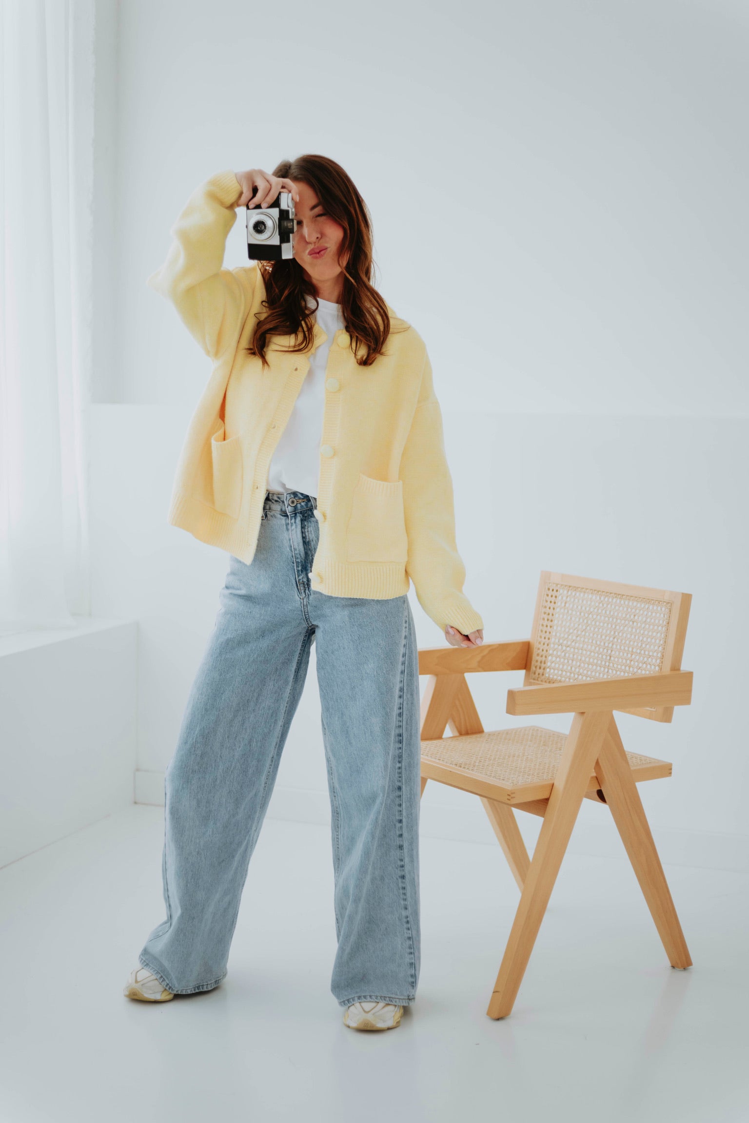 NORI BUTTER YELLOW BUTTON CARDIGAN