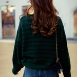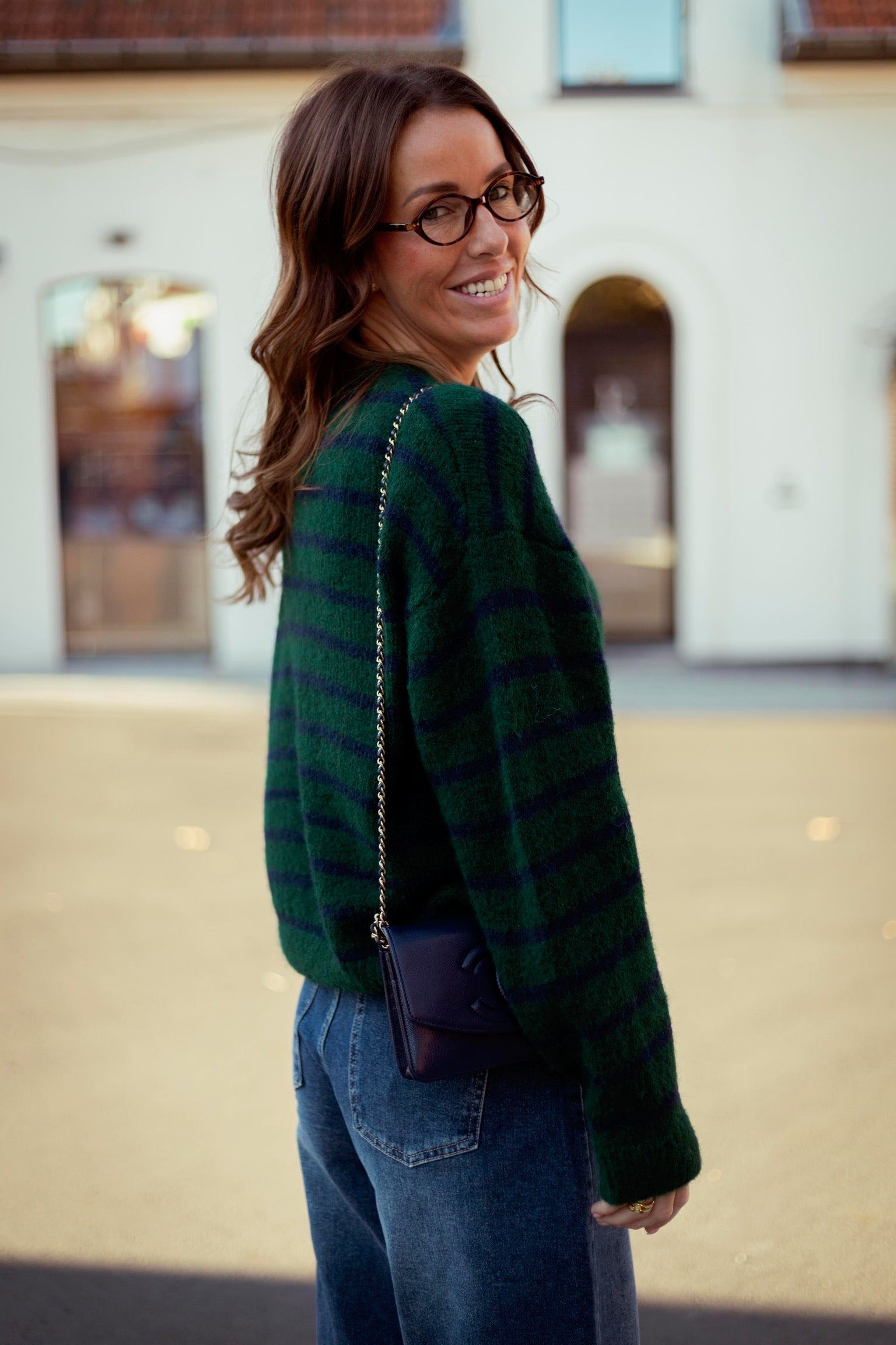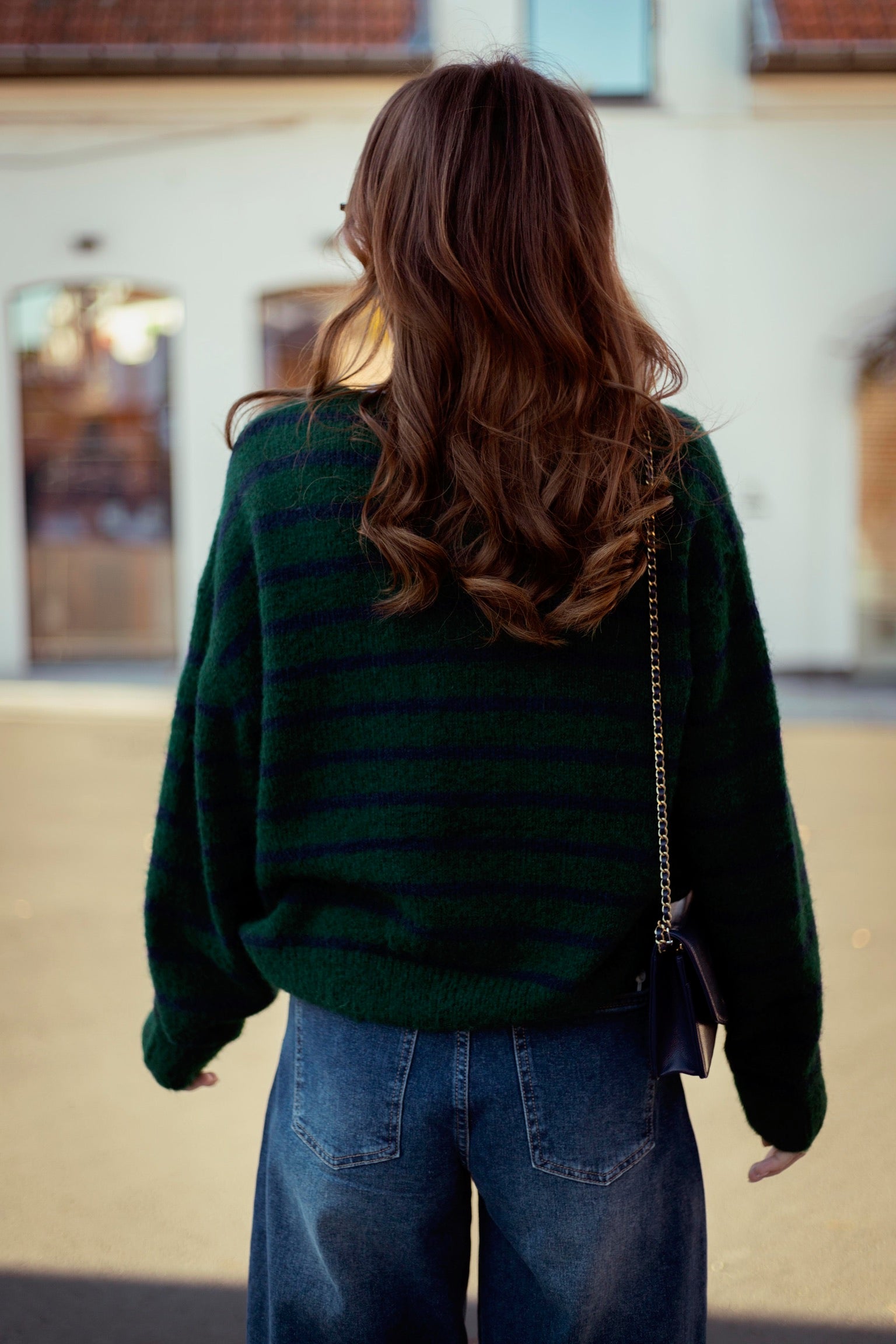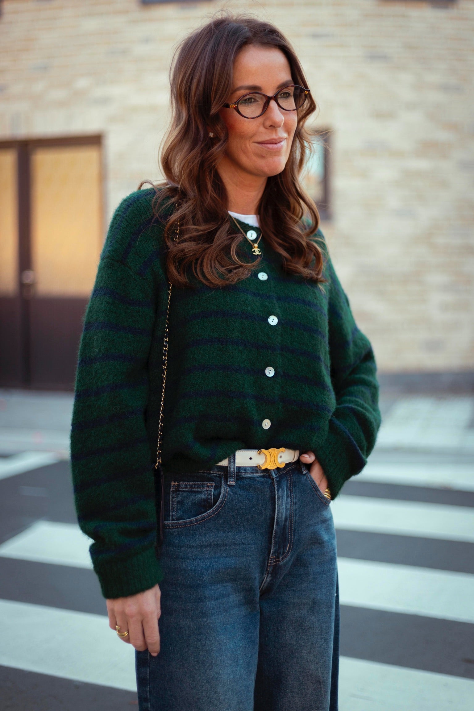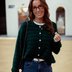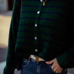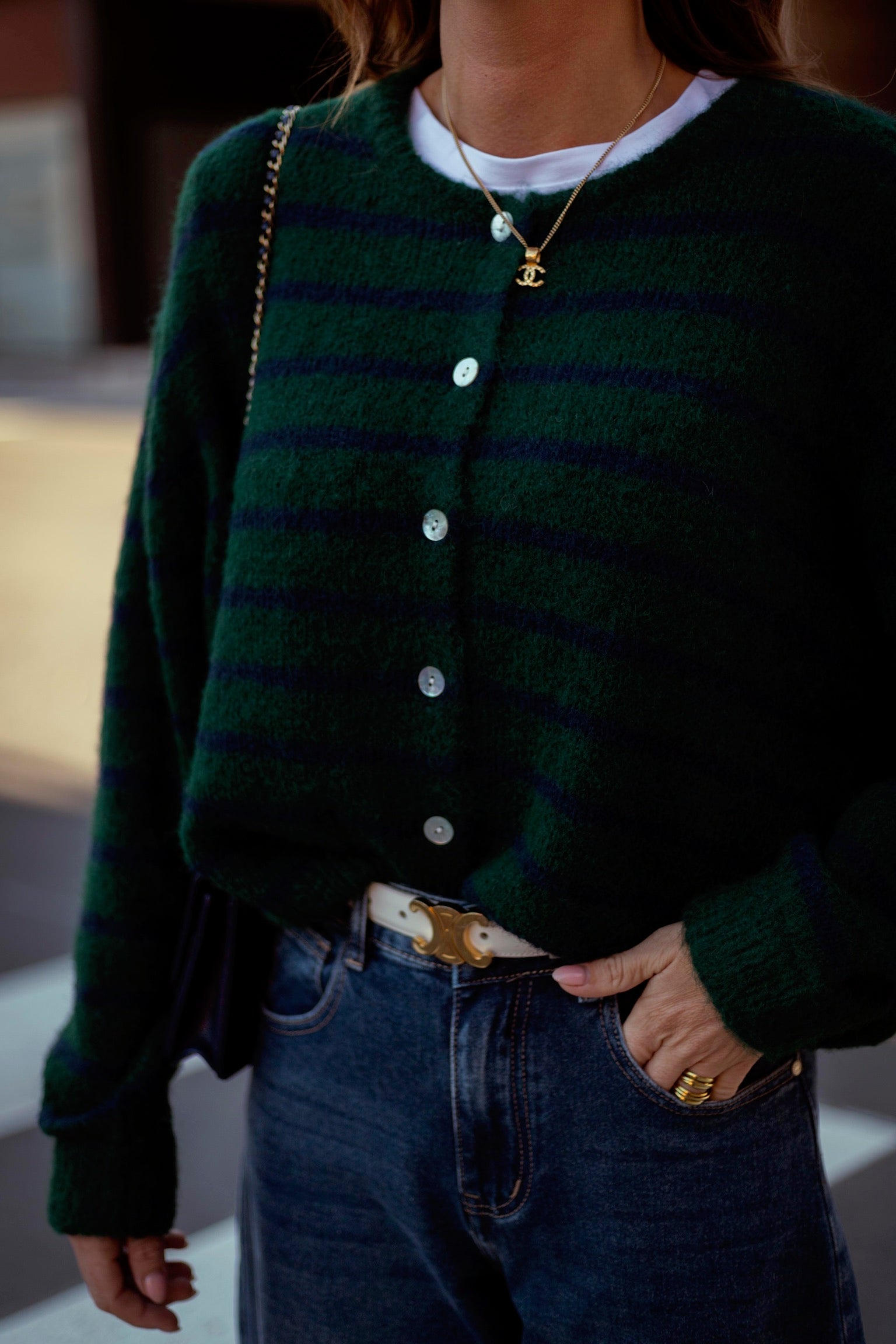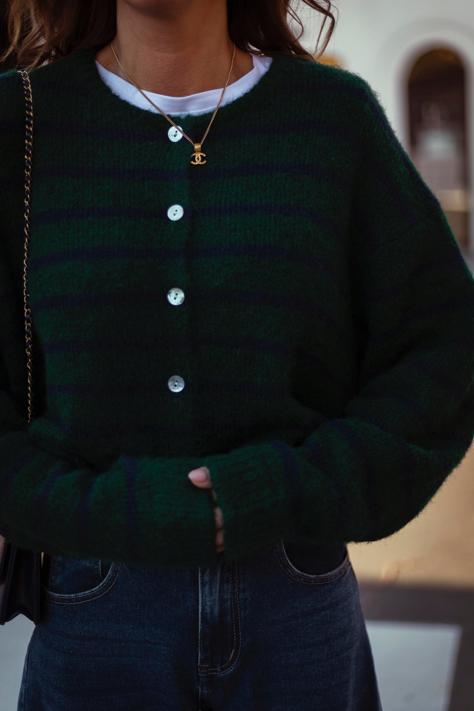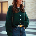POMELINE DARK GREEN STRIPED CARDIGAN