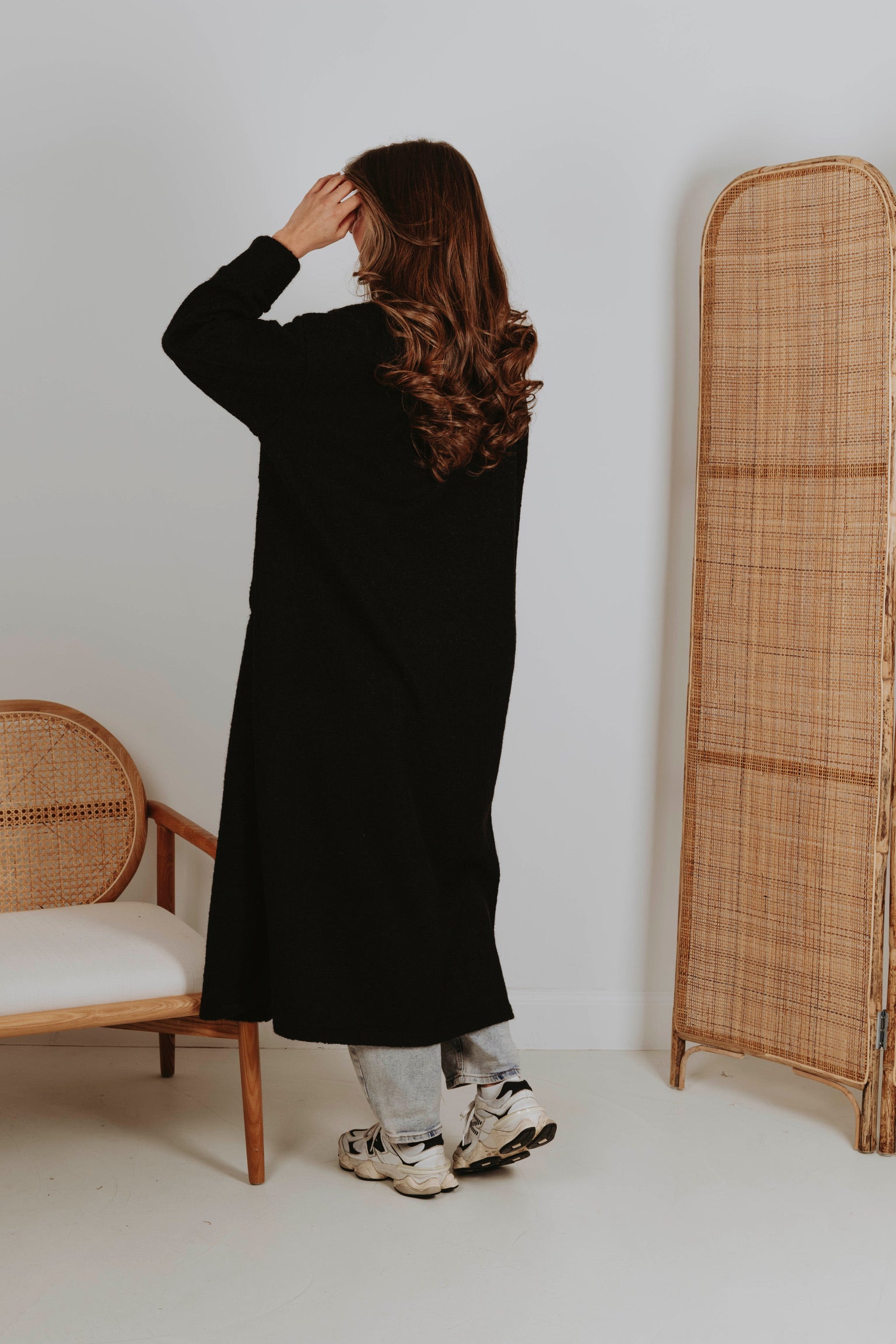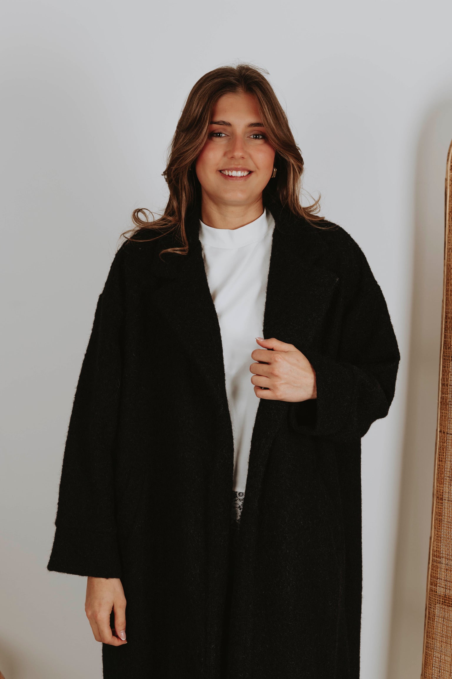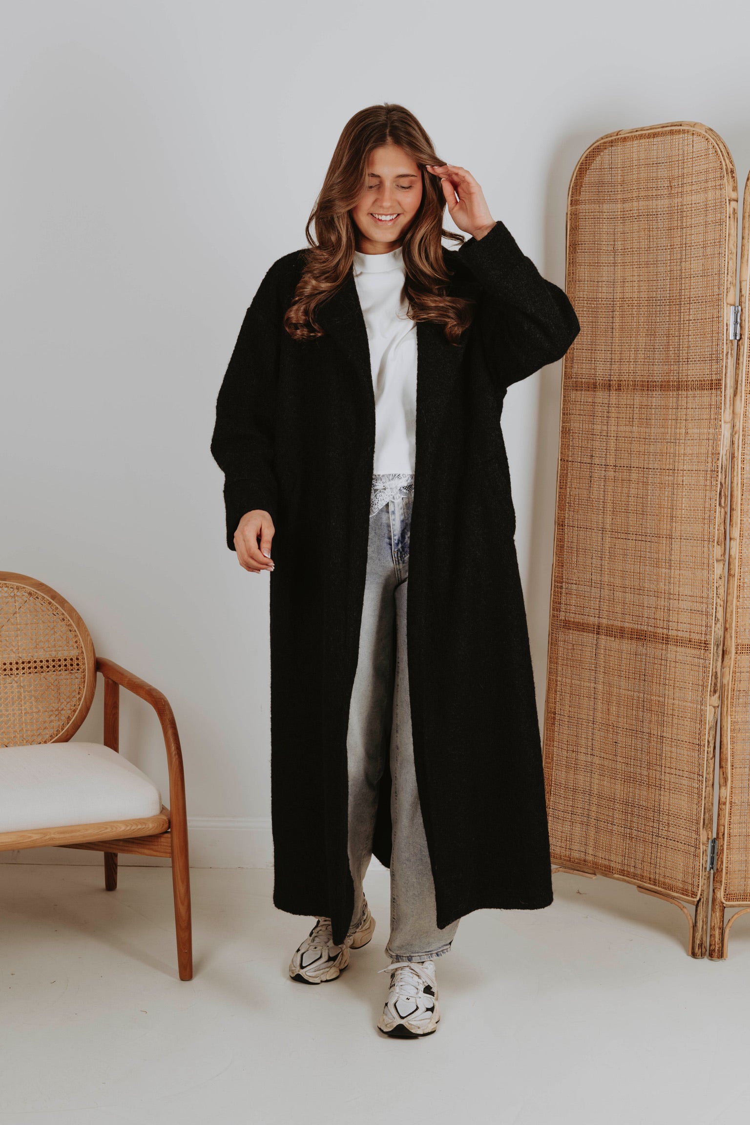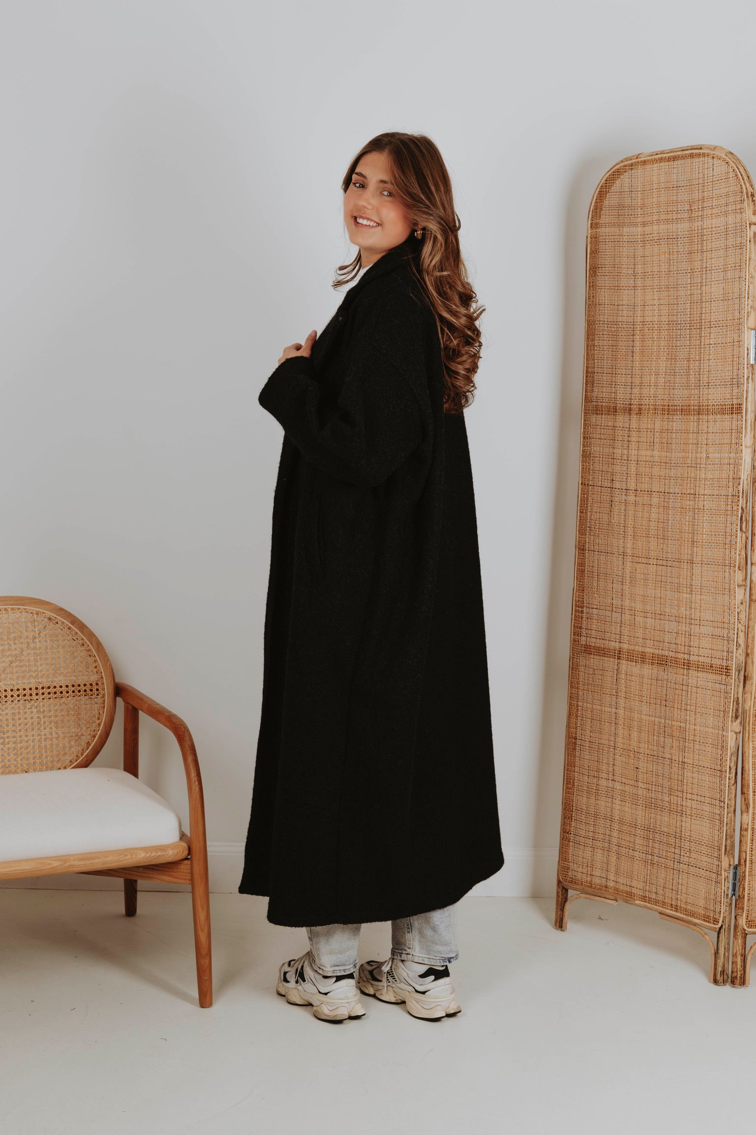 Een jas in zwarte tint die de rust van lentelandschappen weerspiegelt. Het stijlvolle ontwerp omhult je in warmte, perfect voor frisse ochtenden en gure avonden. Een tijdloze keuze die moeiteloos combineert met elke lentelook.
