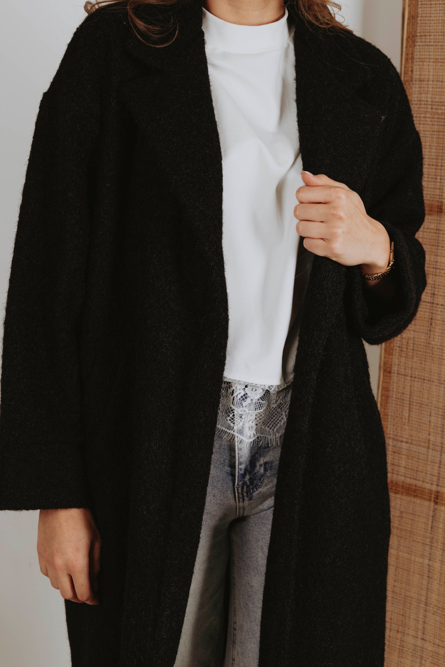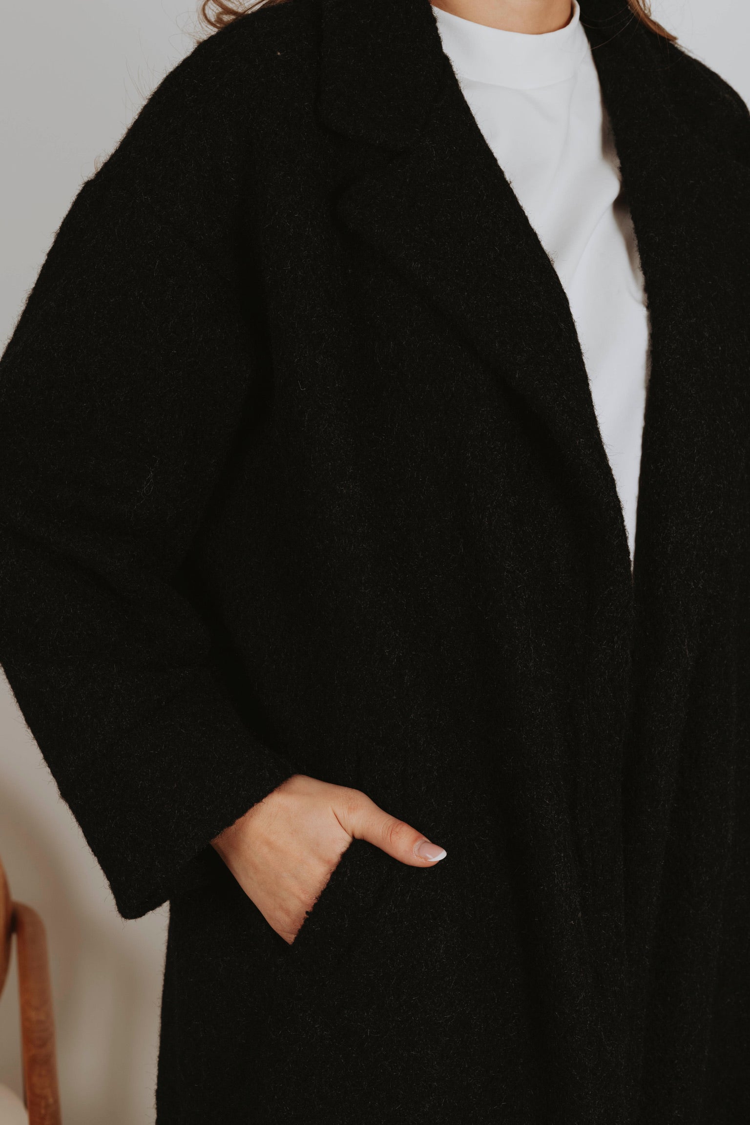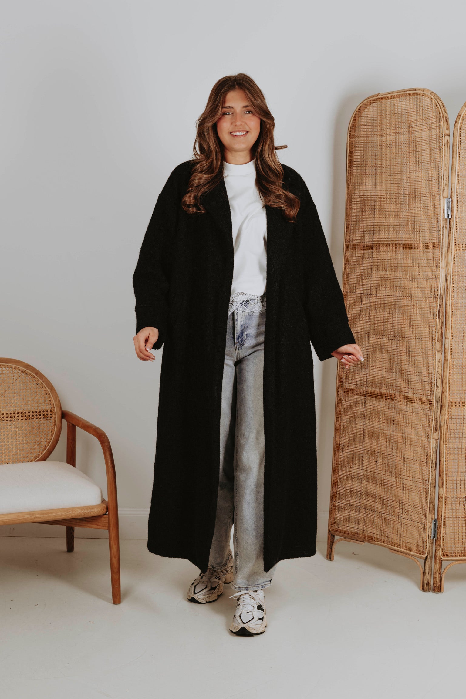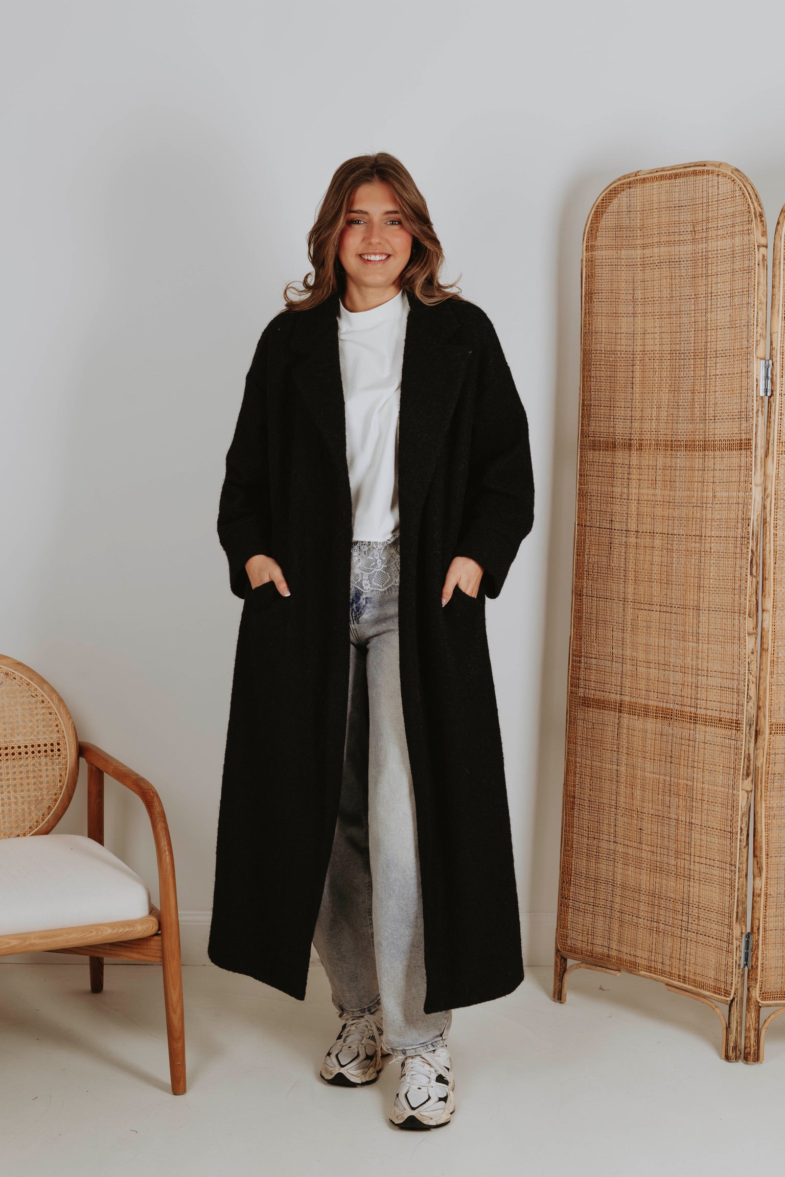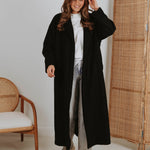 Een jas in zwarte tint die de rust van lentelandschappen weerspiegelt. Het stijlvolle ontwerp omhult je in warmte, perfect voor frisse ochtenden en gure avonden. Een tijdloze keuze die moeiteloos combineert met elke lentelook.