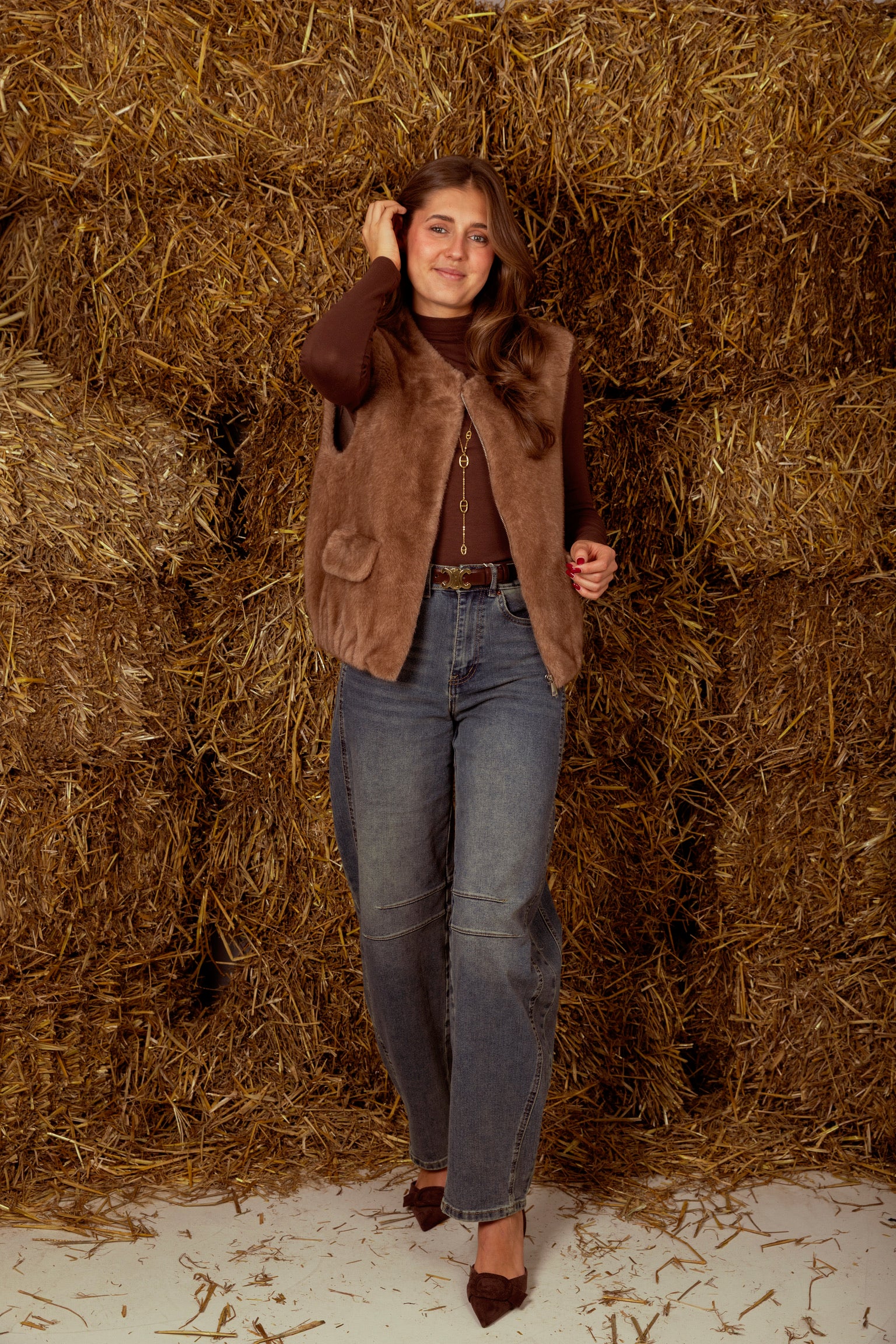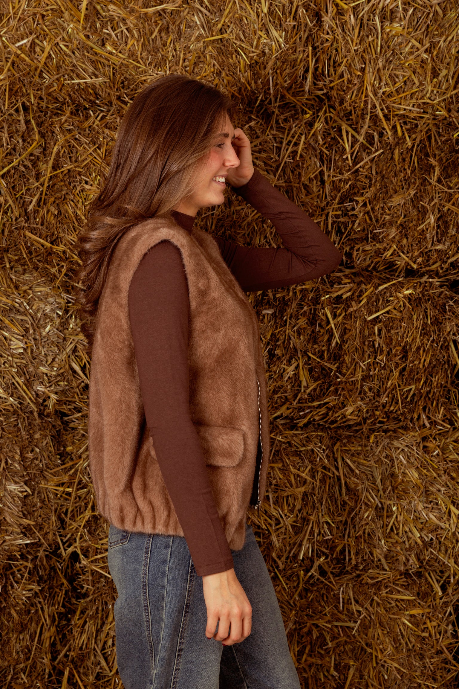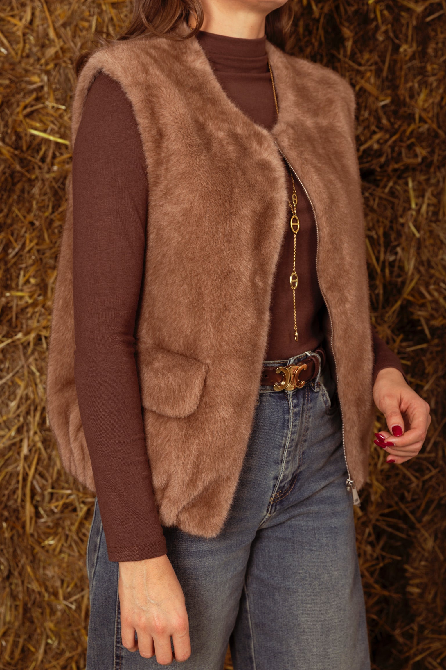 EUGENIA BROWN FAUX FUR SLEEVELESS JACKET – Boetiek Pure Sense