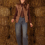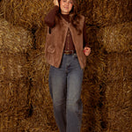 EUGENIA BROWN FAUX FUR SLEEVELESS JACKET