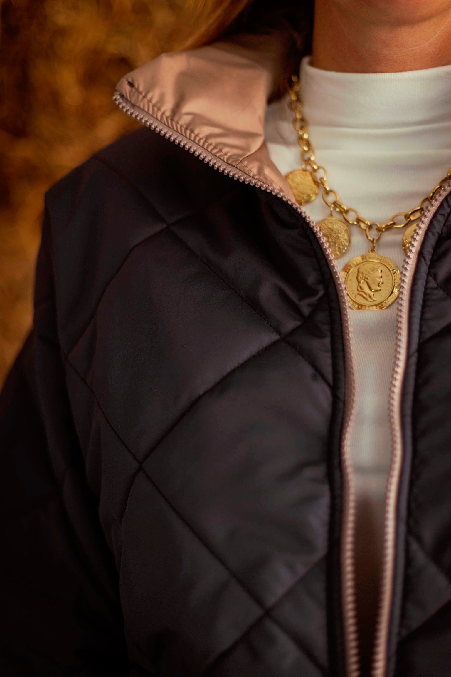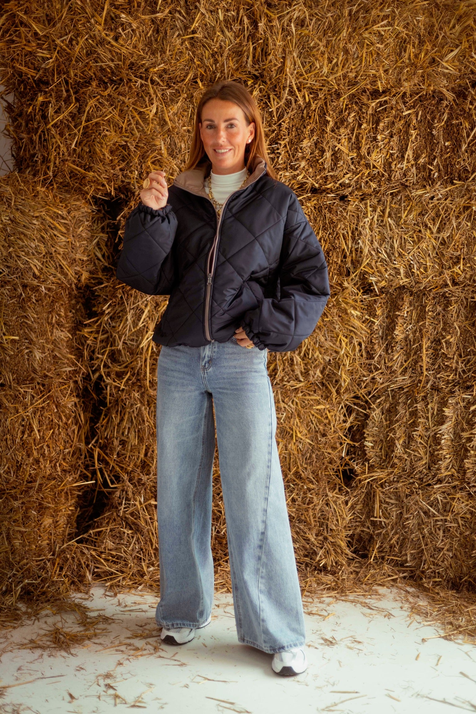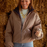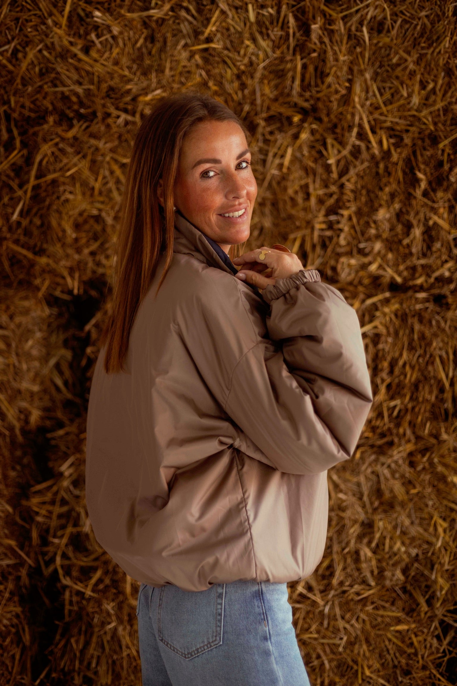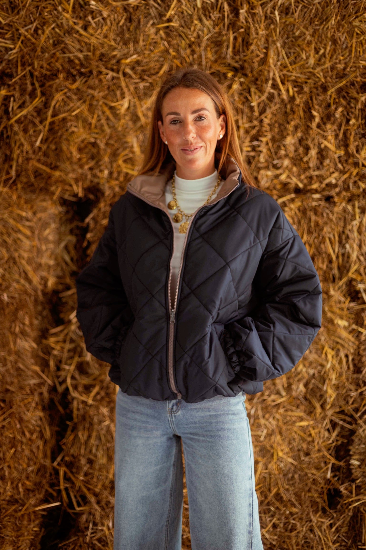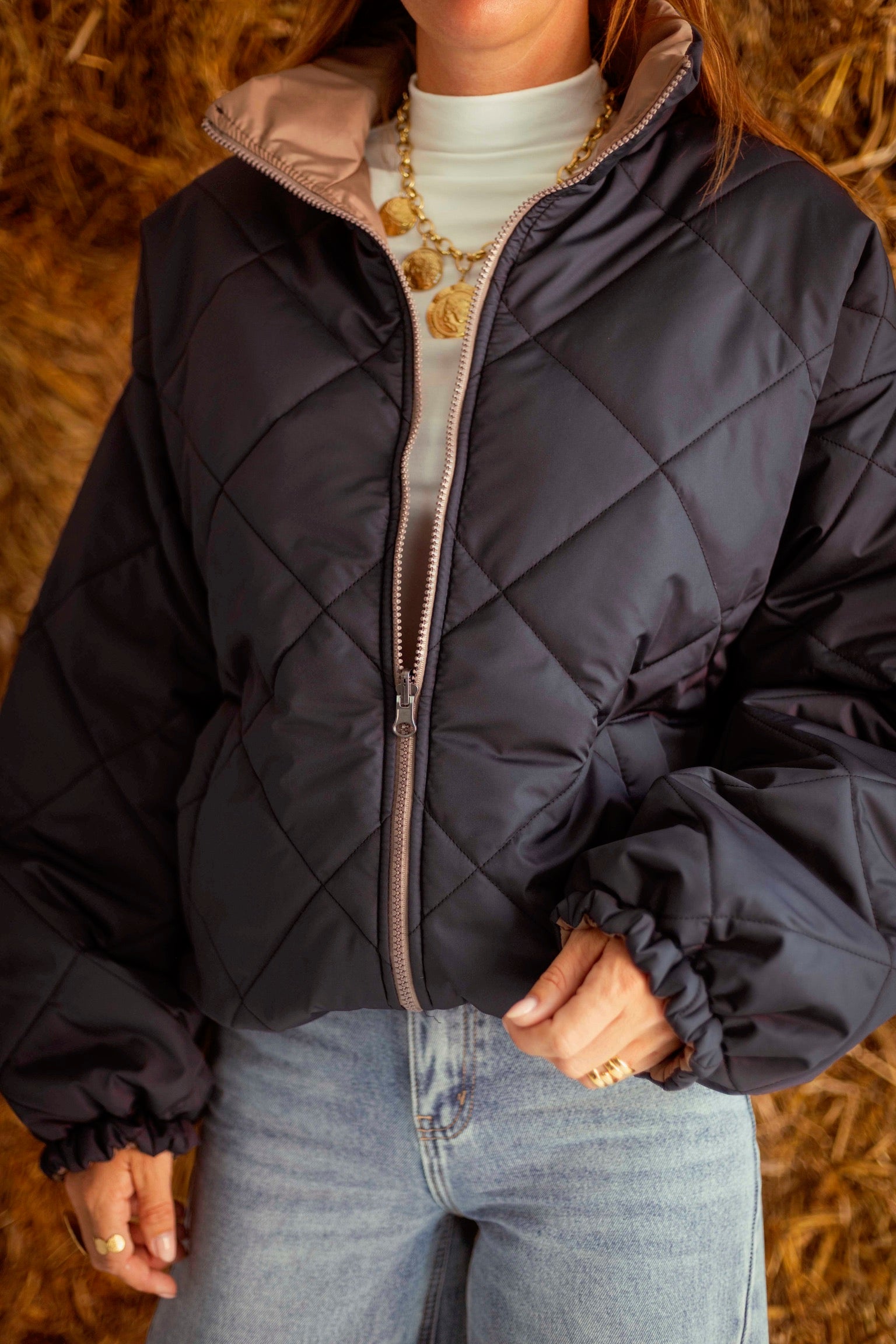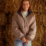 TRUDY DARK BLUE/TAUPE REVERSIBLE PUFFER JACKET – Boetiek Pure Sense