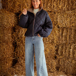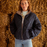 TRUDY DARK BLUE/TAUPE REVERSIBLE PUFFER JACKET
