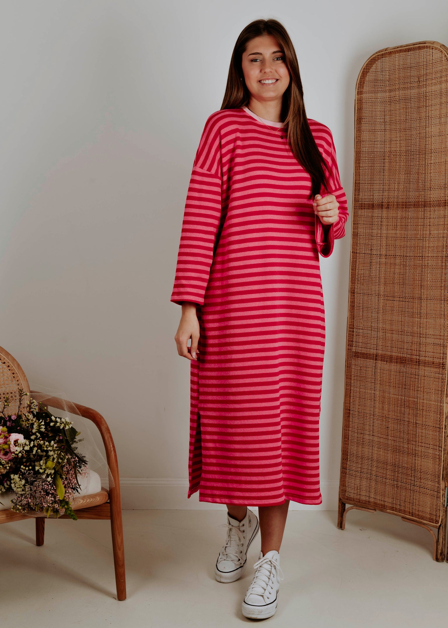 SURYA PINK/RED STRIPED DRESS