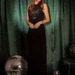 Een elegante, vloeiende look die meteen de feestdagen tot leven brengt. De zachte drapering creëert een speels silhouet dat bij elke stap subtiel meebeweegt. Perfect om te stralen tijdens kerstdiners, borrels en sprankelende nieuwjaarsavonden.