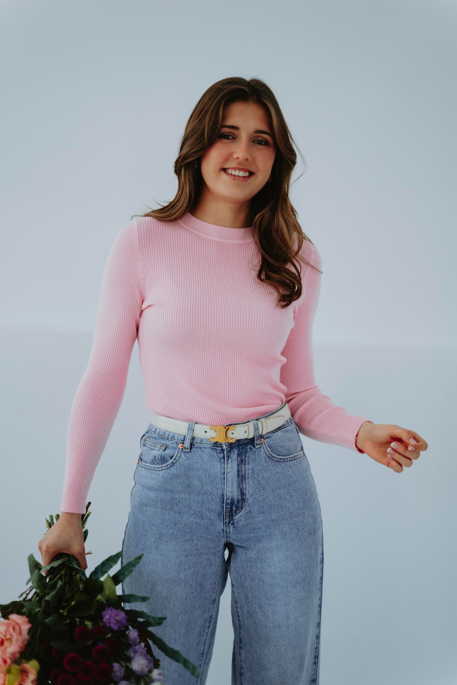 BELLE PINK RIBBED LONGSLEEVE TOP