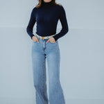 DEVIKA DARK BLUE RIBBED TURTLENECK LONGSLEEVE SHIRT
