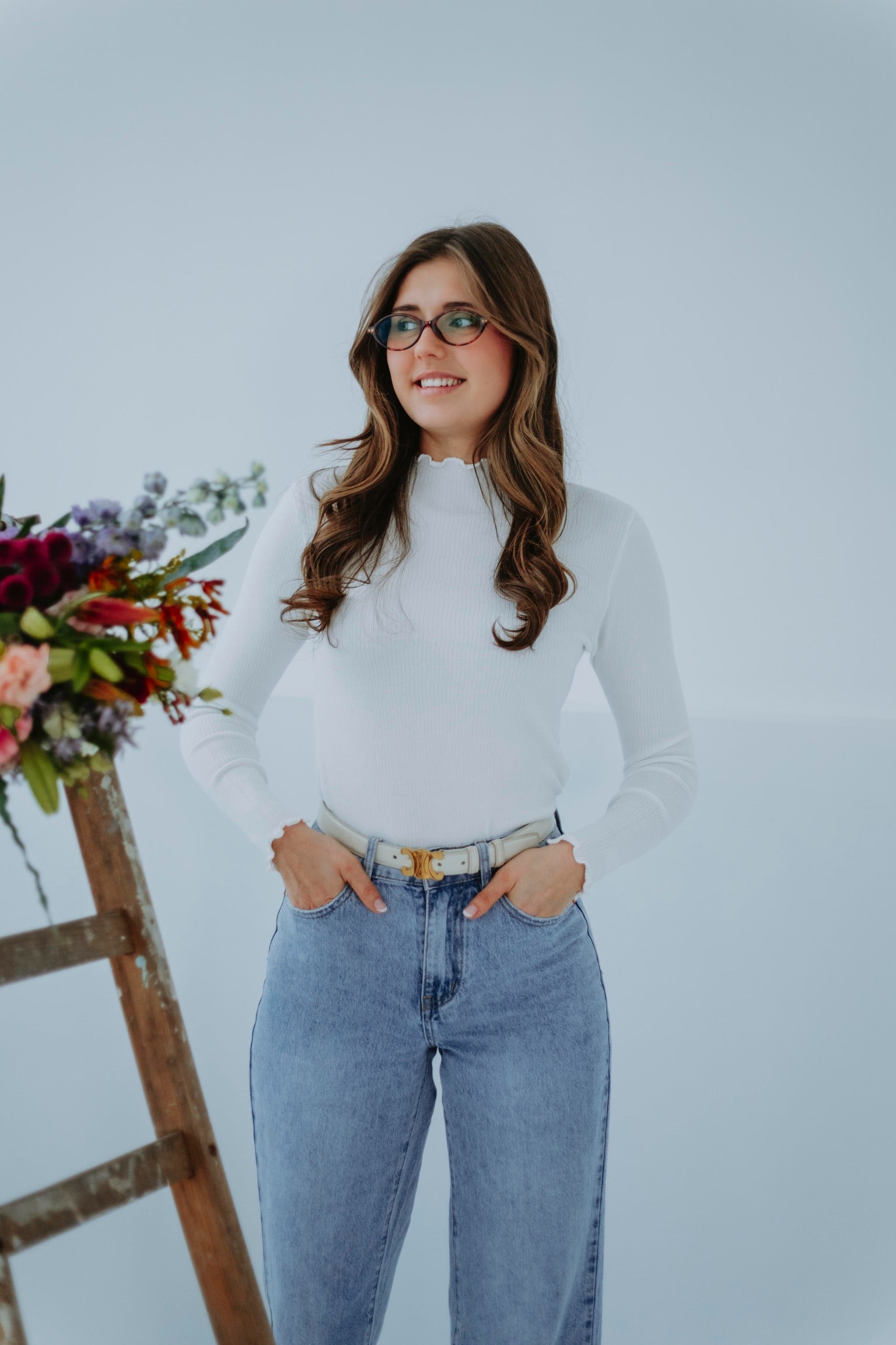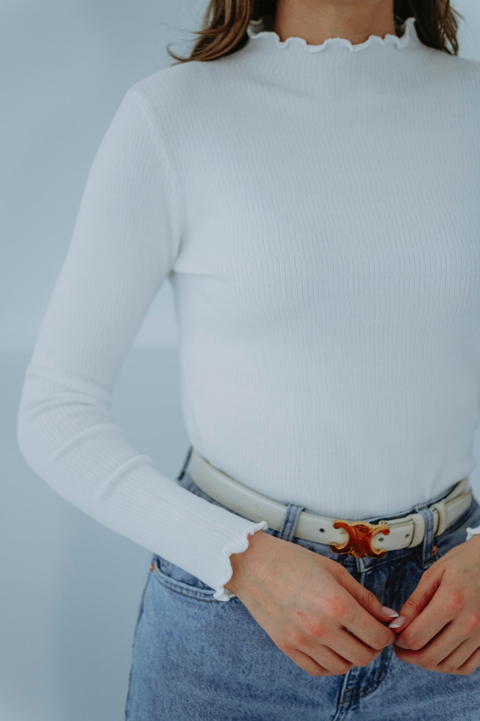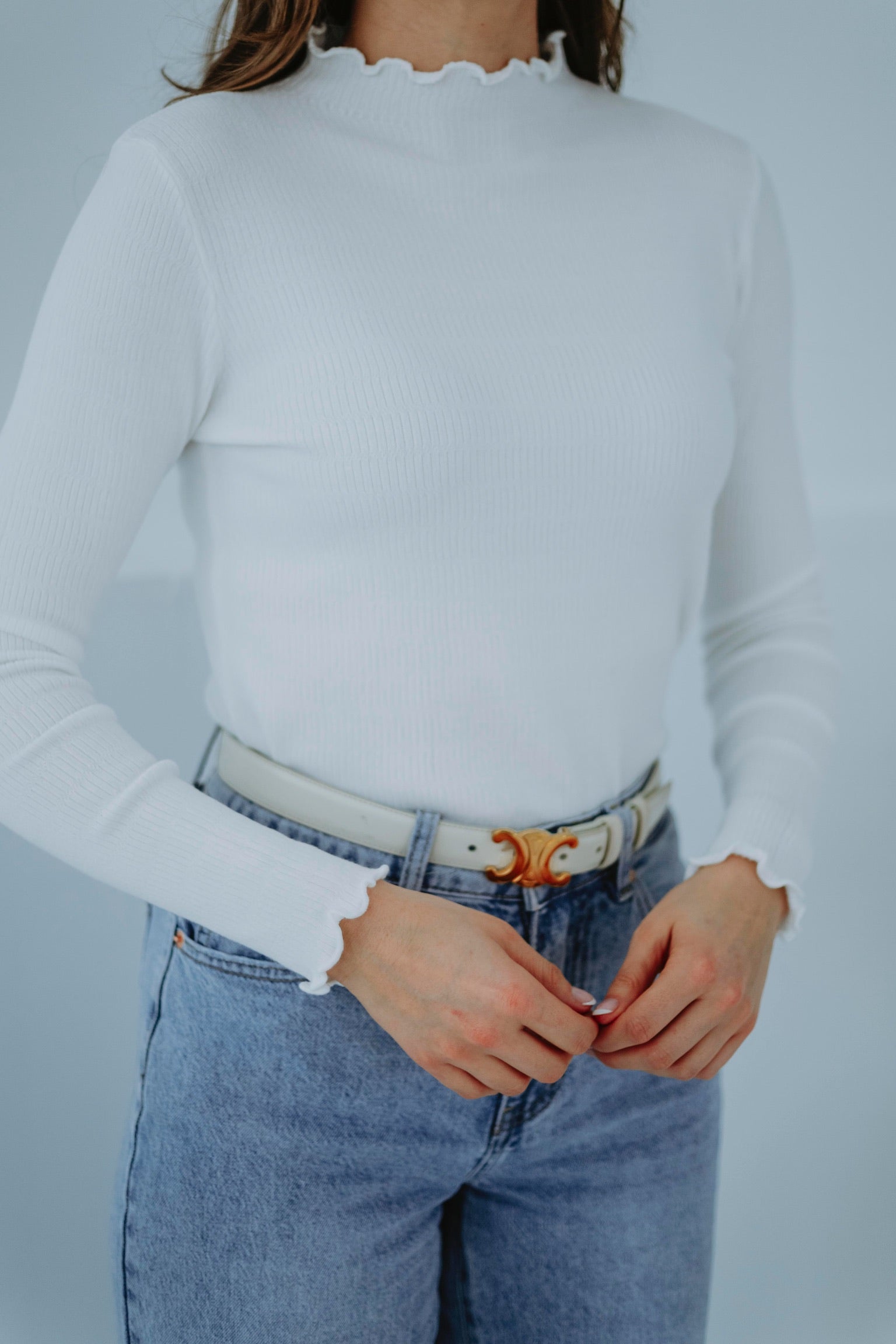 EUPHORIA WHITE RUFFLE LONGSLEEVE TOP