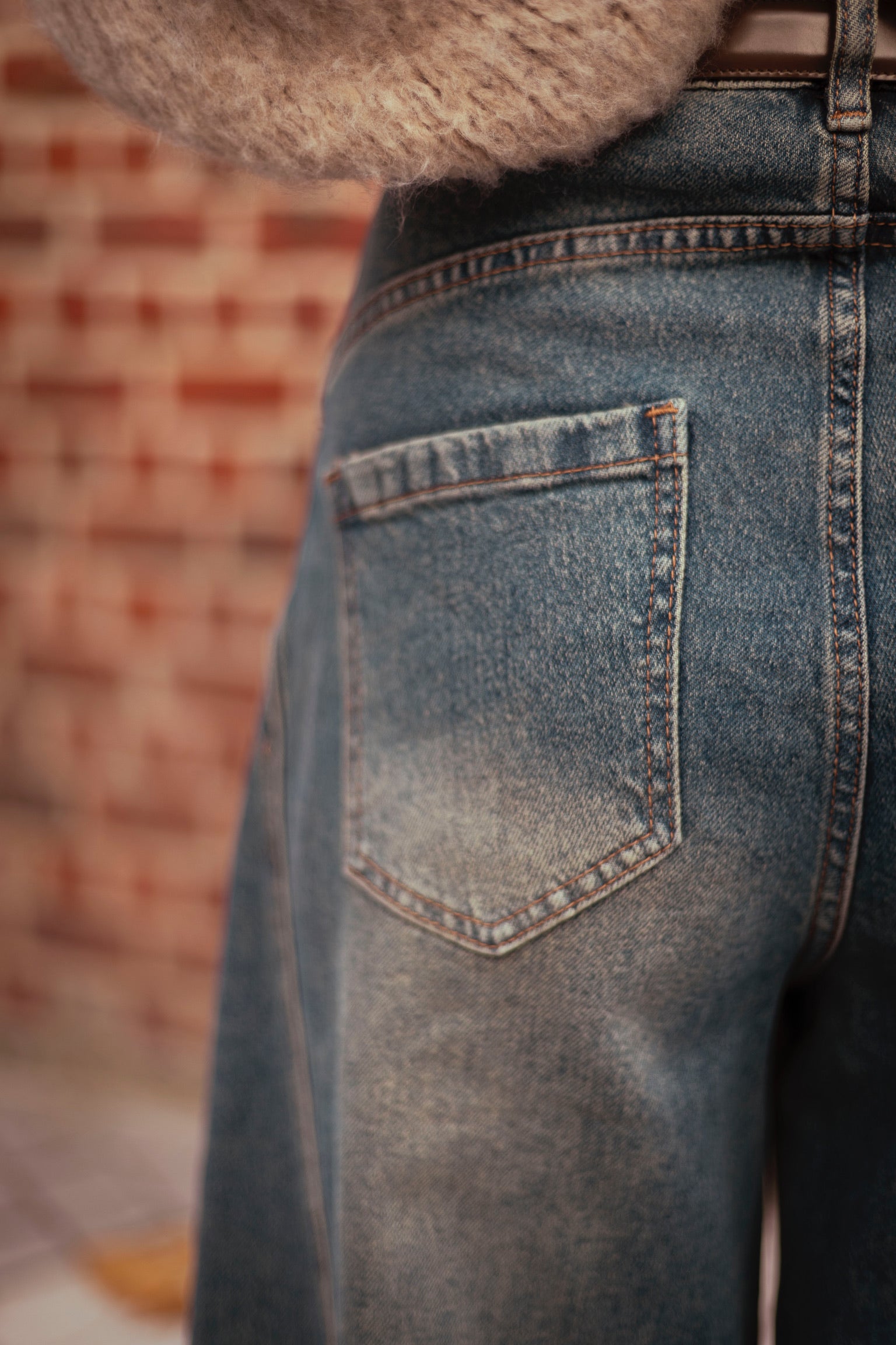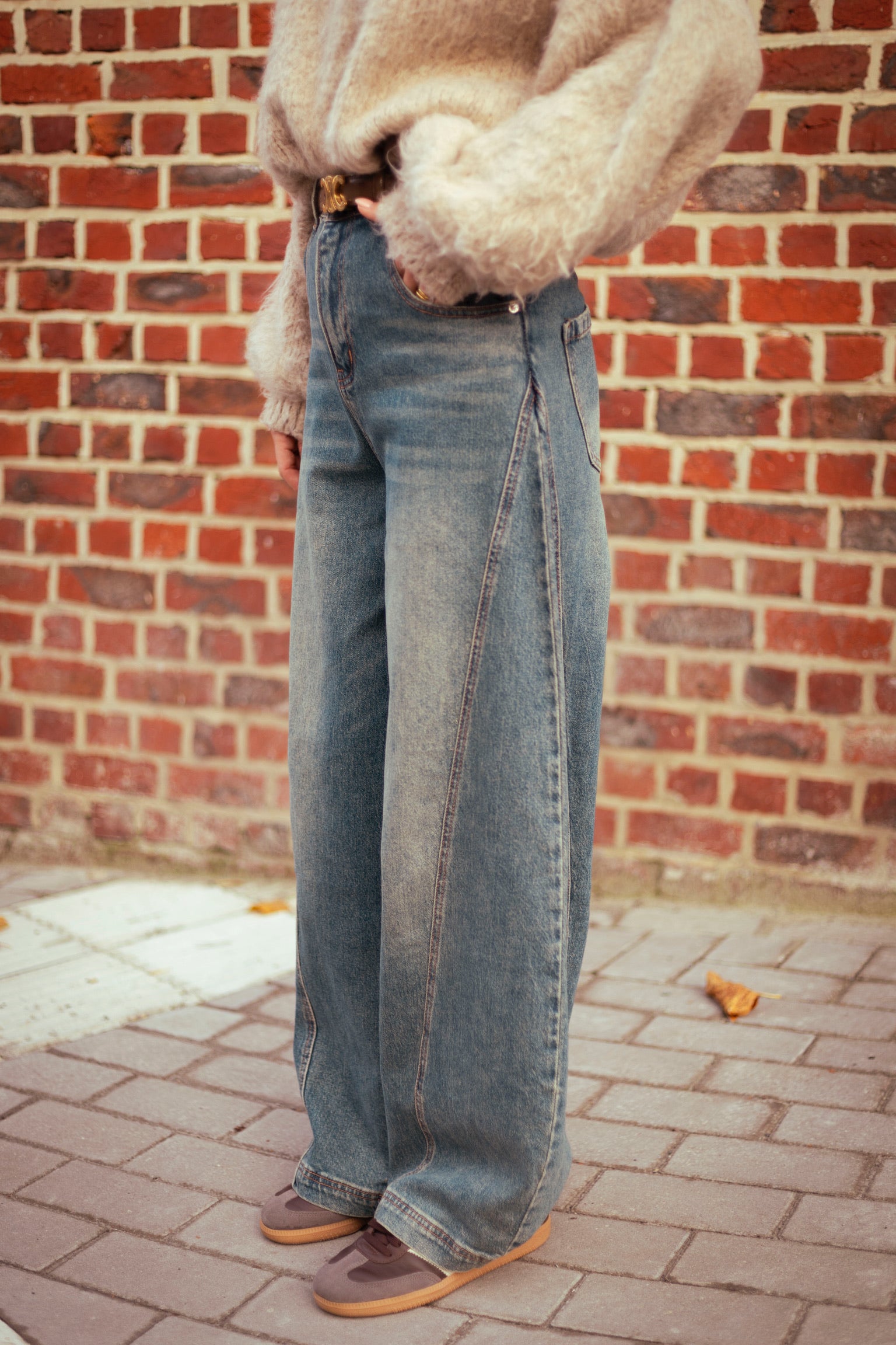 Een relaxed denim silhouet met een eigentijdse twist, perfect voor dagen vol beweging in de stad. De zachte blauwe wassing geeft die casual, lived-in look die moeiteloos meegaat van koffietent tot avondwandeling.