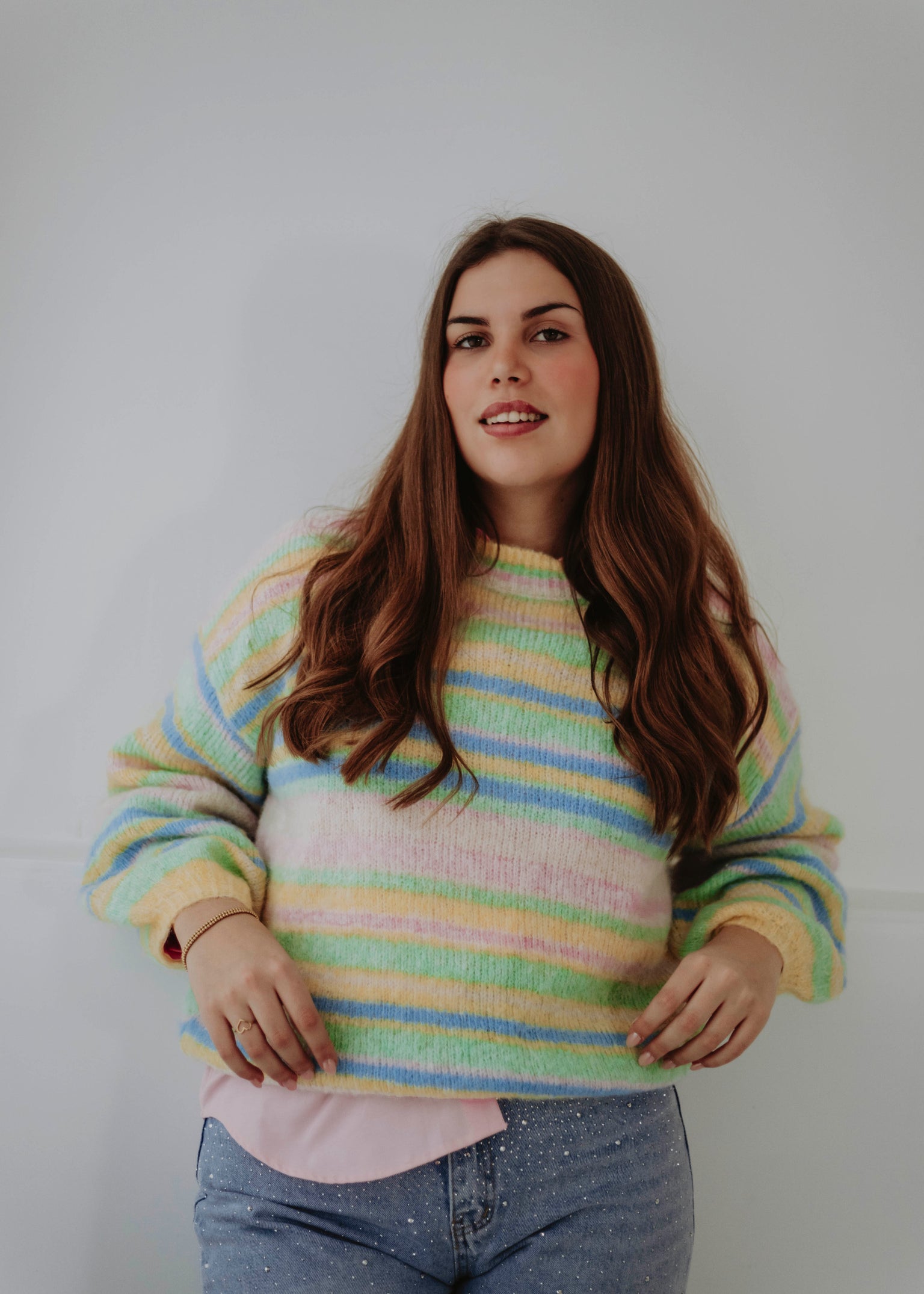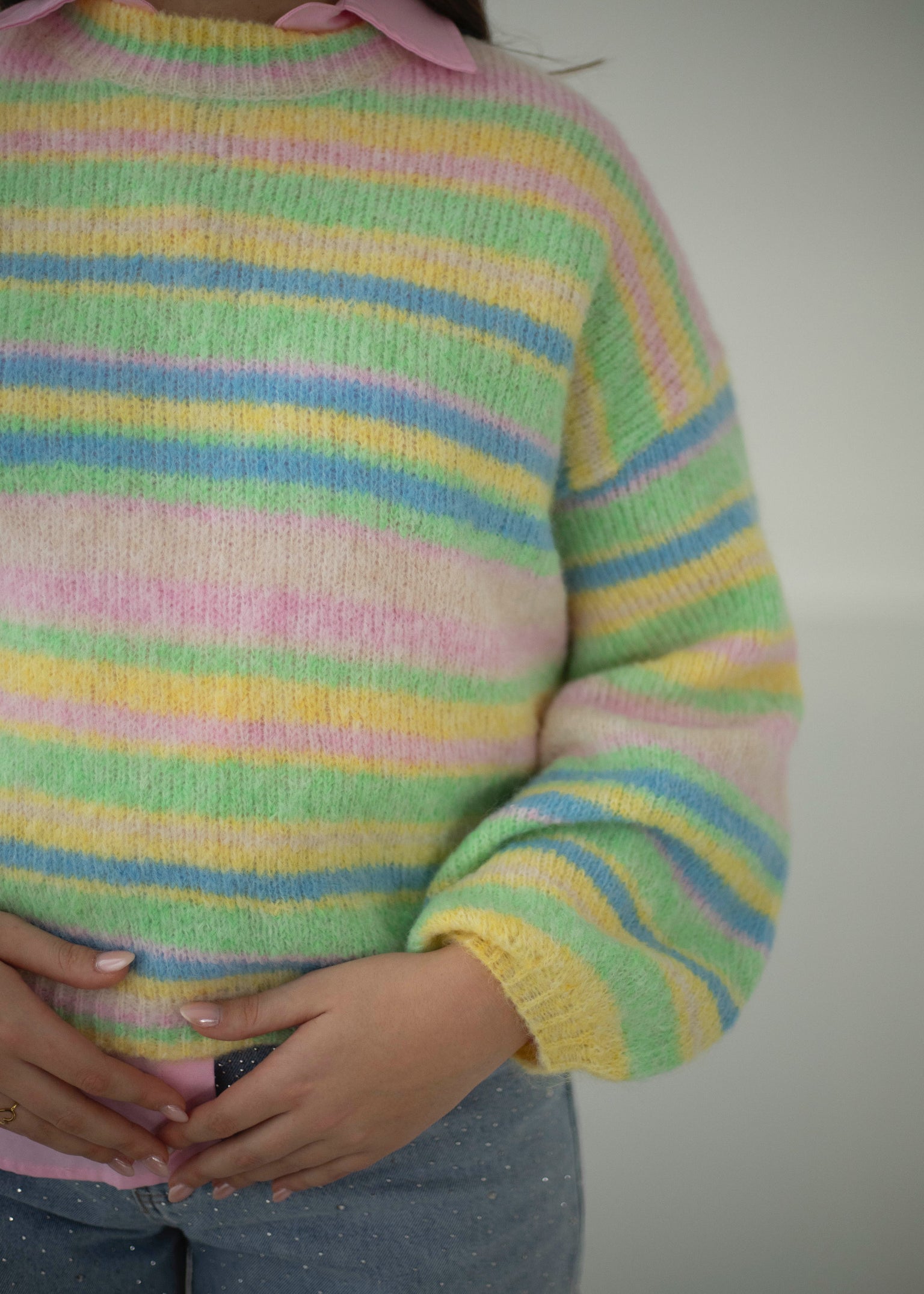 MIRTHE PASTEL MULTICOLOR STRIPED KNIT SWEATER
