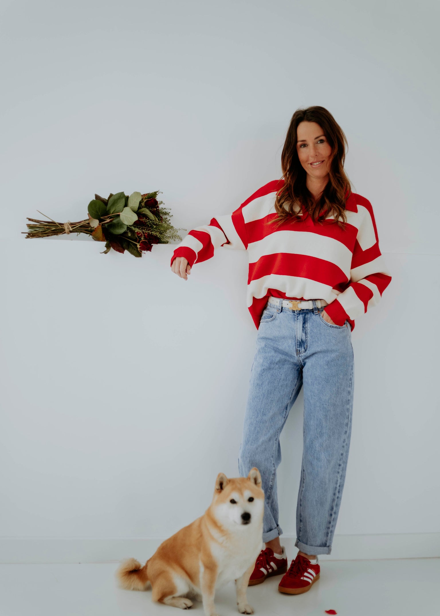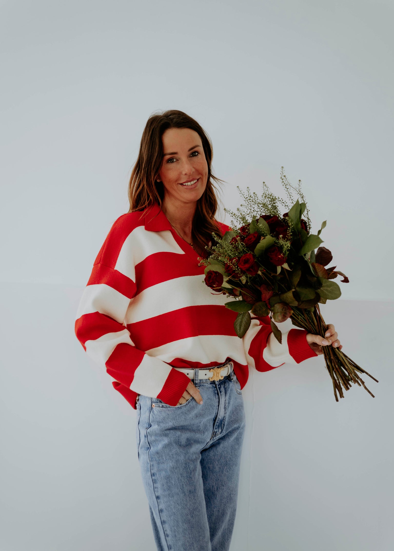 HEARTBREAKER RED/ECRU STRIPED POLO SWEATER