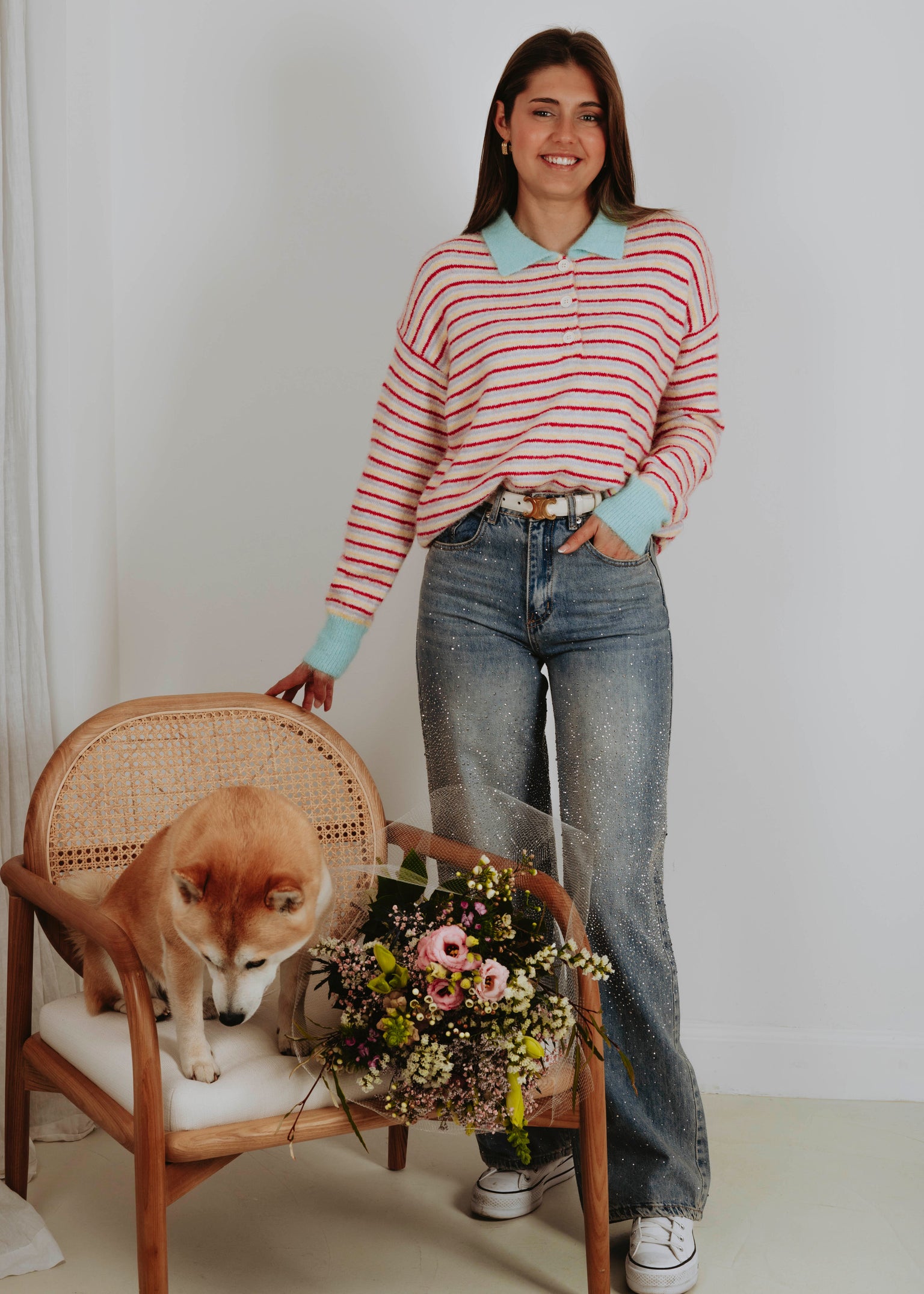 BARBARA MULTICOLOR STRIPED POLO KNIT SWEATER