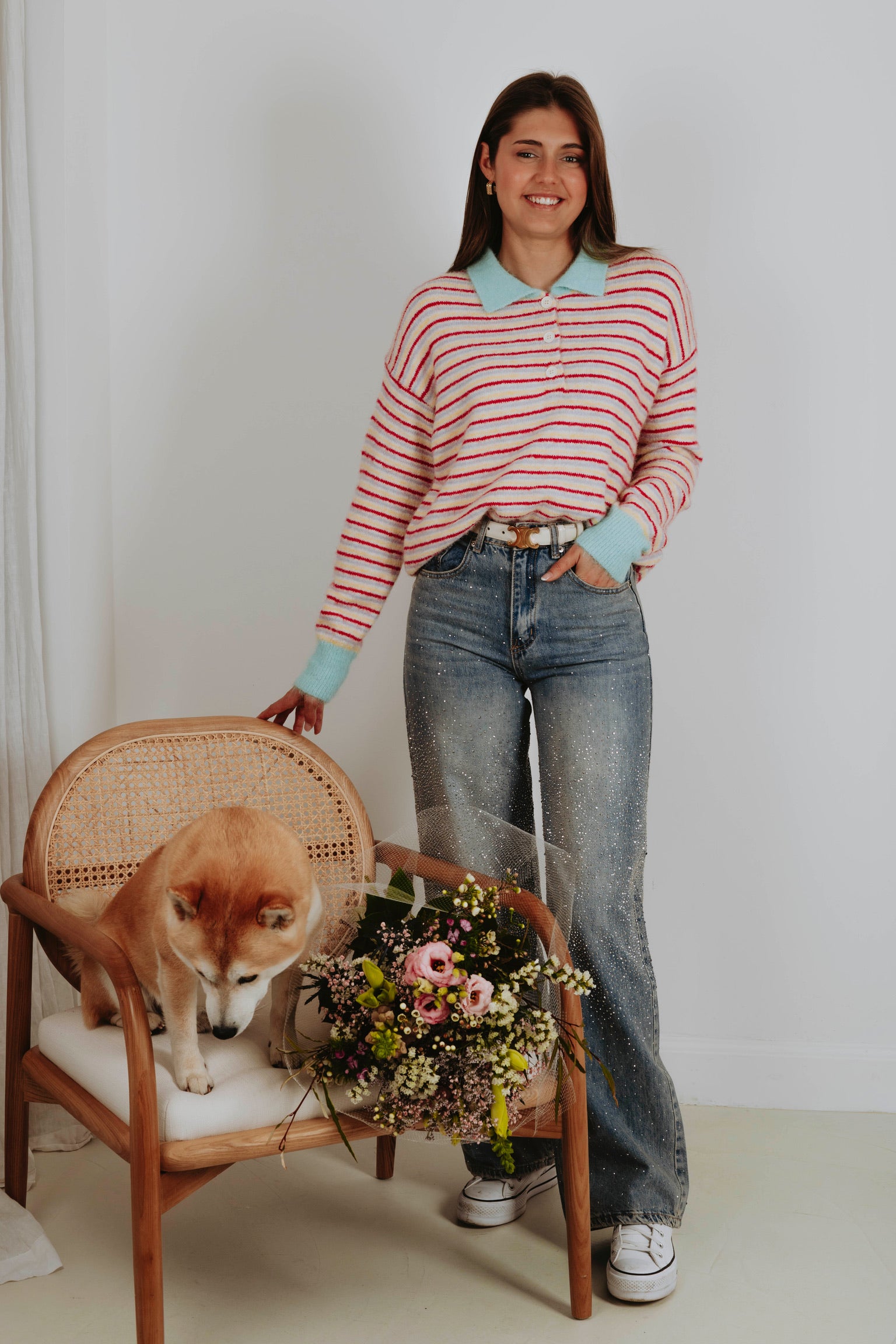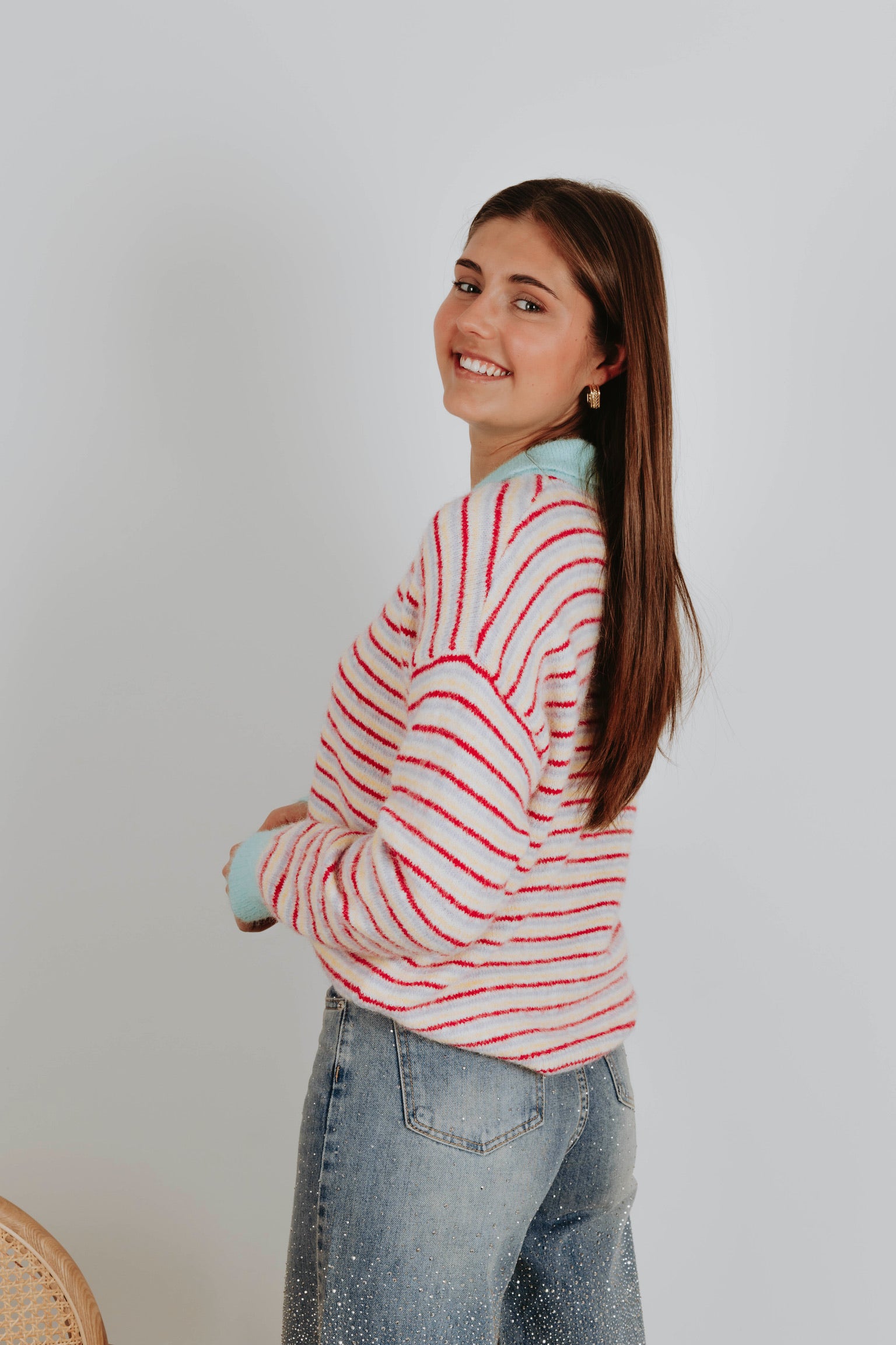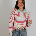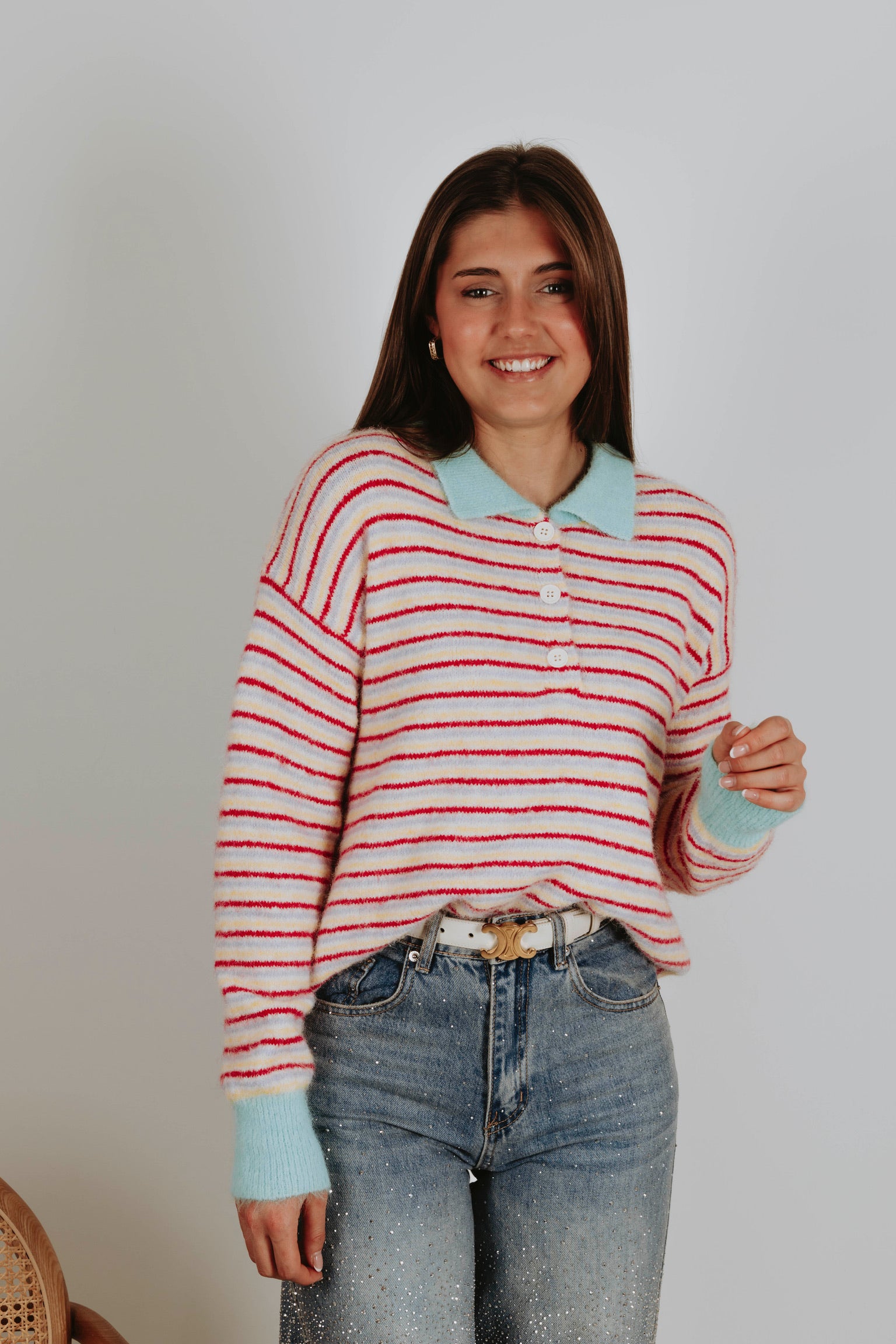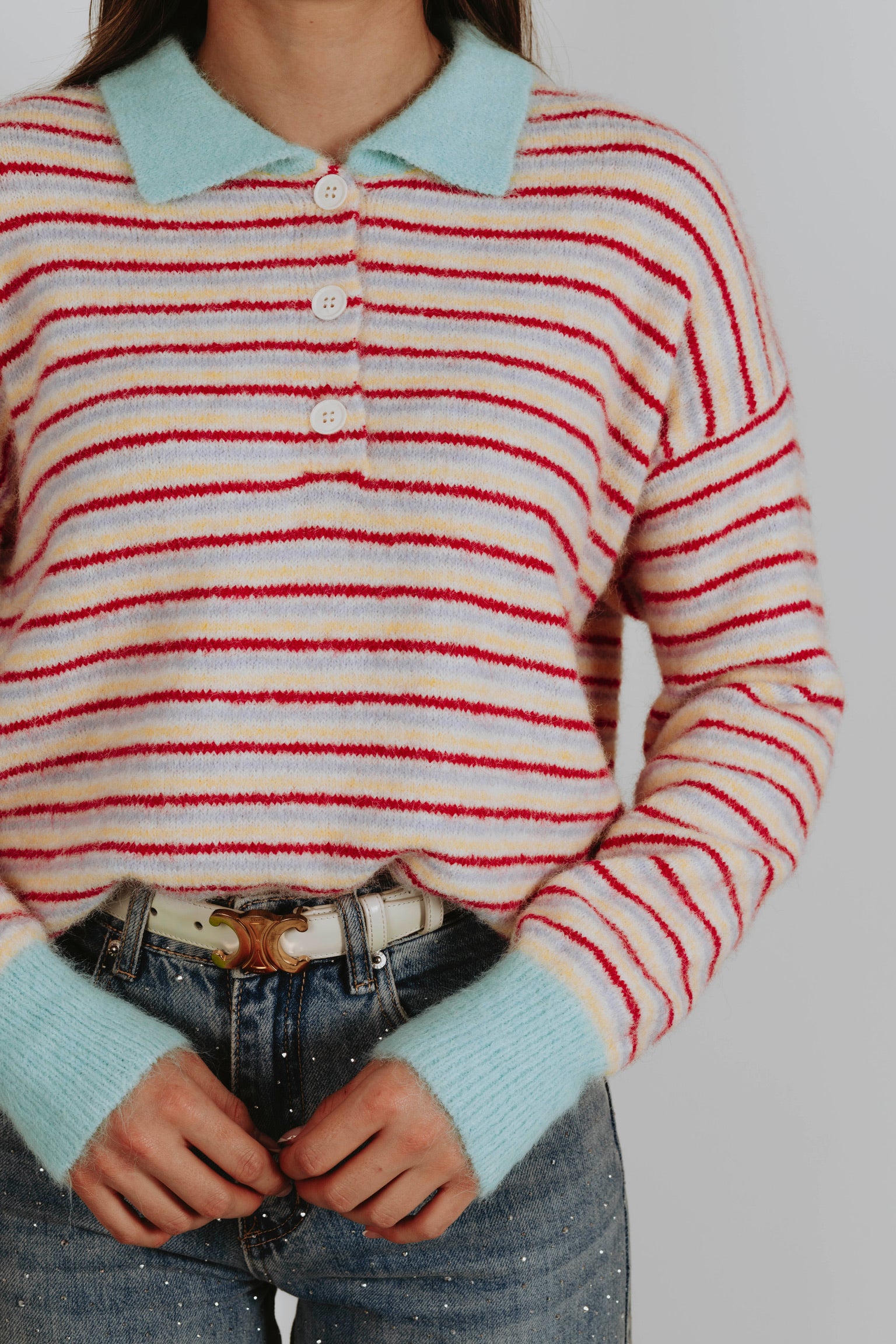 BARBARA MULTICOLOR STRIPED POLO KNIT SWEATER