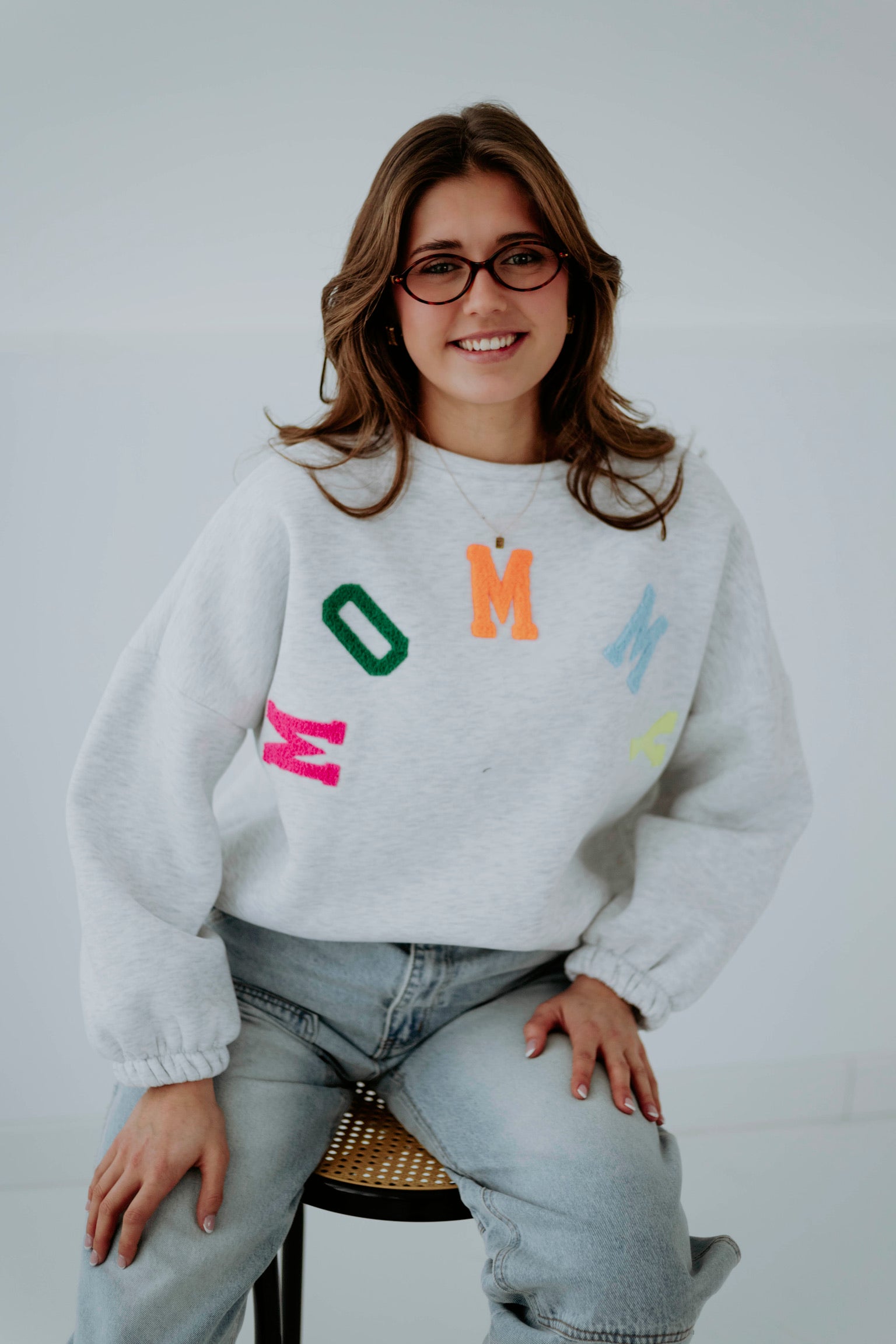 MOMMY GREY SWEATER - MULTICOLOR LETTERS