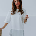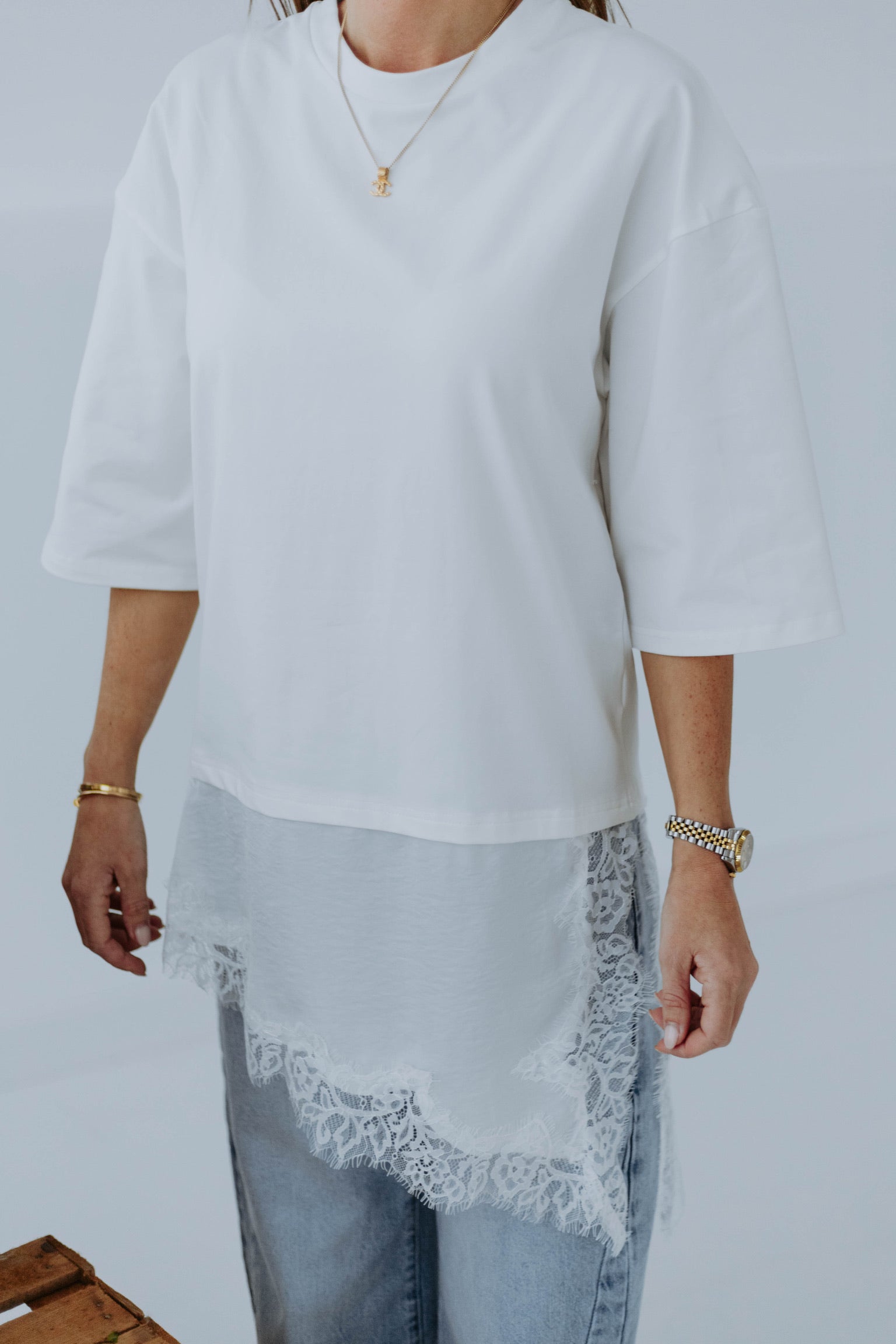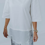 NORA WHITE LONG ASYMMETRIC LACE T-SHIRT