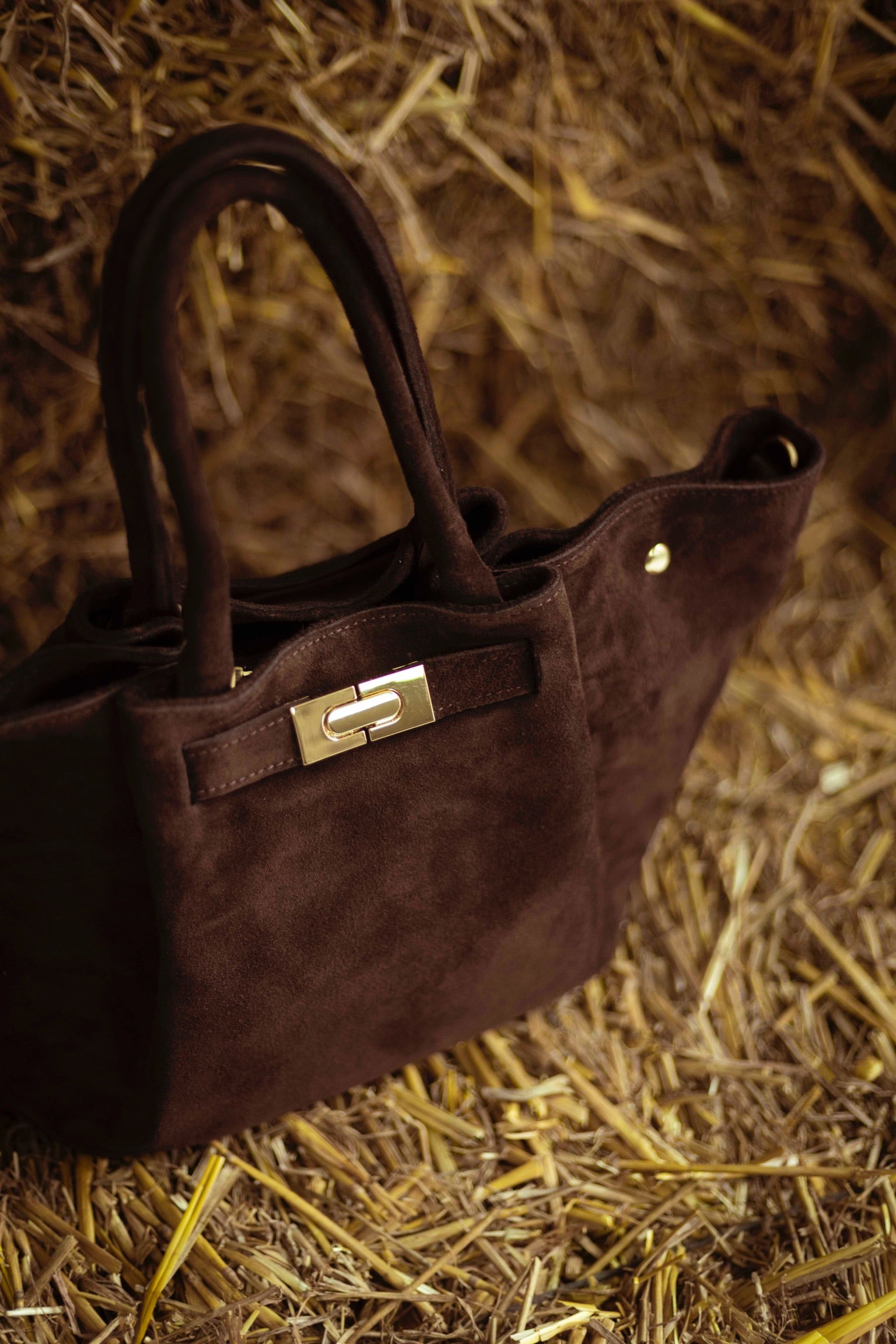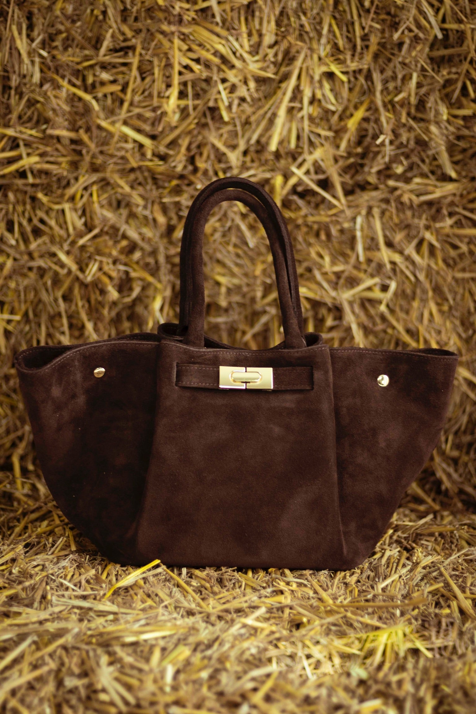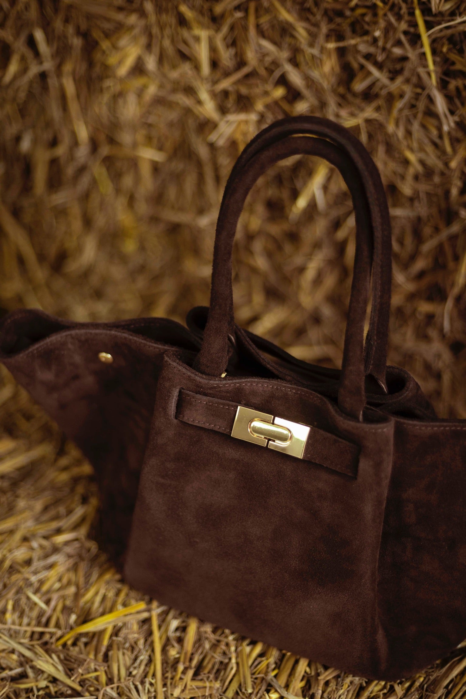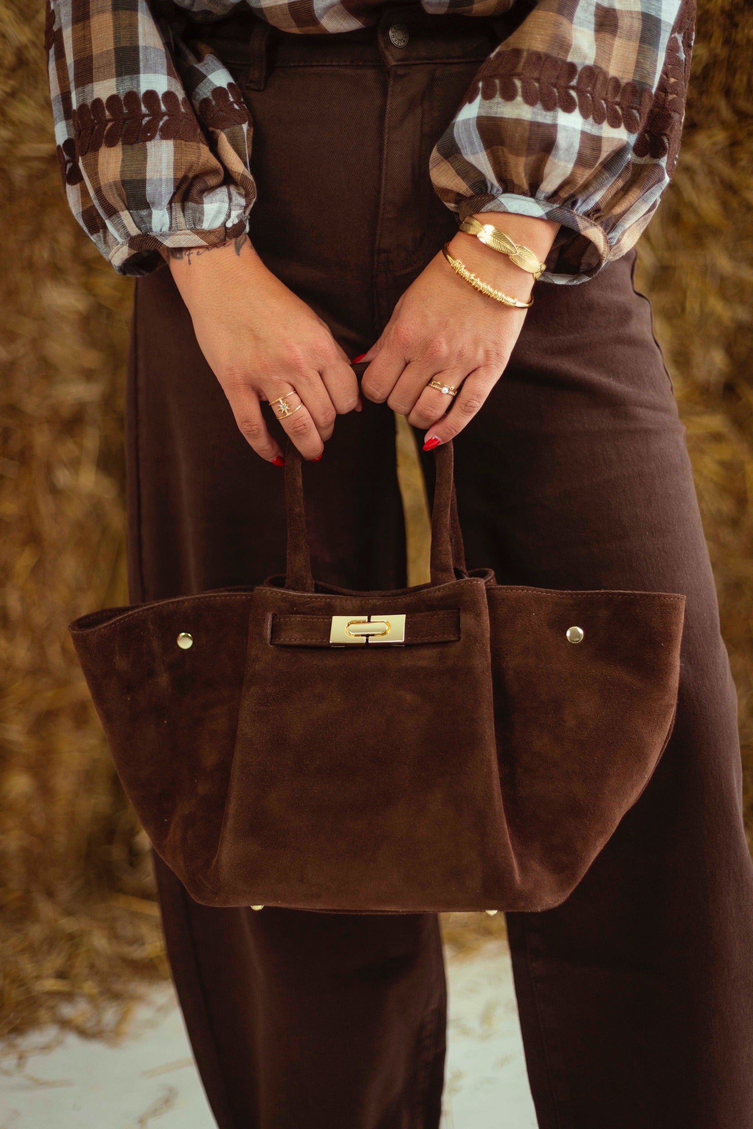 Robuuste handtas van bruin suède die warmte en karakter toevoegt aan elke herfstlook. Handig in gebruik en stijlvol, een echte must-have voor het seizoen.