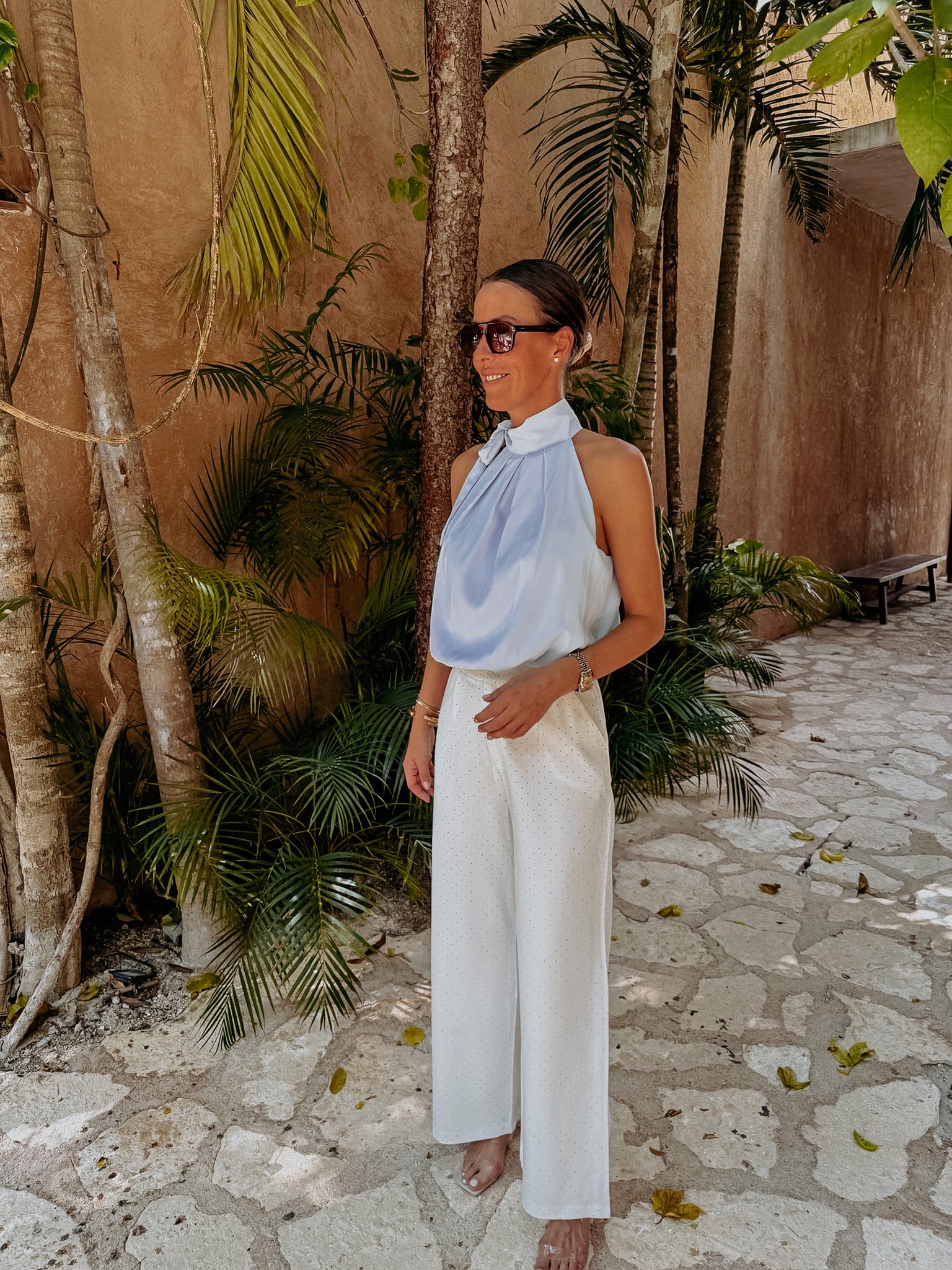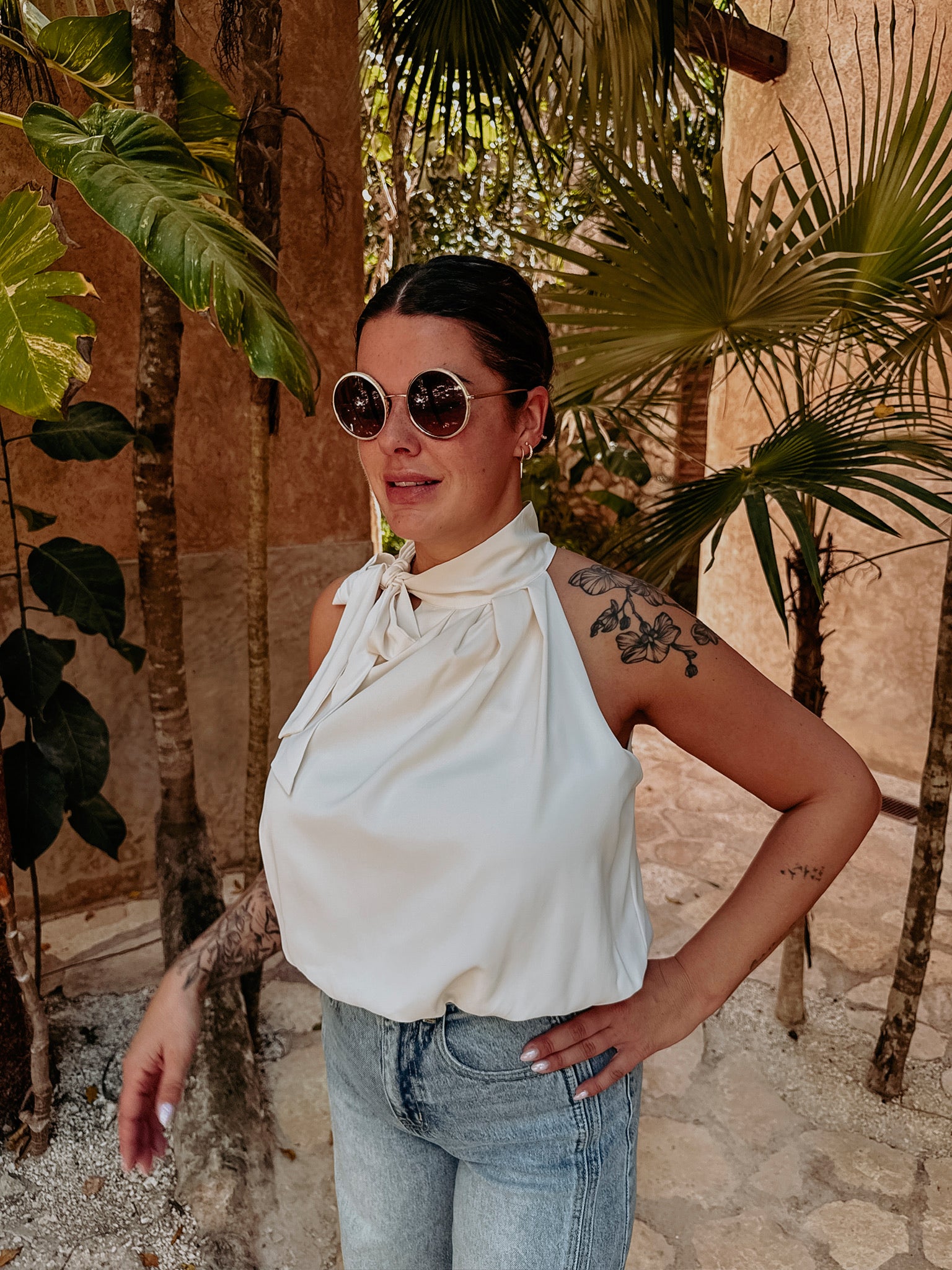 SANTA SHINE BORDEAUX ASYMMETRIC SATIN LACE TOP