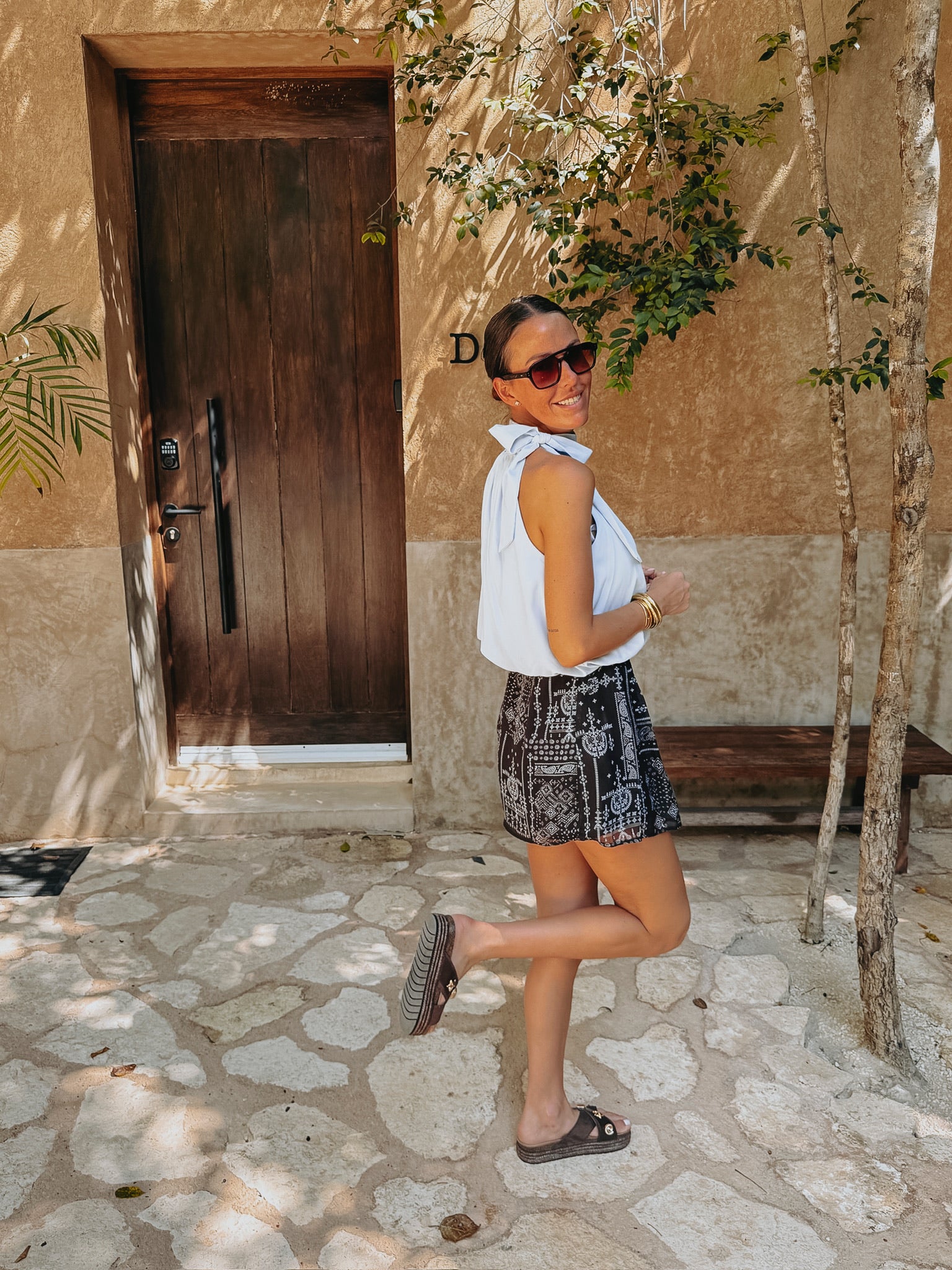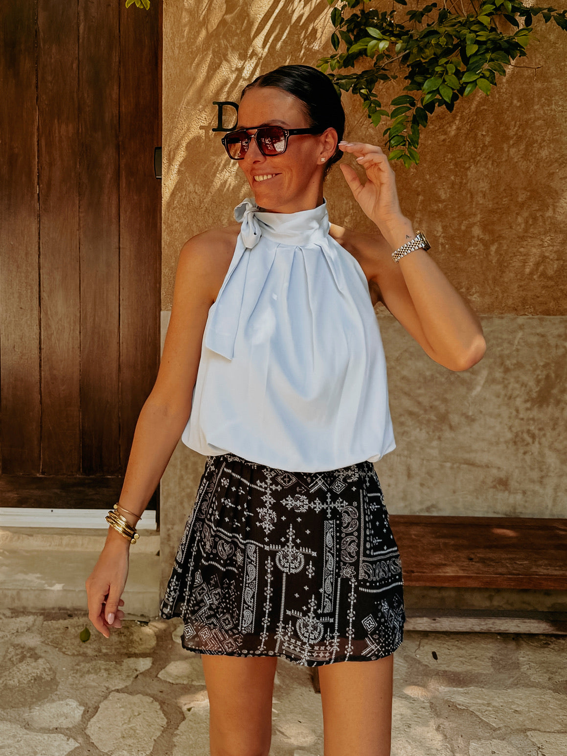 Een zongekuste essential die je elegant om de hals knoopt en je silhouet laat stralen. De zachte pasteltinten doen denken aan een Mexicaanse zonsopgang, warm, licht en gemaakt voor eindeloze vakantiedagen.