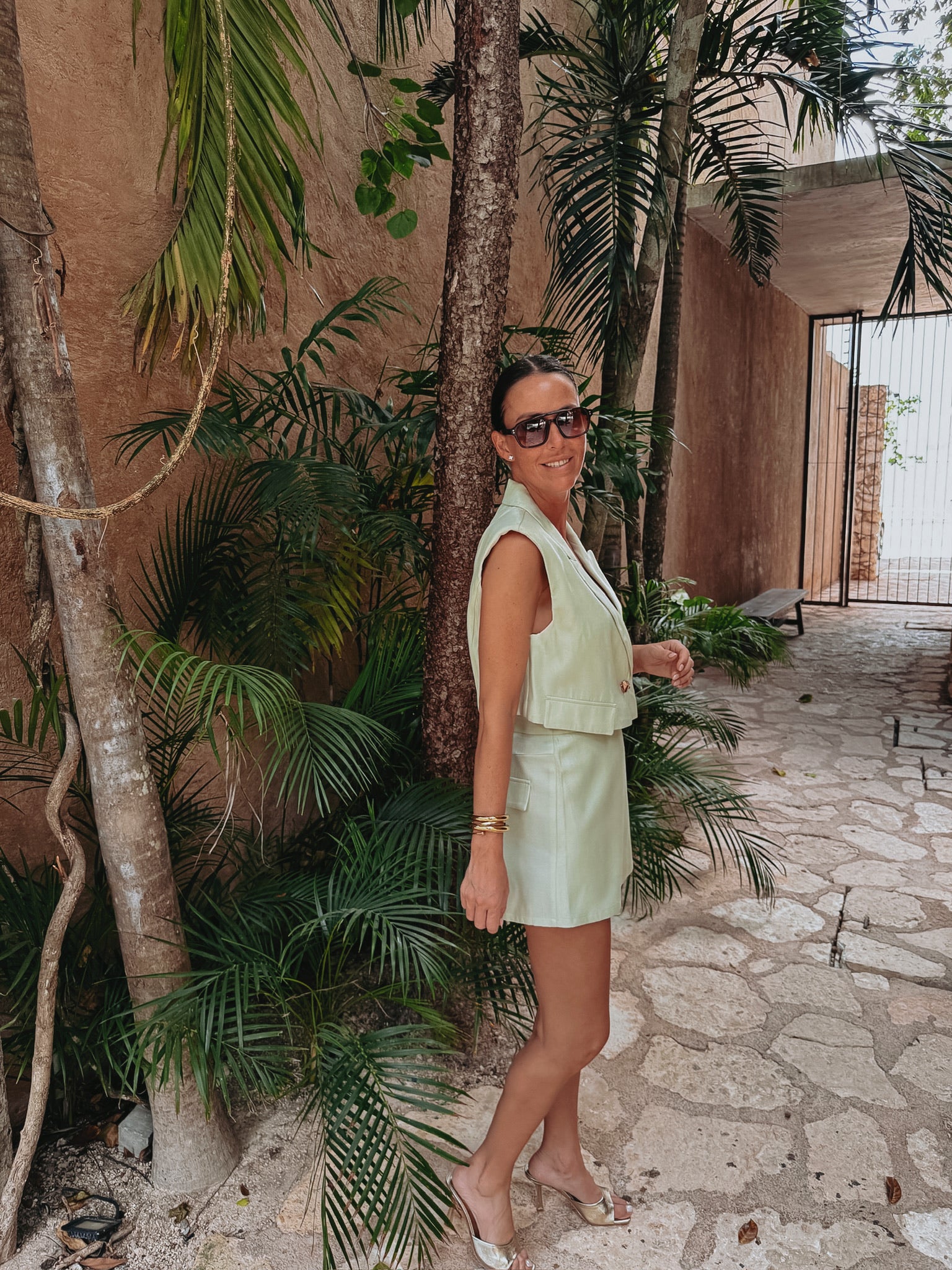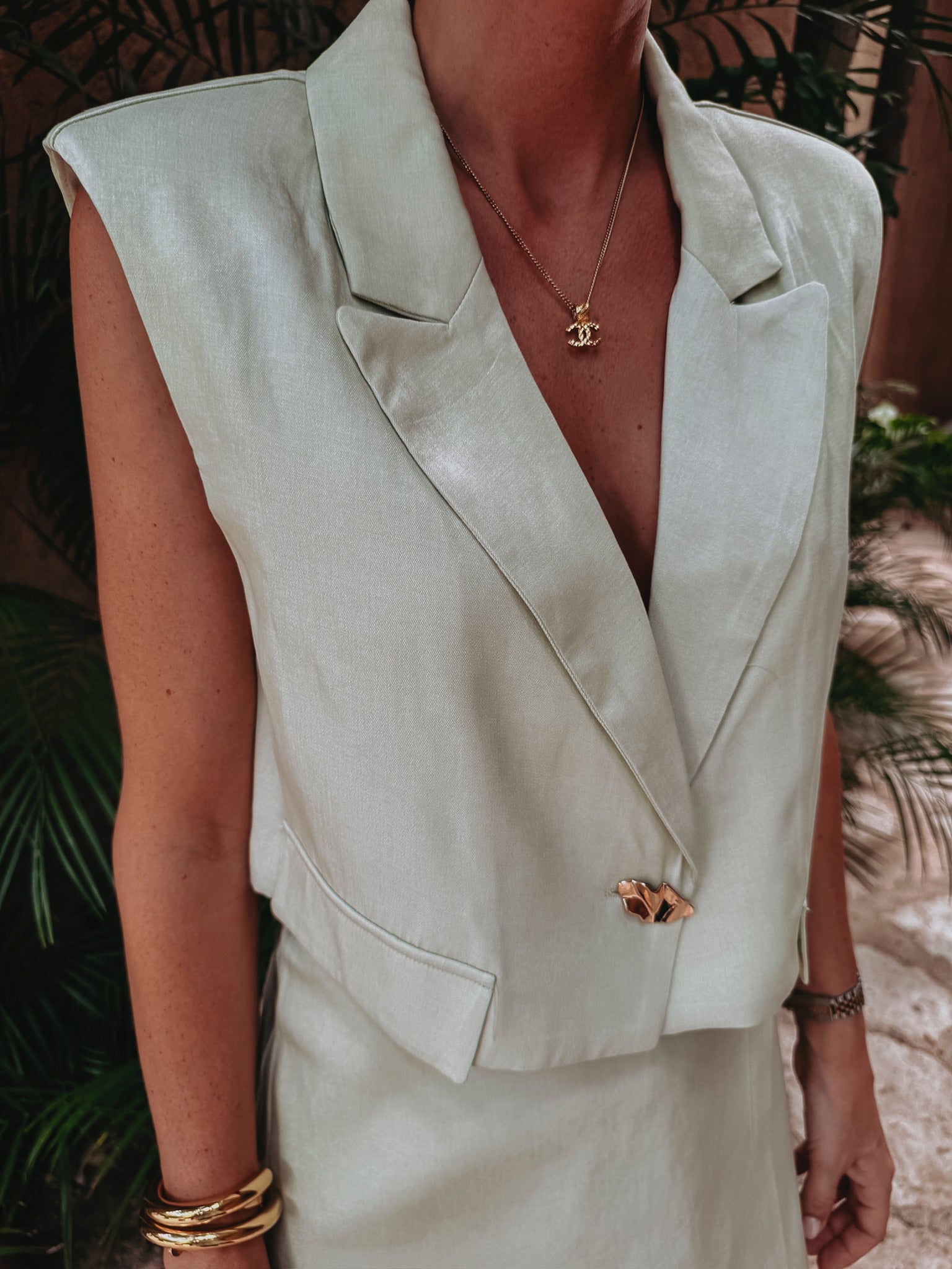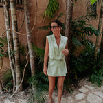 Een cropped blazer met een frisse, moderne uitstraling die elke outfit meteen een stijlvolle upgrade geeft. Perfect voor zonnige dagen waarop je nét dat beetje extra flair wilt. Combineer met de bijpassende skort voor een complete set of draag hem casual met een jeansshort of broek.