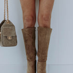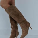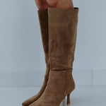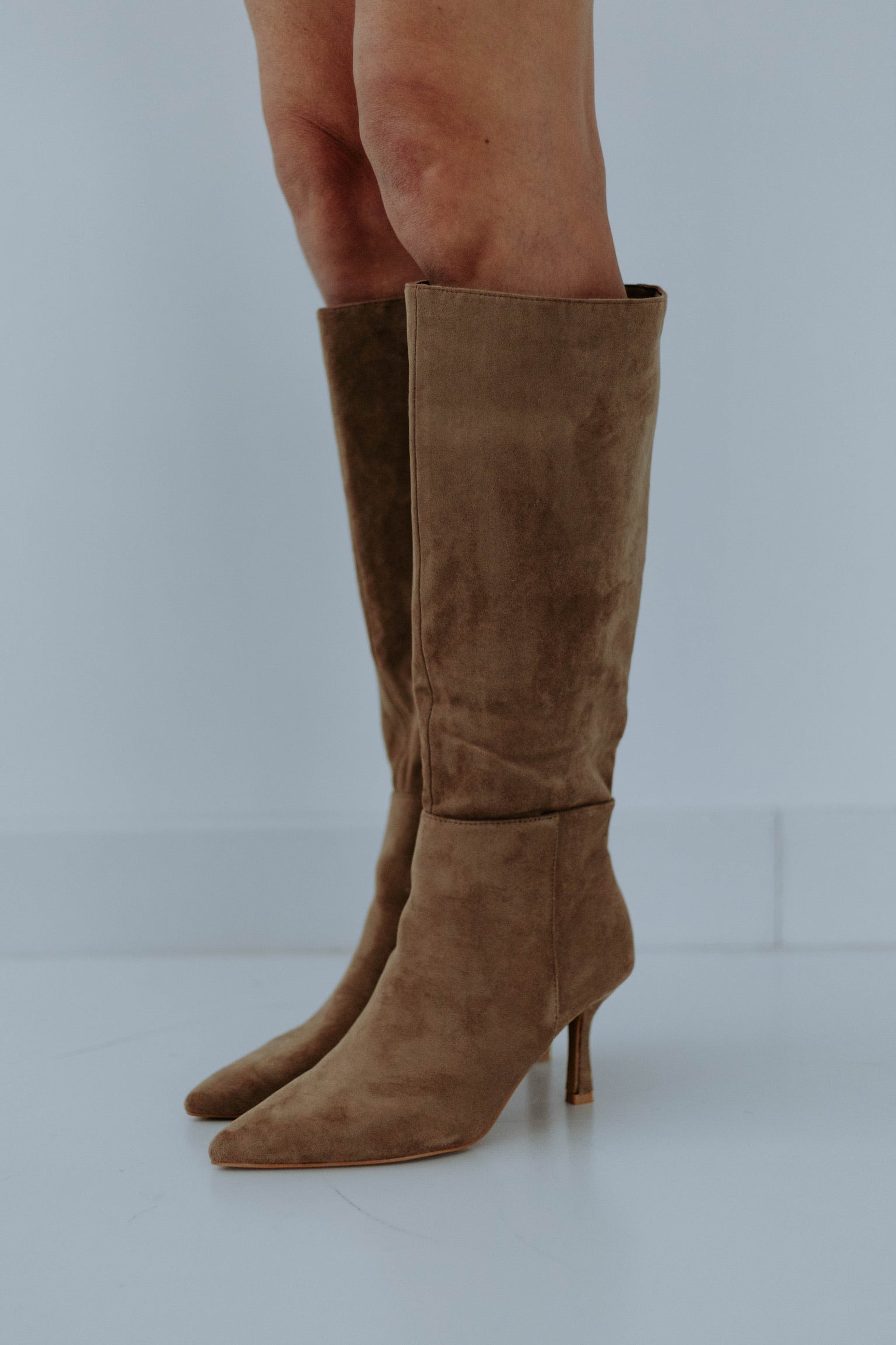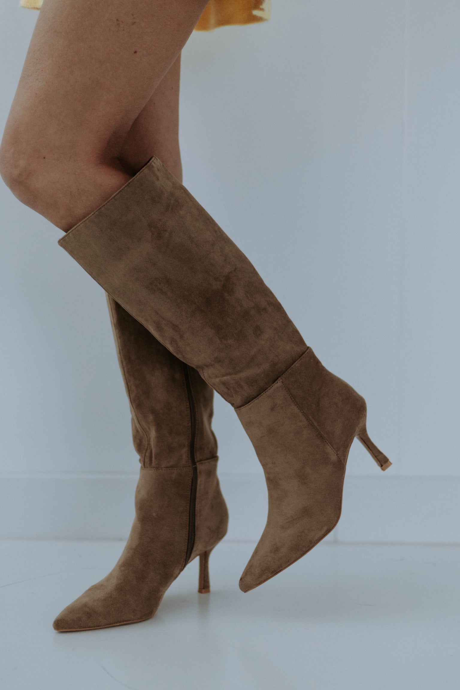 Prachtige suède laarzen met een fijne hak, die elke lenteoutfit tot leven brengt.