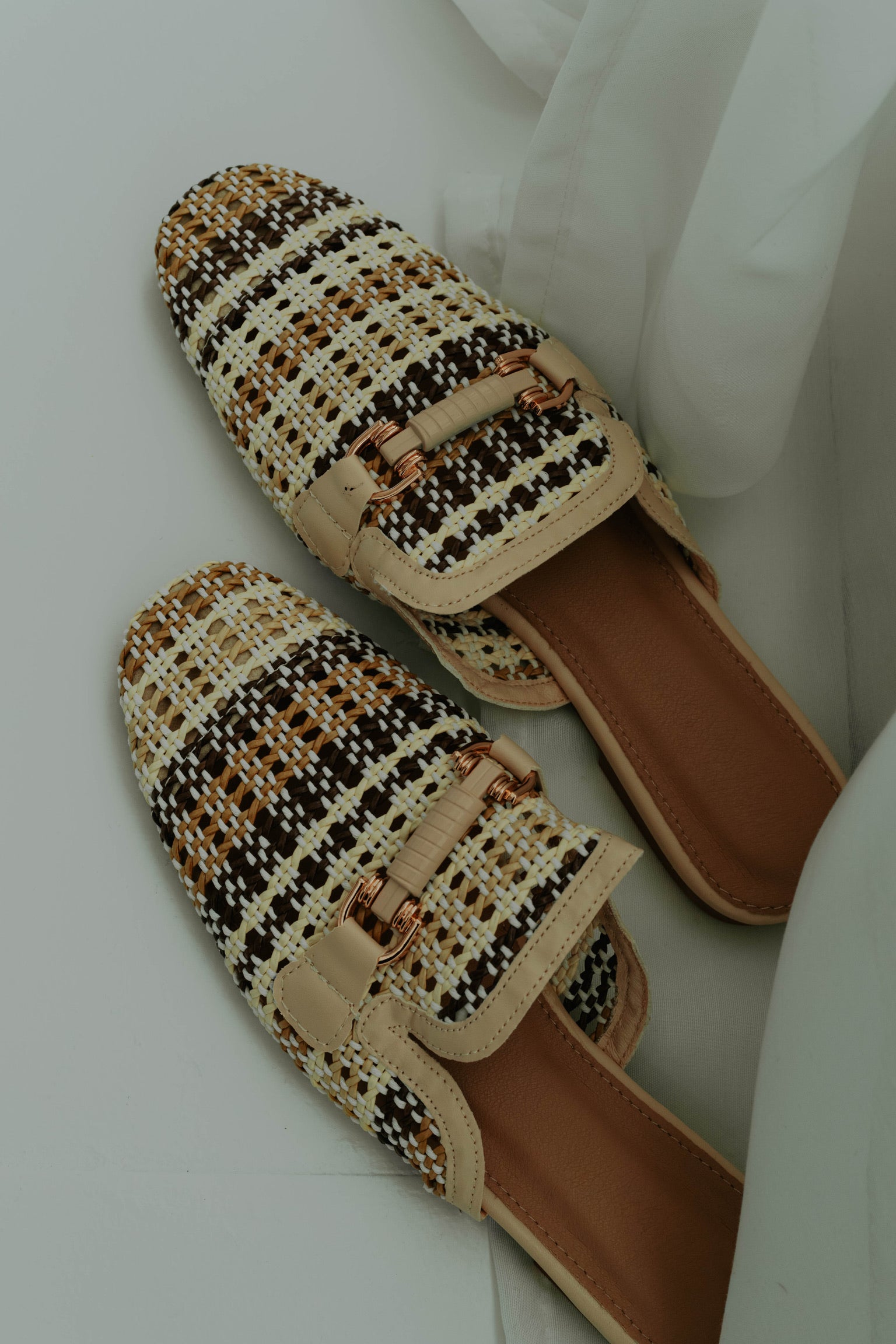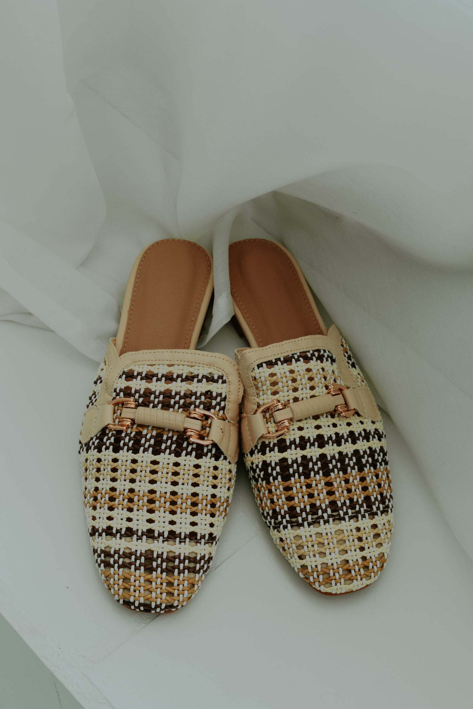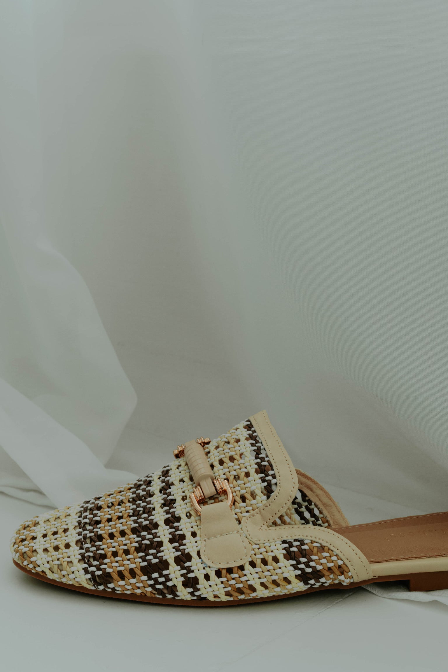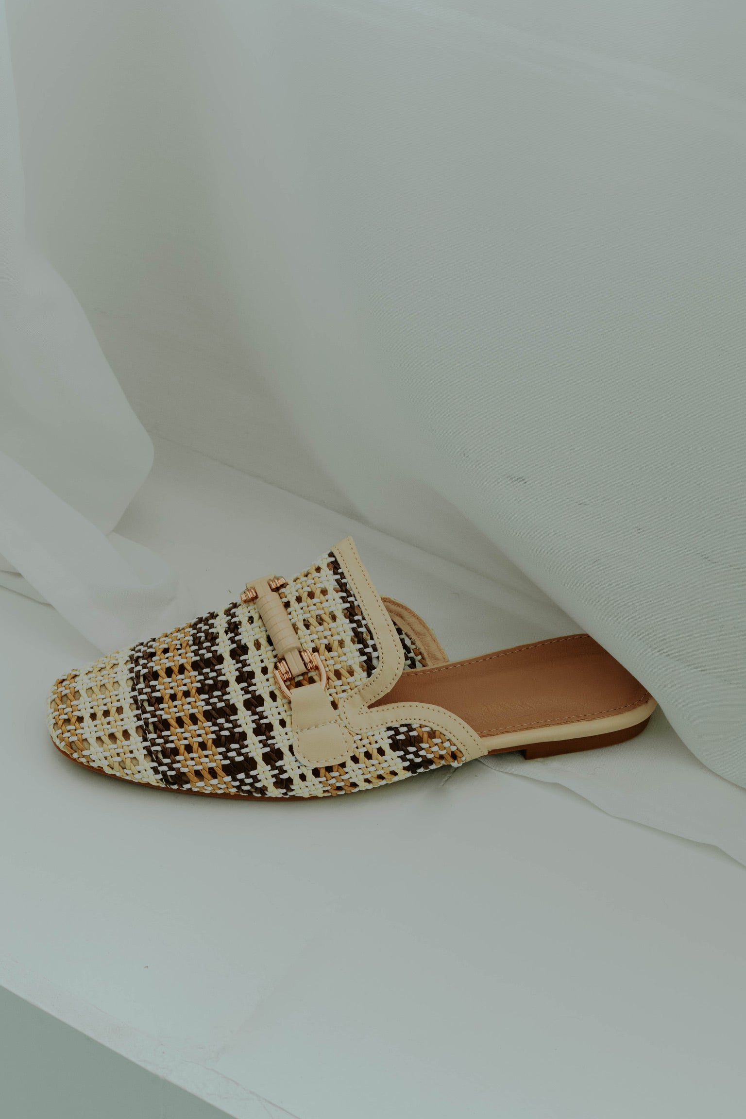 De warme beigetint en natuurlijke raffiastof geven een zachte, zomerse uitstraling. Het klassieke loafer-model combineert comfort met een casual-chique vibe. Perfect om een lente- of zomerse outfit moeiteloos stijlvol af te maken.