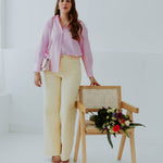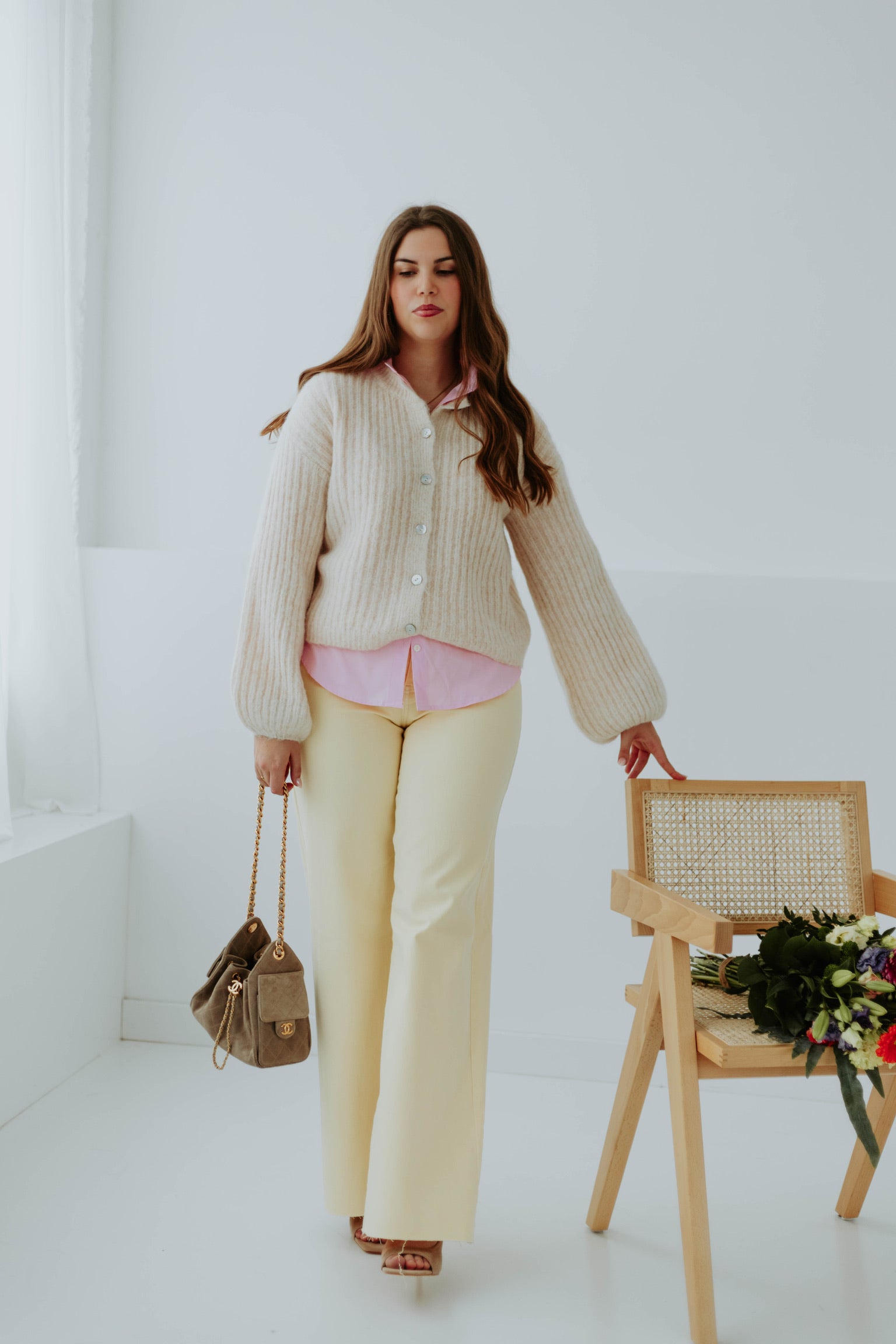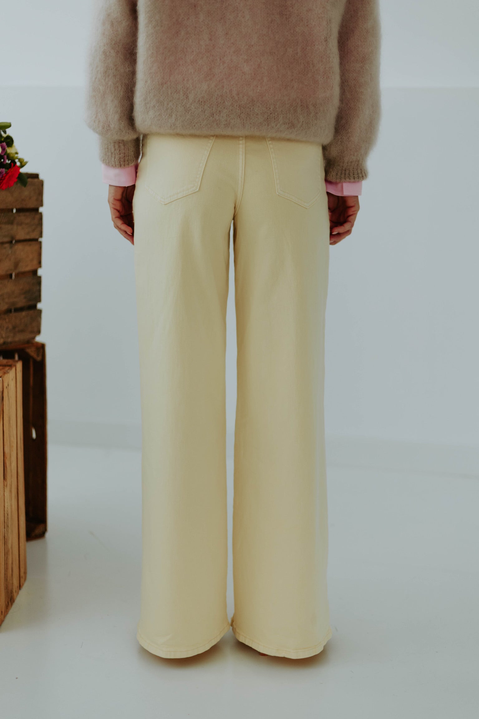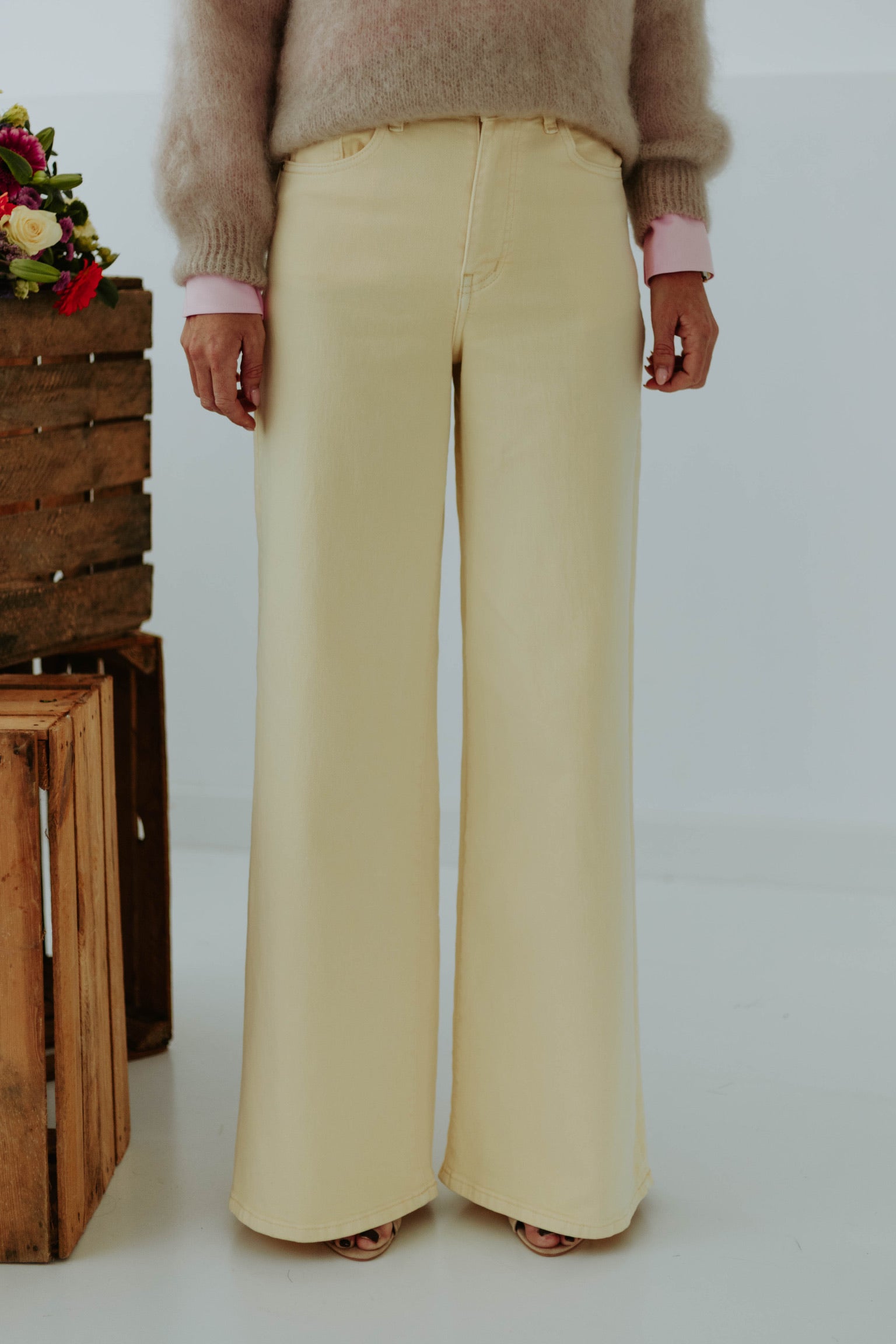 De lichte gele tint geeft een frisse en zachte lentestemming. Het wide leg model valt soepel en zorgt voor een relaxte maar stijlvolle uitstraling. Ideaal om je outfit een zonnige en luchtige touch te geven.