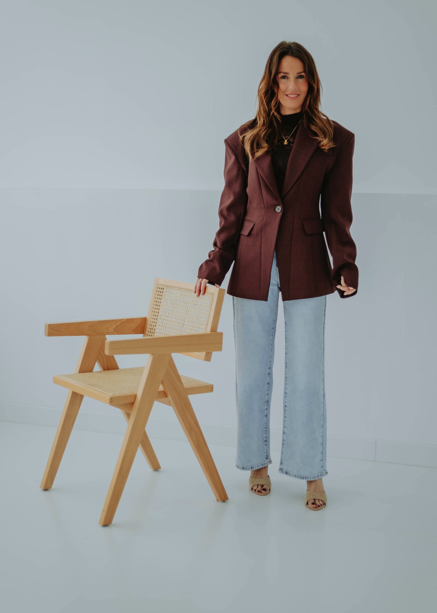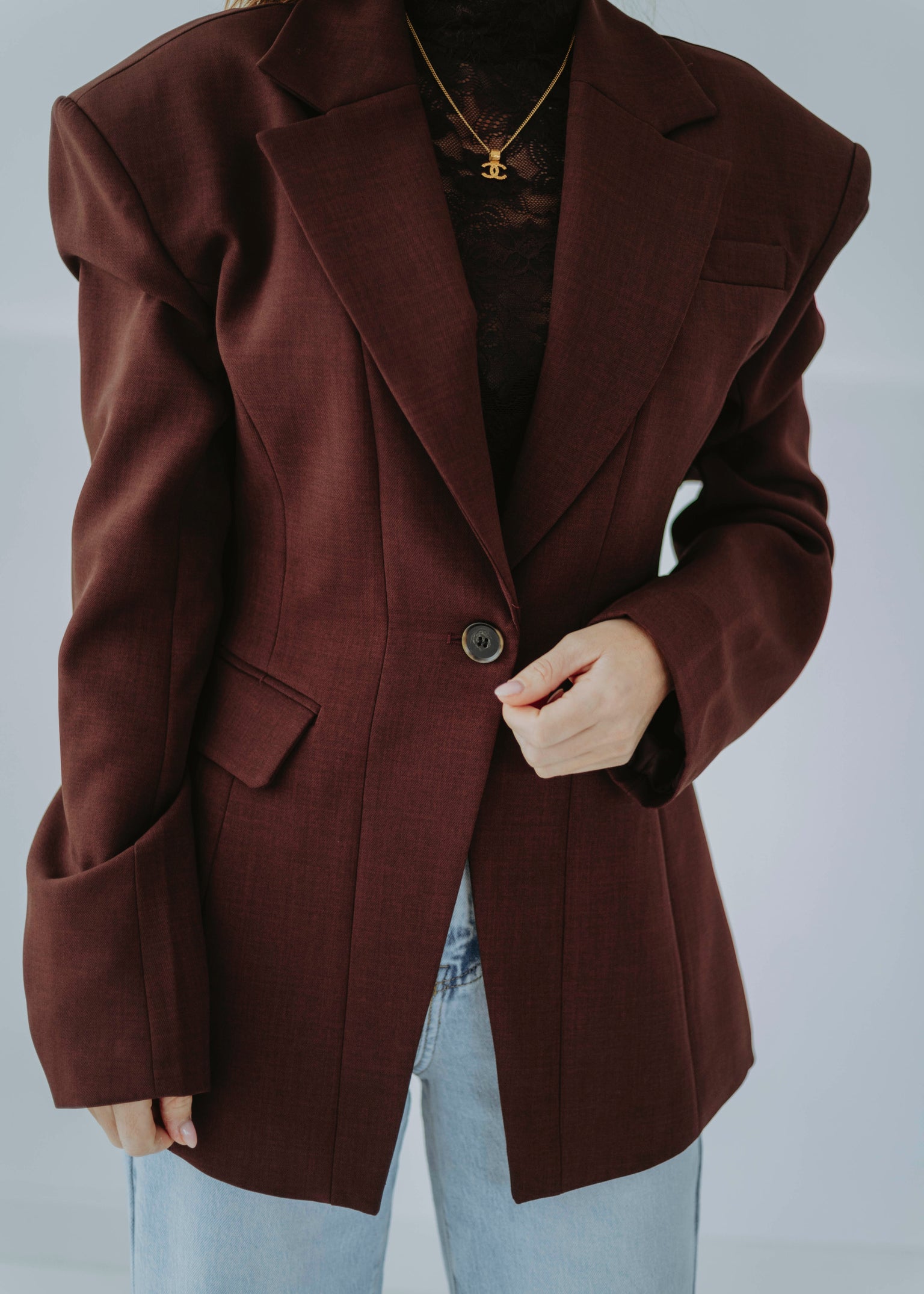 ANOUSHKA'S GO-TO DARK BURGUNDY BLAZER
