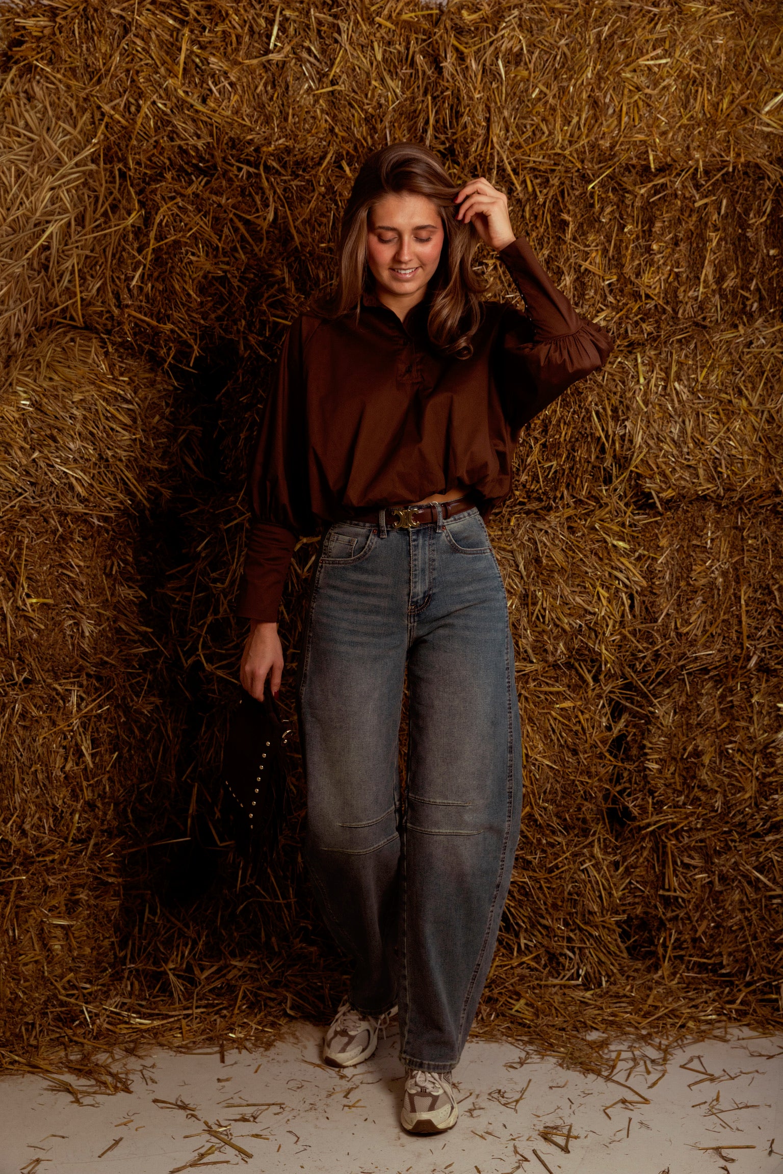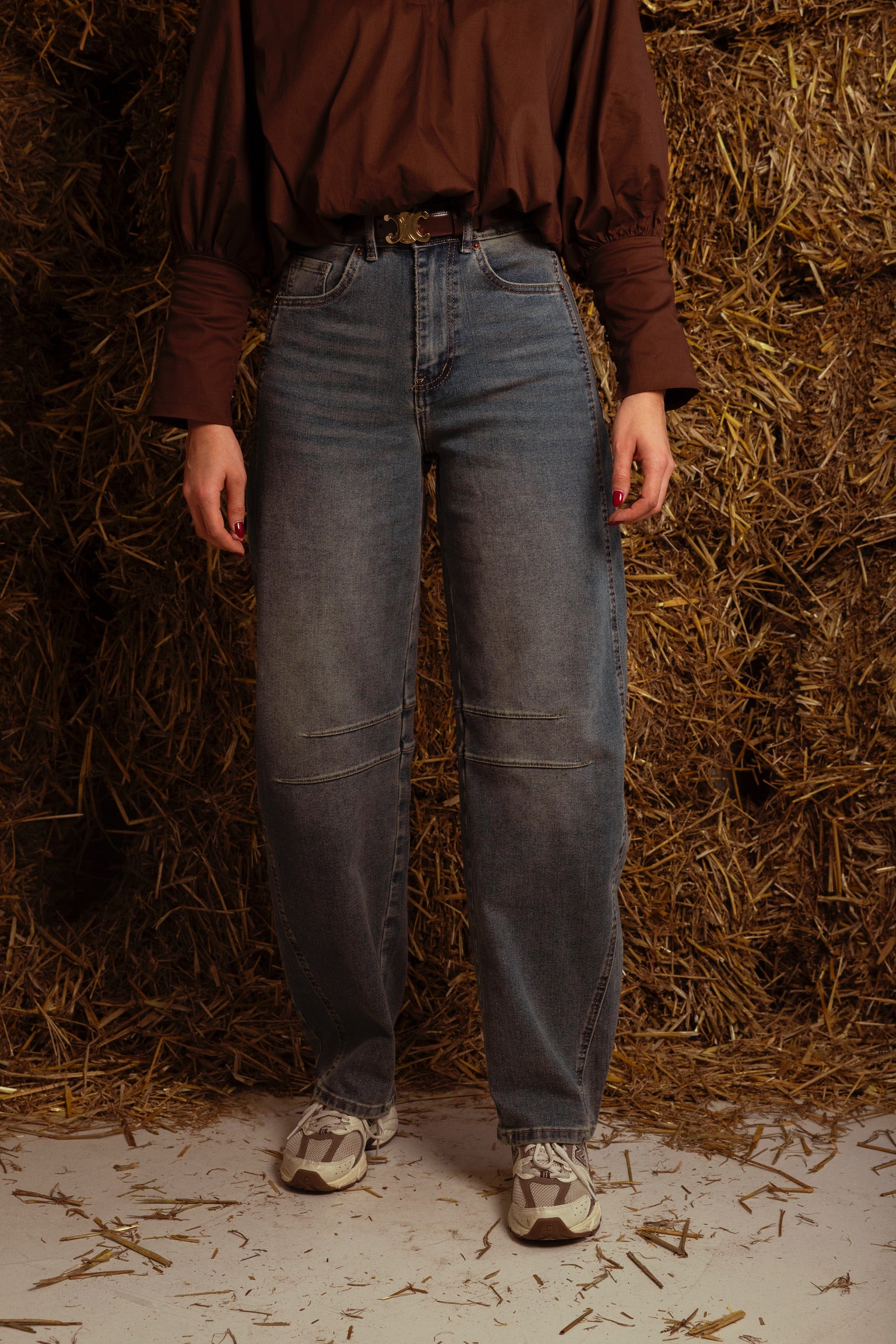 Een eigentijdse jeans met een ronde, barrel fit die volume en karakter toevoegt aan je herfstoutfits. De heldere blauwtint contrasteert mooi met warme knitwear en aardetinten. Ideaal voor wie comfort zoekt met een modieuze edge.