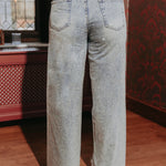 LIGHT BLUE RHINESTONE WIDE LEG JEANS A3022