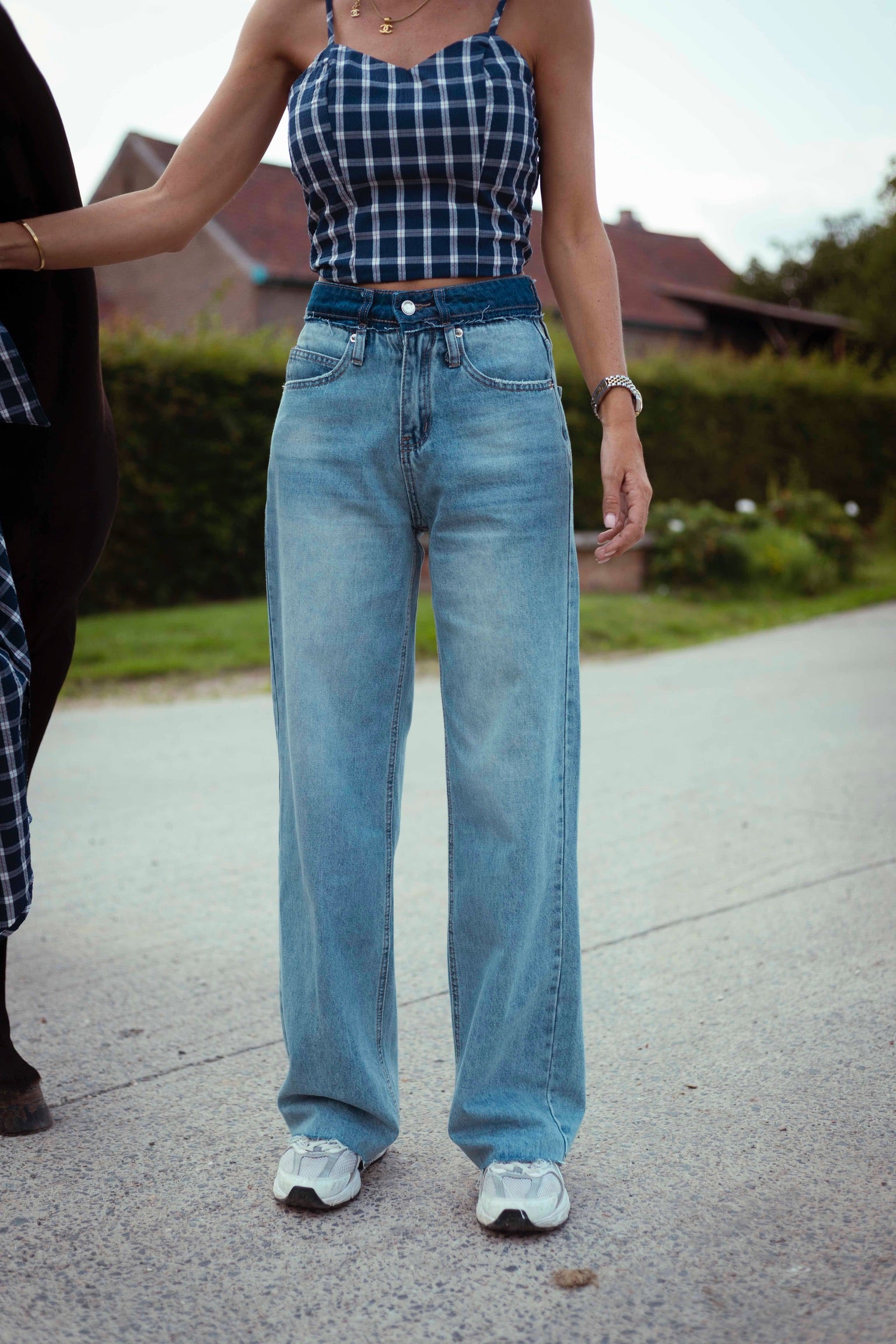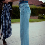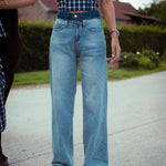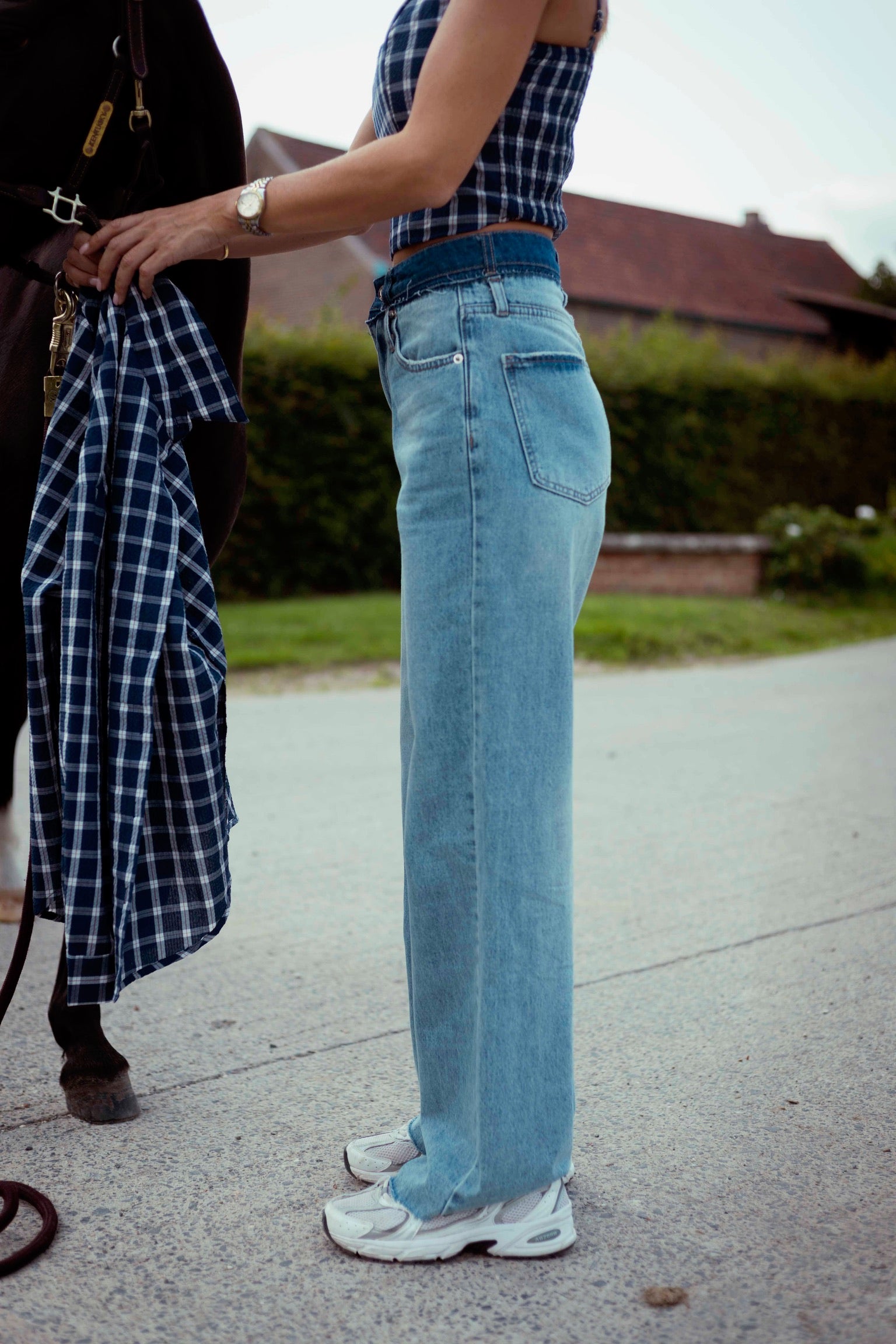 Deze wide leg jeans heeft een bijzondere afwerking aan de taille, waardoor hij meteen in het oog springt. Het comfortabele model en de flatterende snit maken hem ideaal voor nonchalante, maar stijlvolle herfstoutfits.