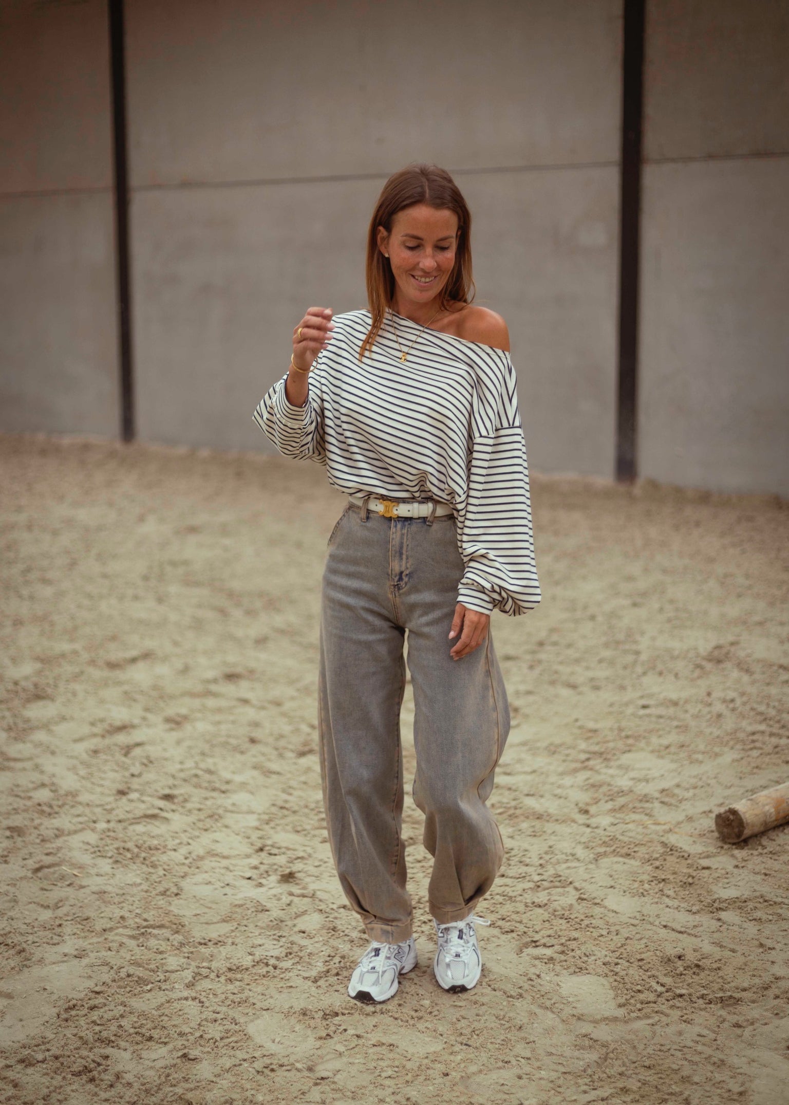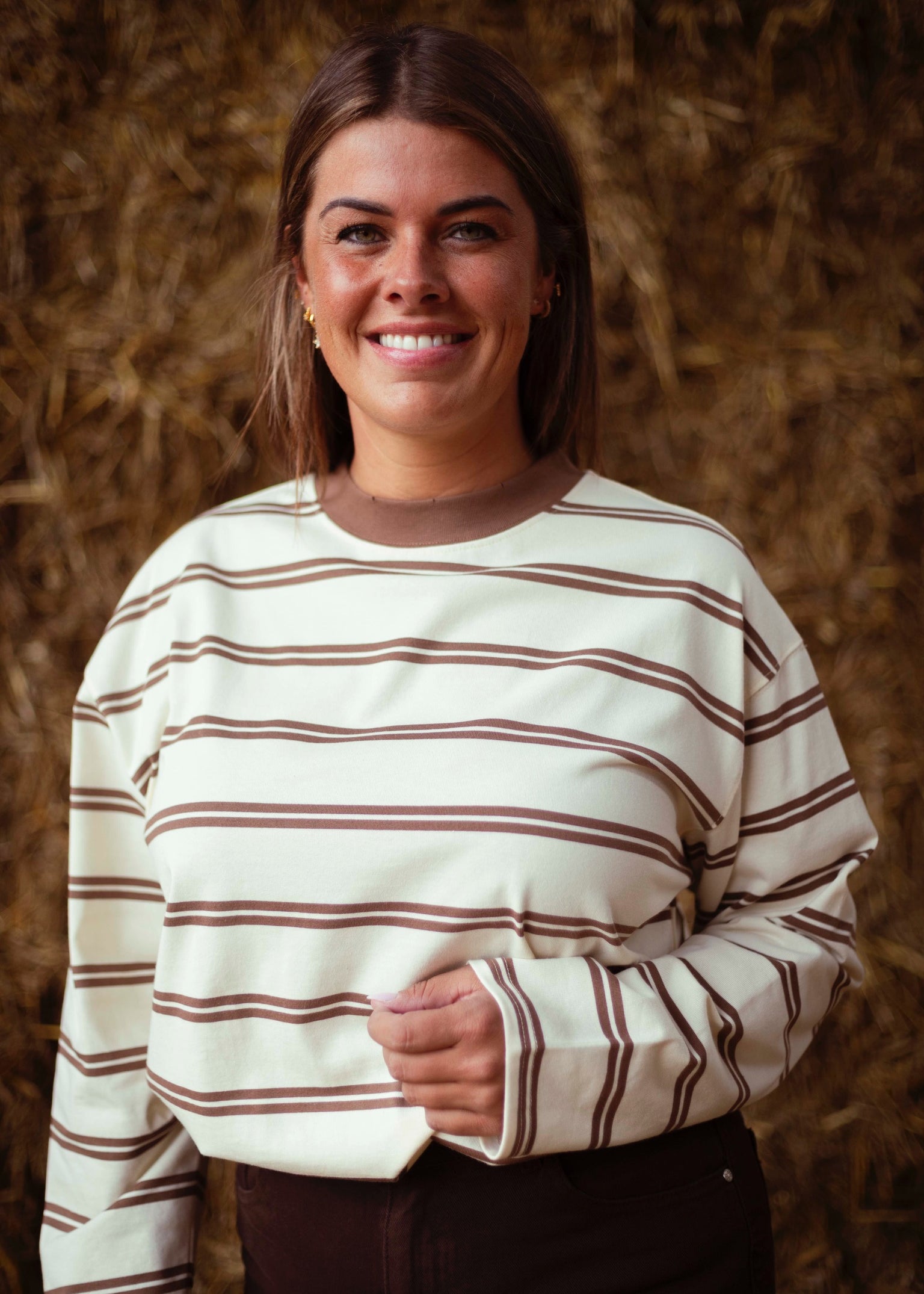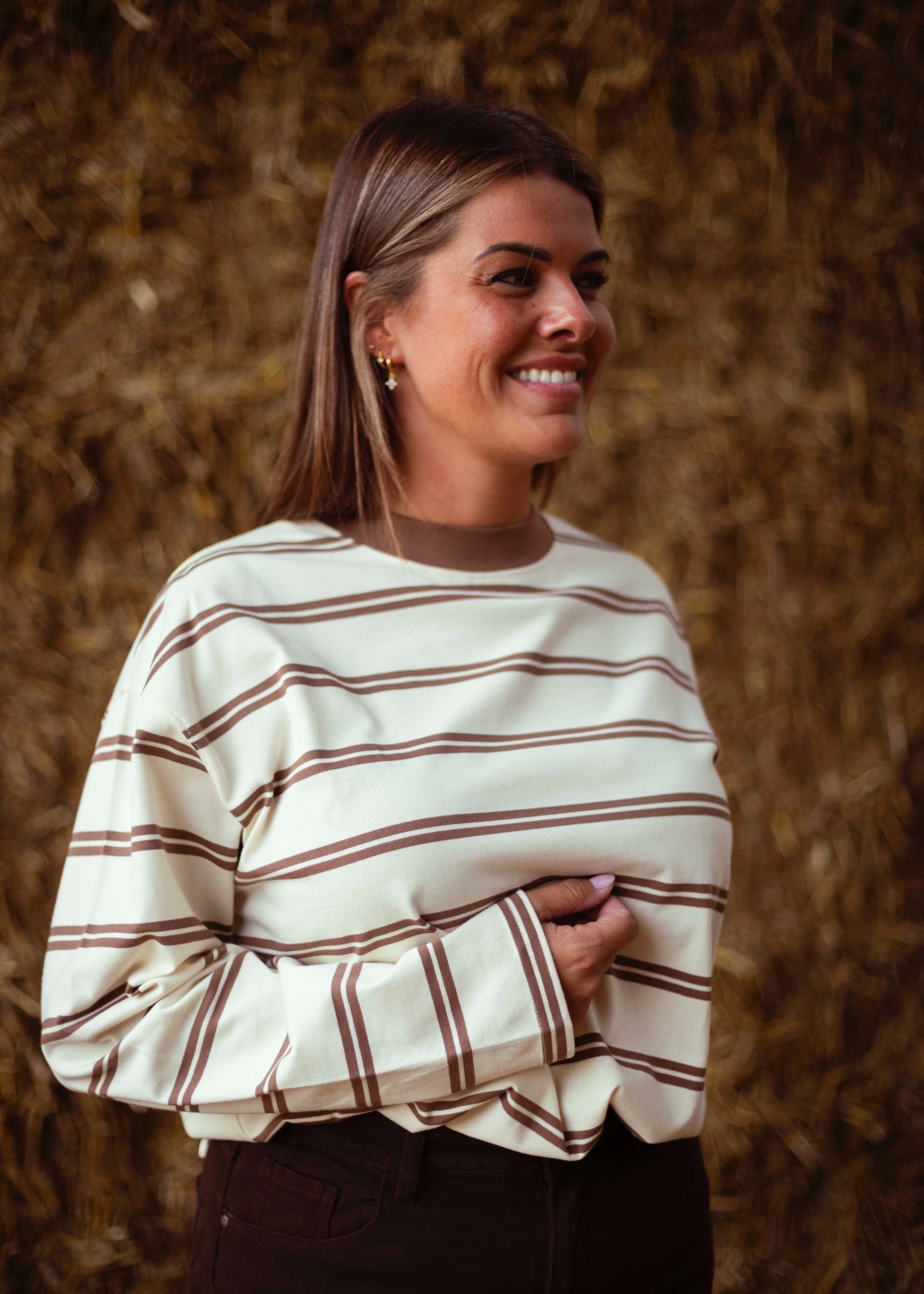 SELAH ECRU STRIPED LONGSLEEVE SHIRT