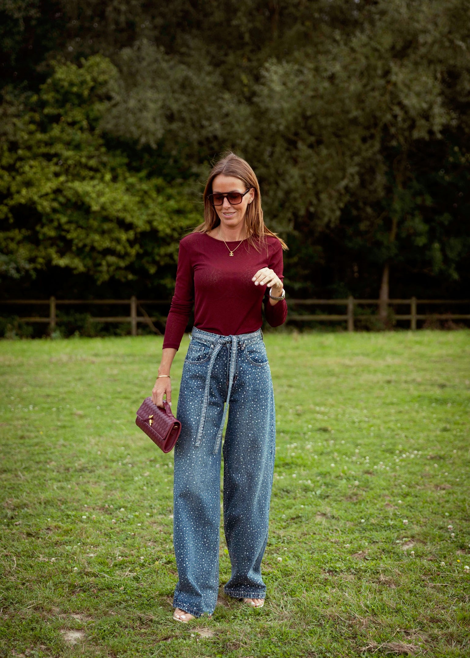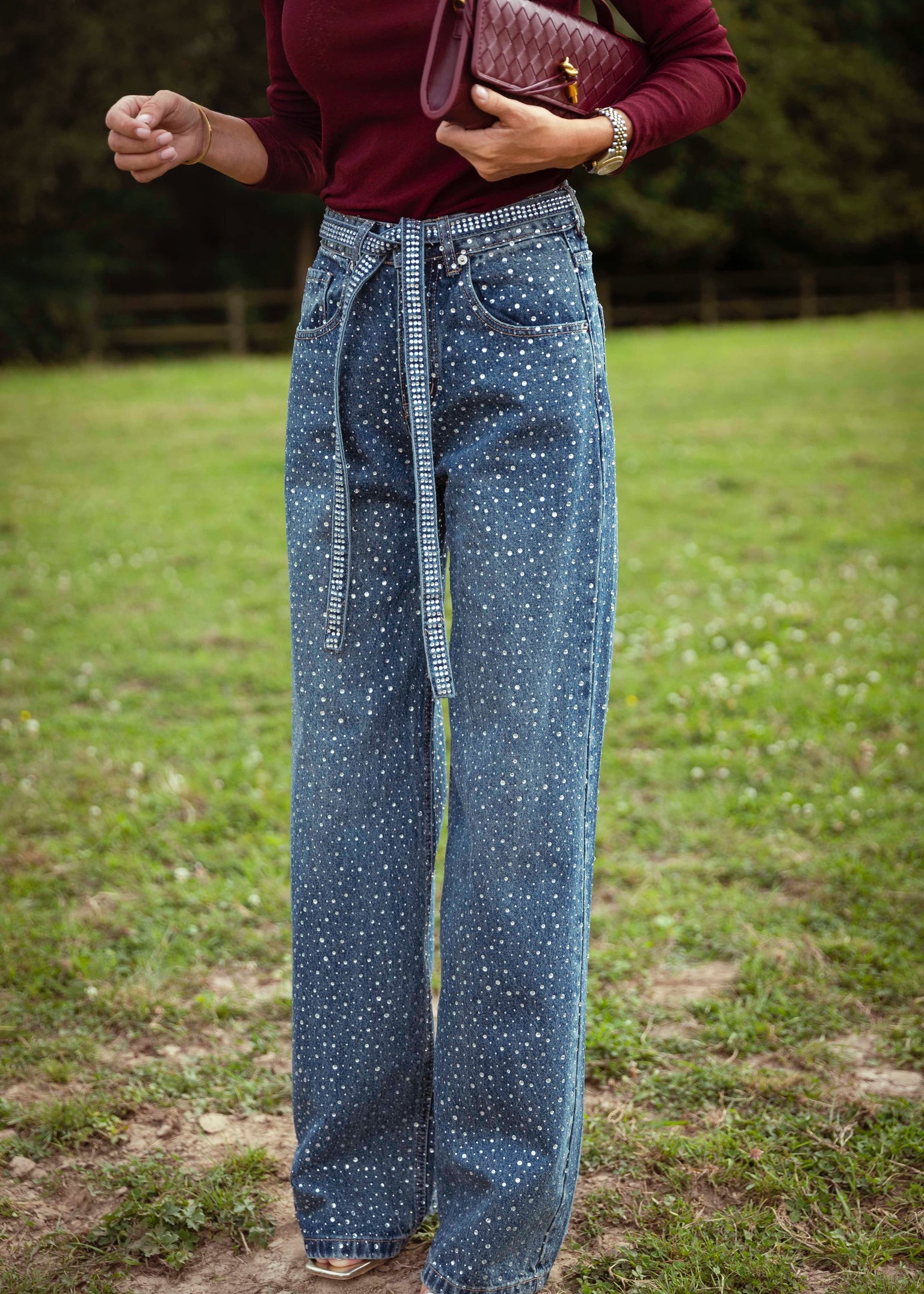 LIGHT BLUE RHINESTONE WIDE LEG JEANS A3022