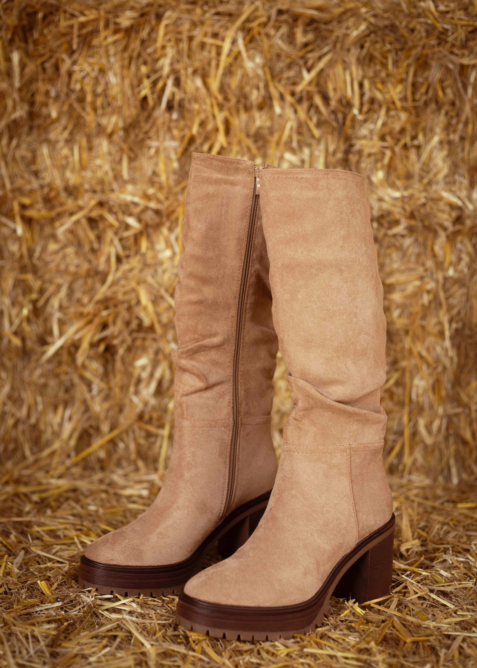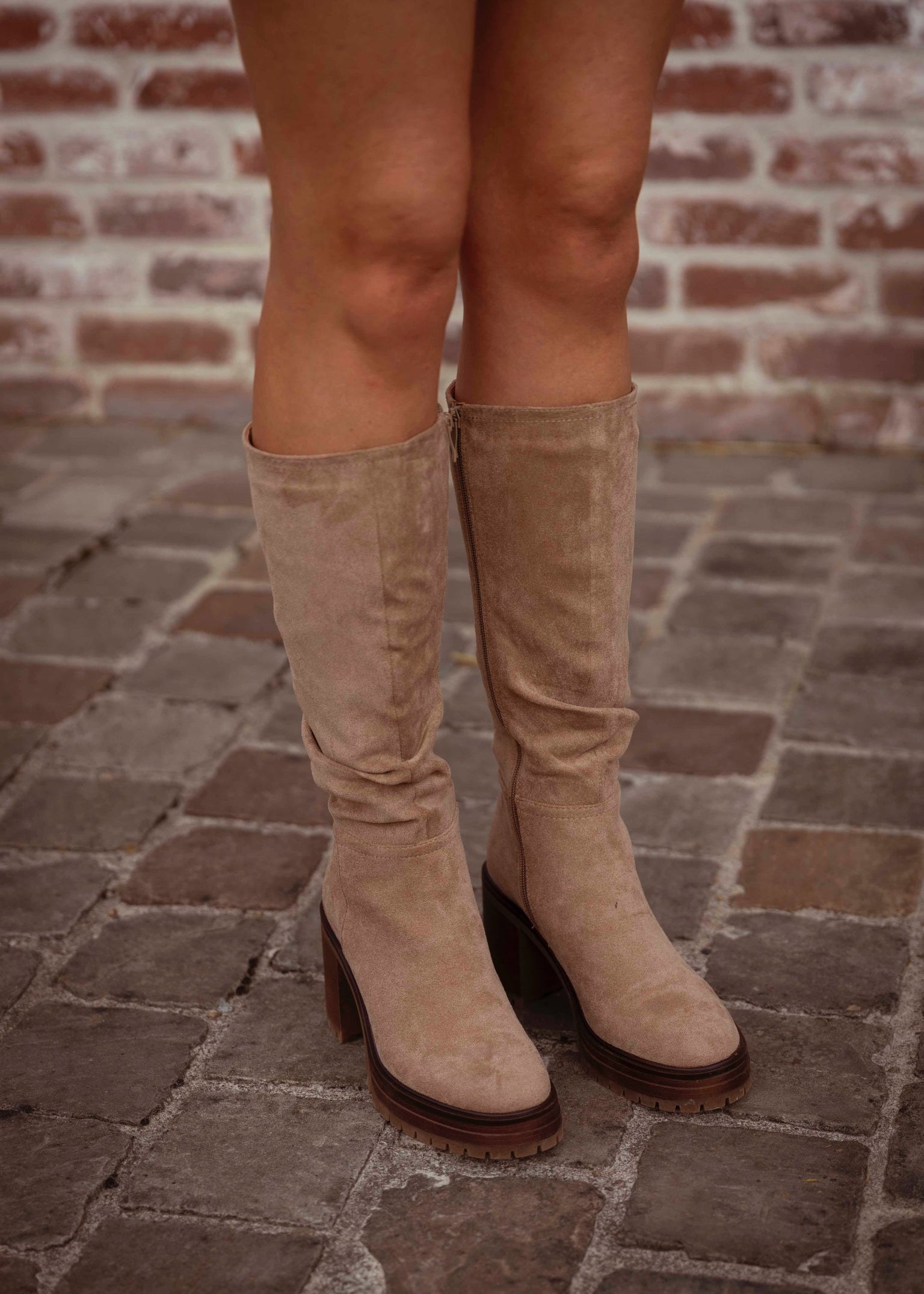 GRACE TAUPE SUEDE HEEL BOOTS