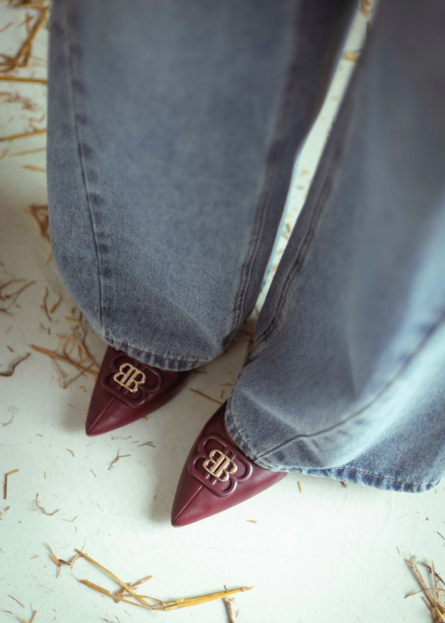 BENNETT POINTED BURGUNDY LEATHER FLATS