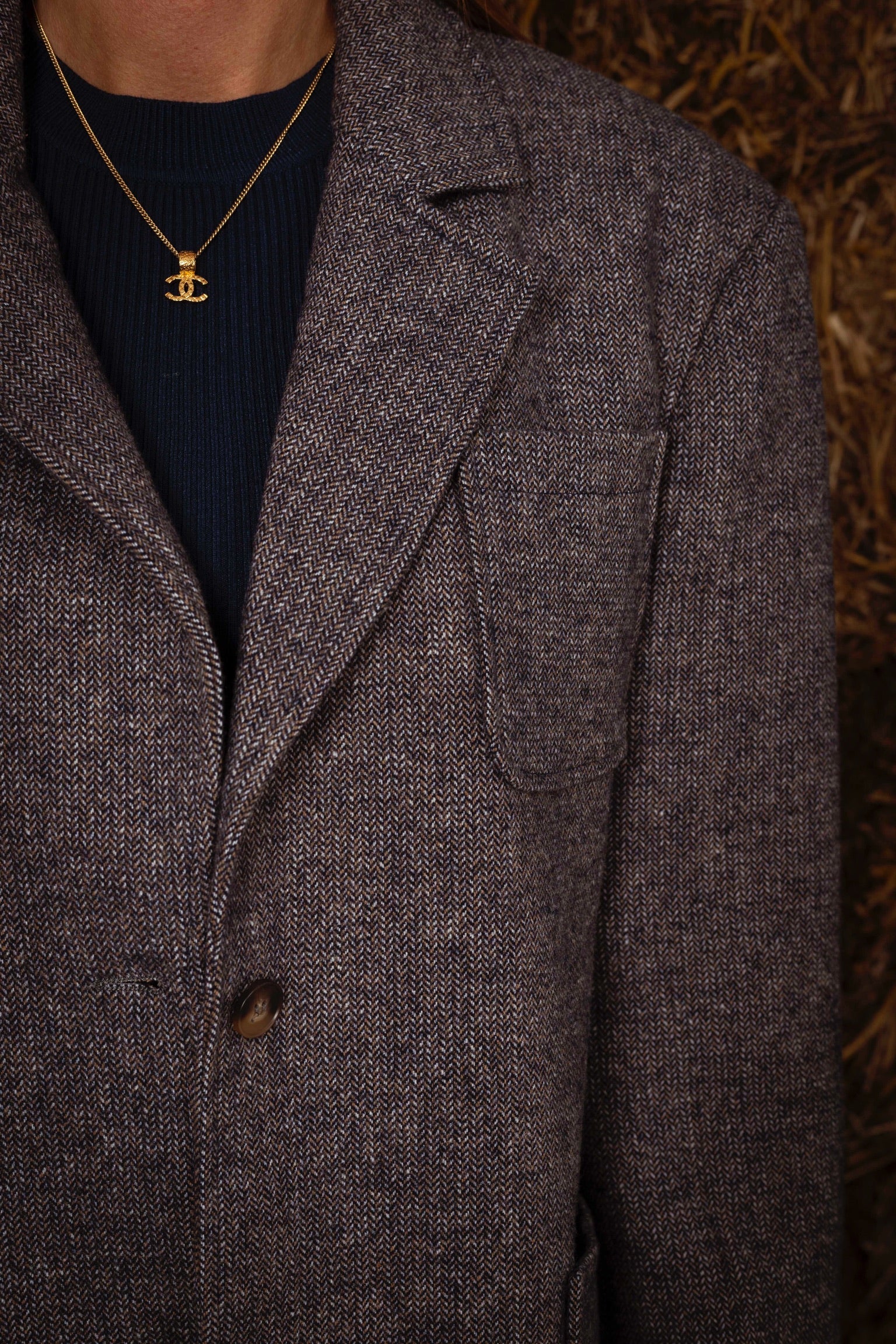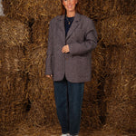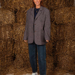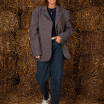 Een oversized blazer in diepblauw met een verfijnde print die pas bij nader inzien opvalt, perfect voor wie houdt van subtiele details. Dit krachtige silhouet voegt moeiteloos structuur toe aan elke herfstoutfit zonder in te boeten aan comfort.
