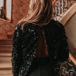 DANCING QUEEN BLACK SEQUIN OPEN BACK BLOUSE – Boetiek Pure Sense