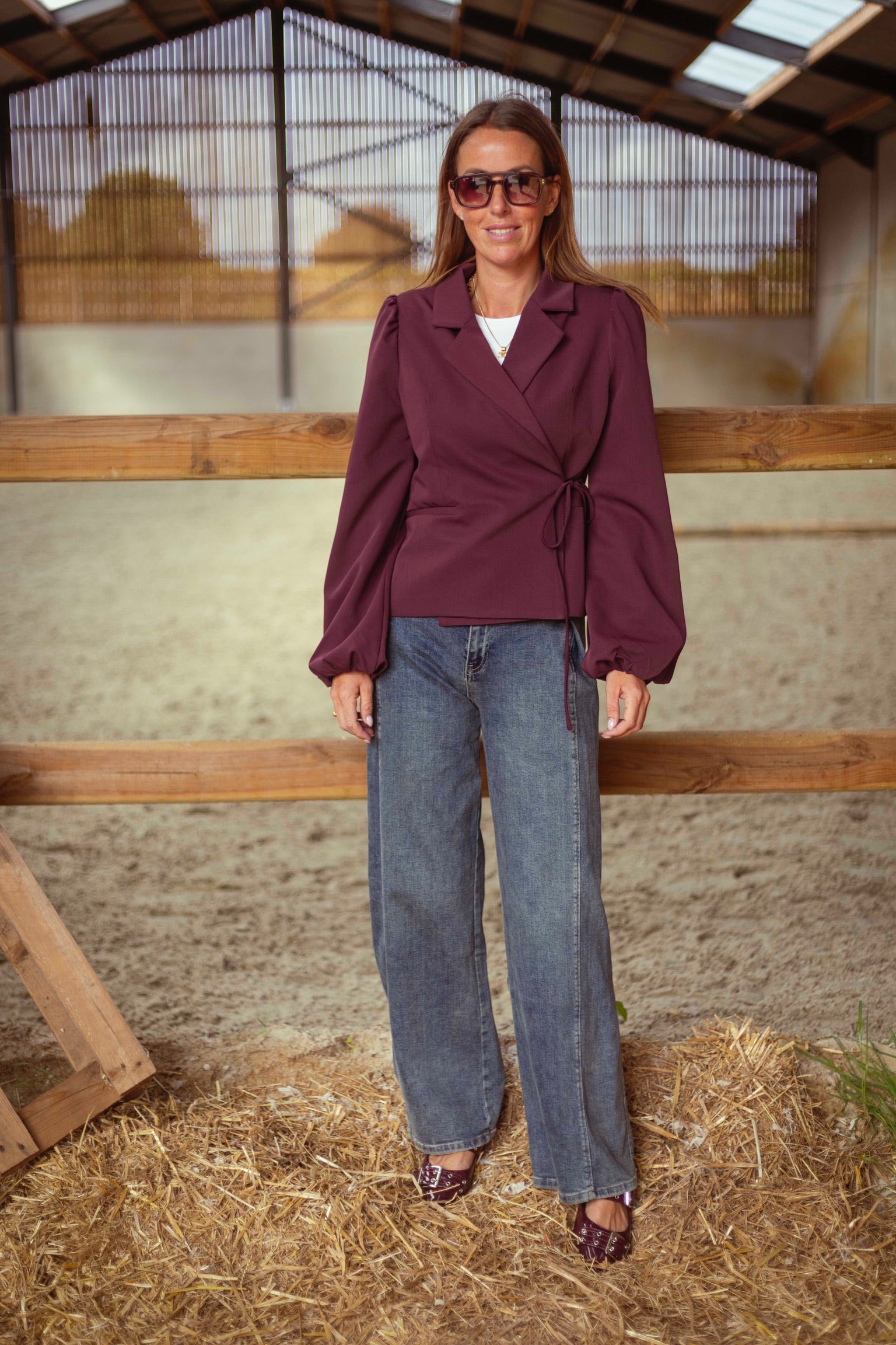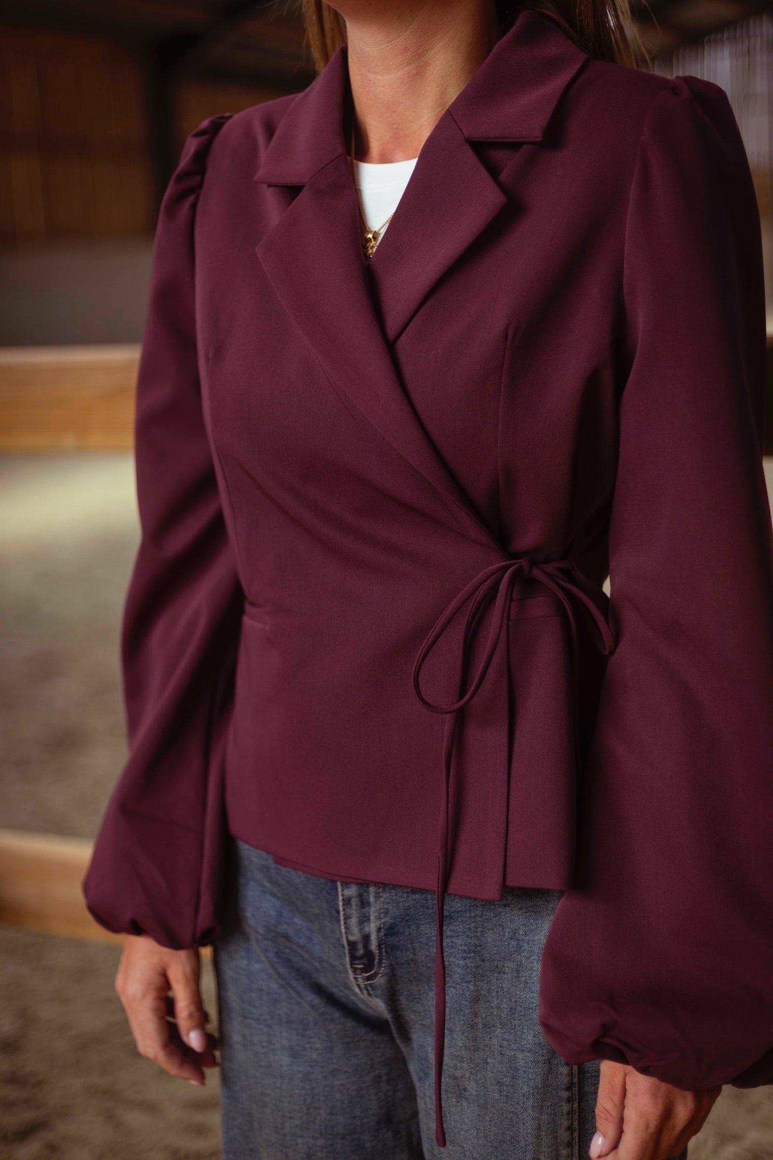 DELLA-RAE BORDEAUX WRAP BLAZER
