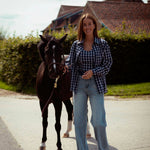 VICTORIA DARK BLUE CHECKERED BLOUSE