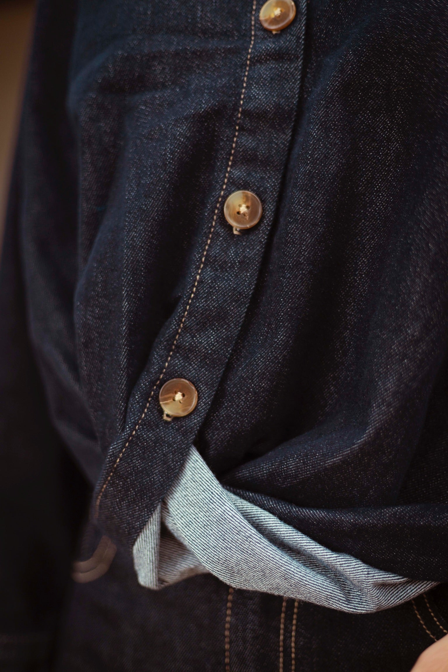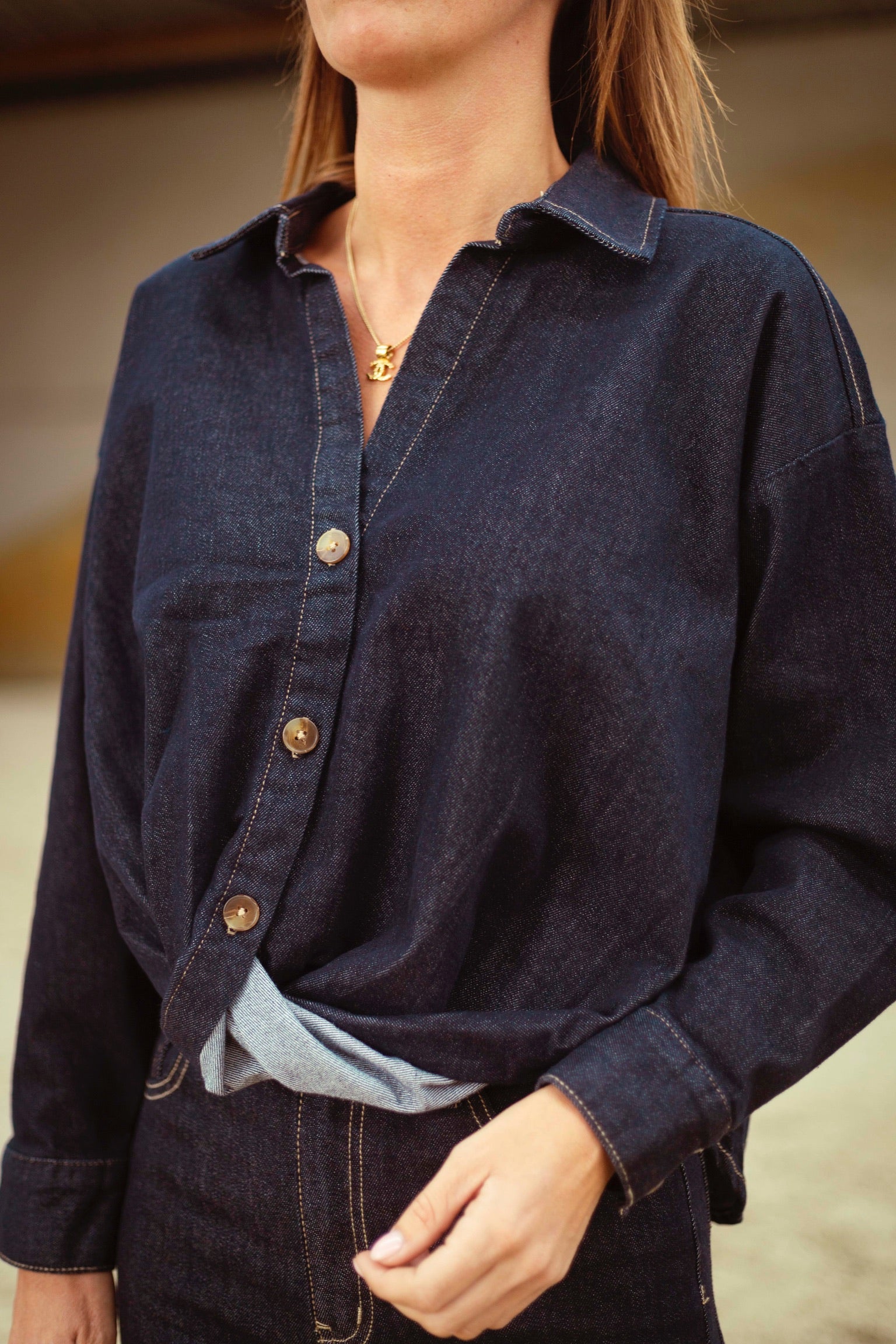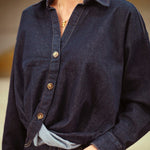 DARK BLUE DENIM BUTTON BLOUSE 3252