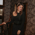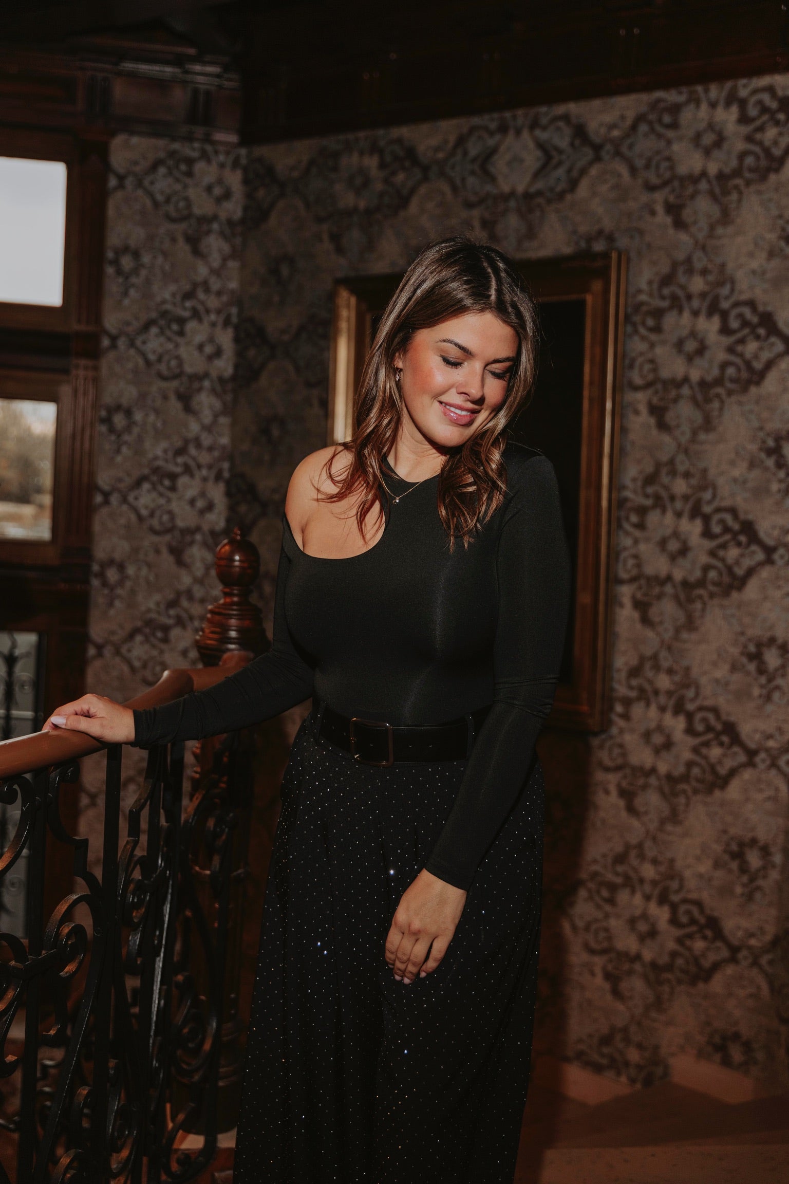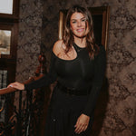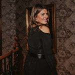 Een opvallende zwarte blouse met speelse cut-outs die direct een moderne en feestelijke uitstraling geeft. Het elegante materiaal en de verrassende details maken iedere beweging interessant en stijlvol. Perfect om tijdens de feestdagen vol zelfvertrouwen en flair voor de dag te komen.