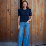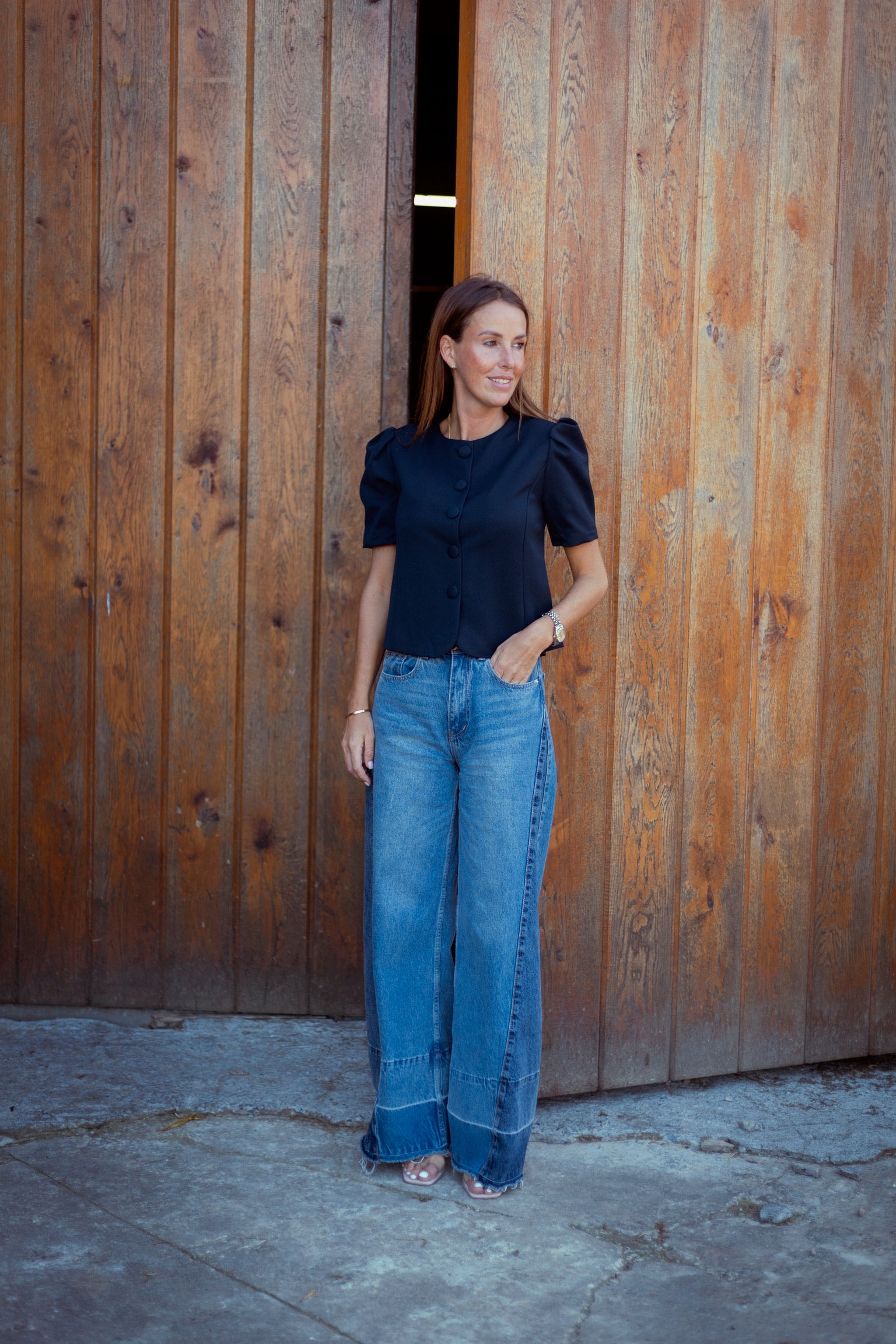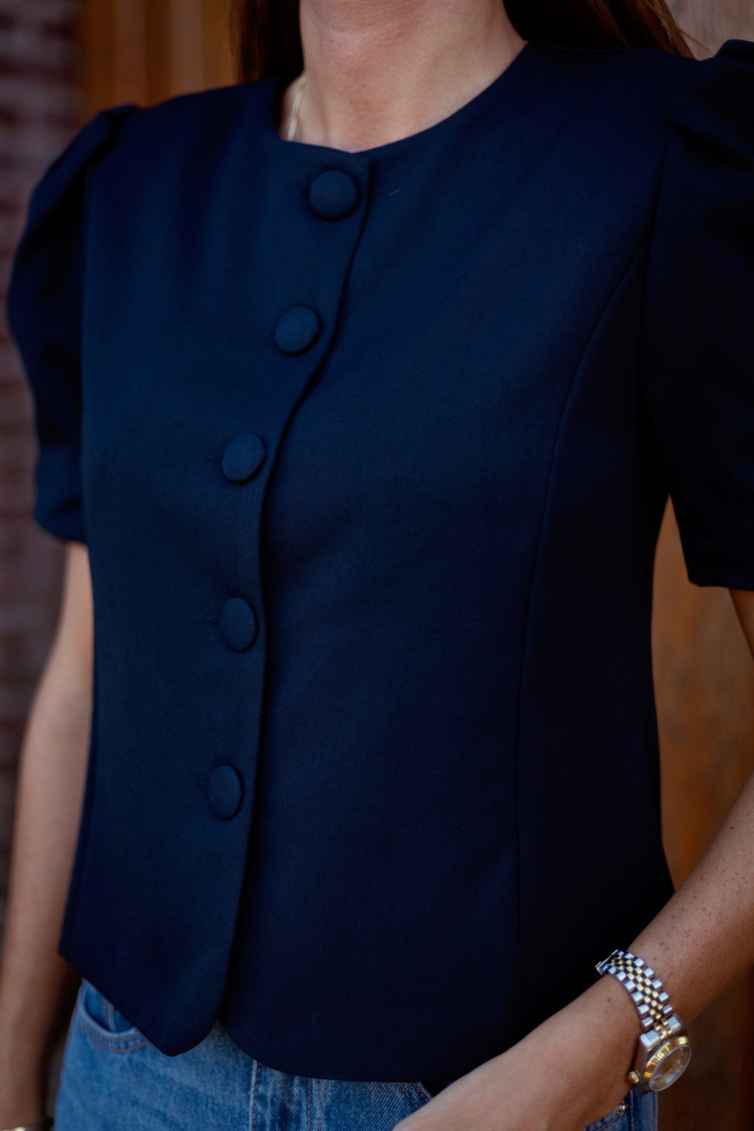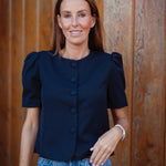 SANTIAGO DARK BLUE BUTTON BLOUSE