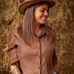 SKYLAR CAMEL SUEDE BUTTON BLOUSE – Boetiek Pure Sense