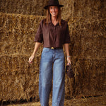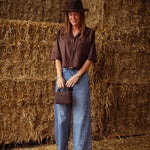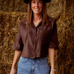 SKYLAR BROWN SUEDE BUTTON BLOUSE
